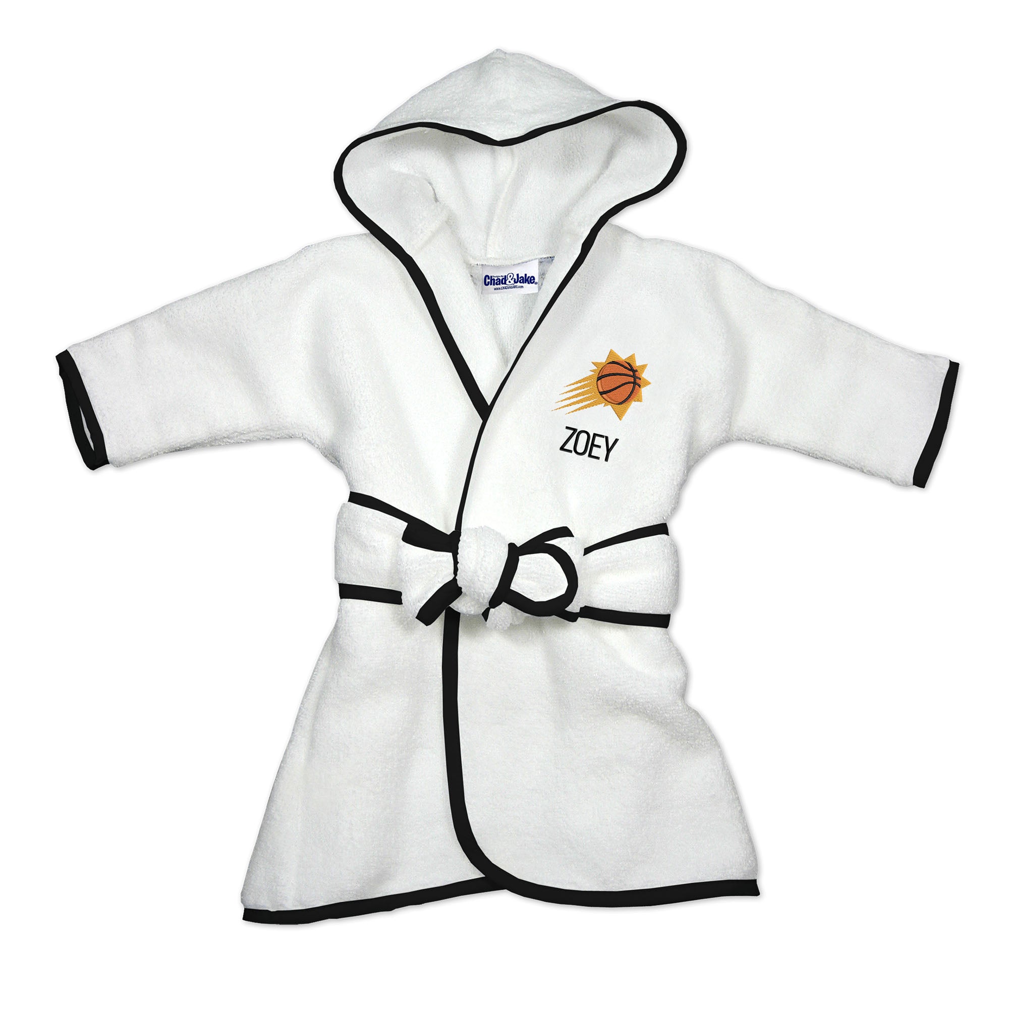 Our Personalized Phoenix Suns Infant Robe is a fun and practical accessory for every little Suns fan.  Each robe is embroidered with the official Phoenix Suns logo and your own little one’s name or nickname.  What a great way for even the youngest fans to support their team and show Suns pride!  Kids can wrap up after a bath or shower, cover up and dry off after swimming, or relax at home in the comfort of this plush Suns robe sized just for them.