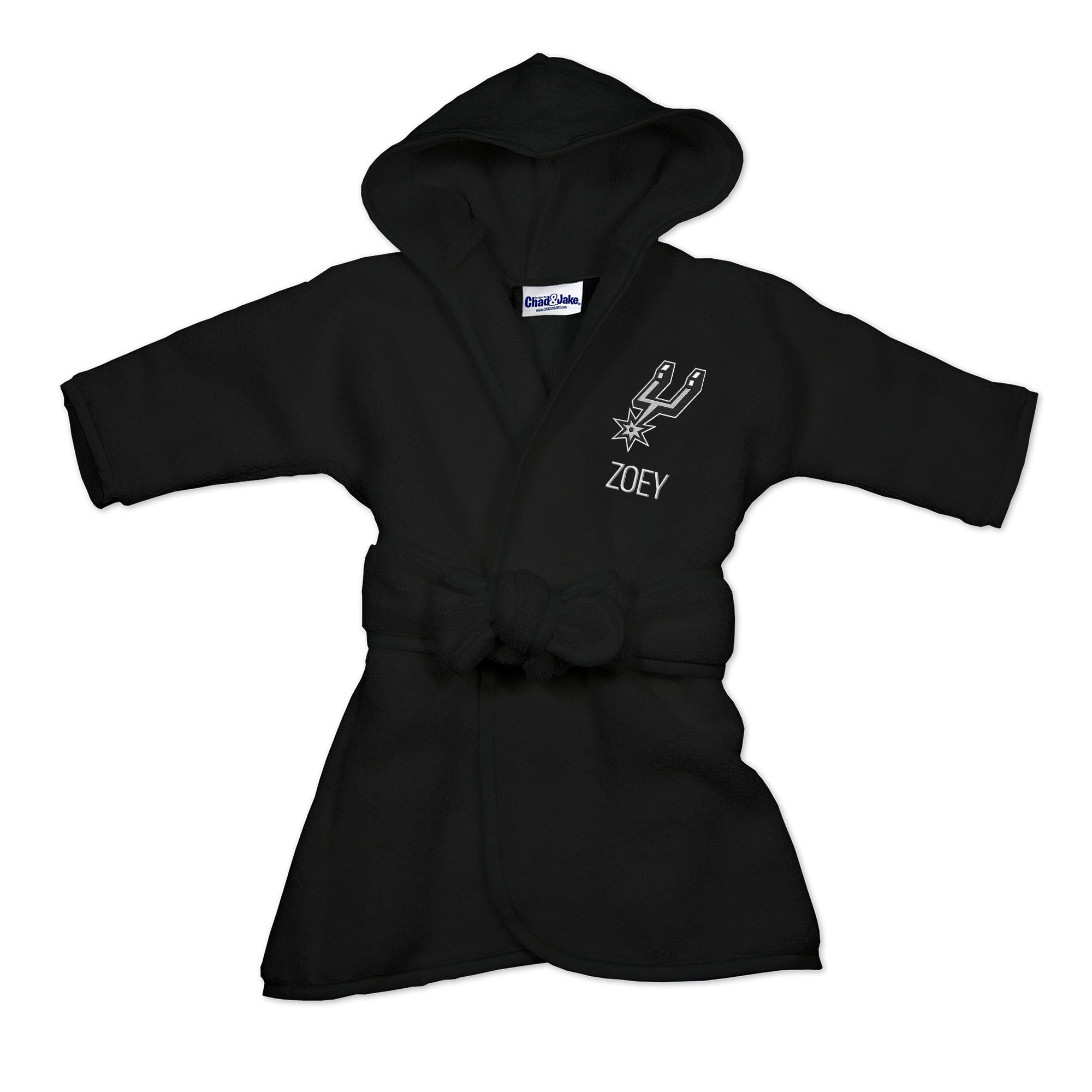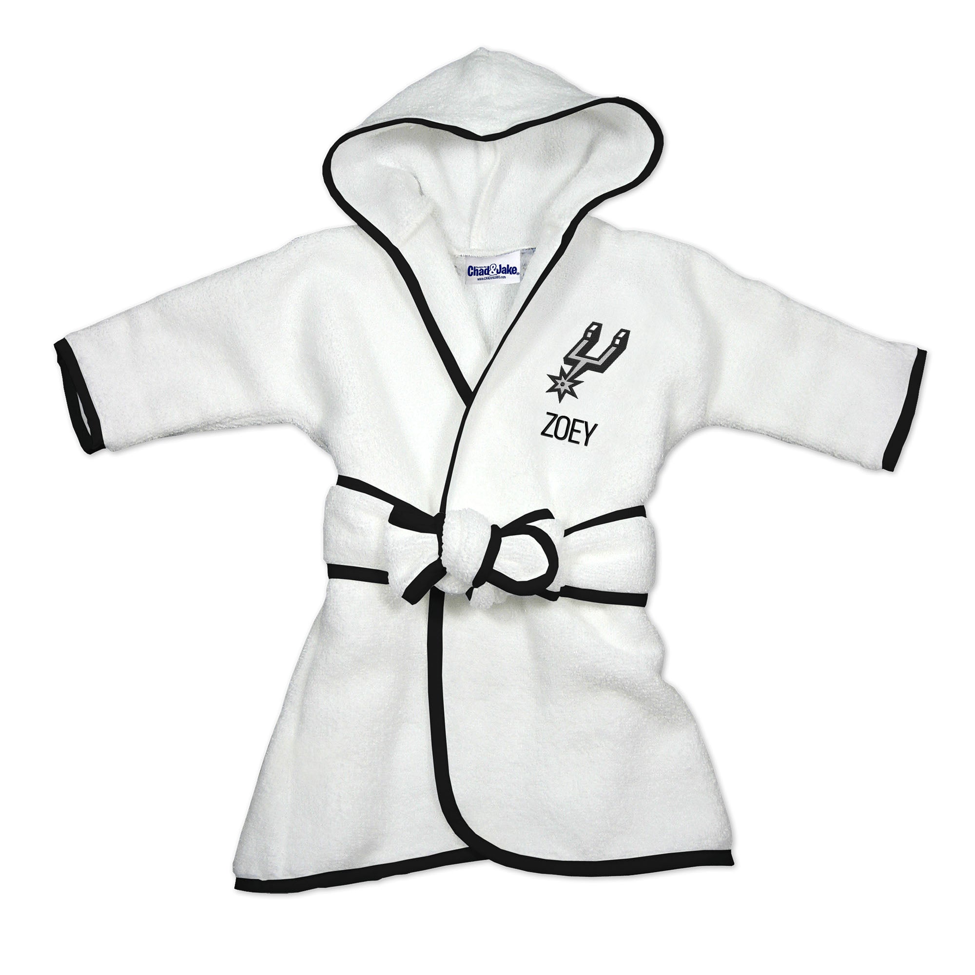 Our Personalized San Antonio Spurs Infant Robe is a fun and practical accessory for every little Spurs fan. Each robe is embroidered with the official San Antonio Spurs logo and your own little one’s name or nickname. What a great way for even the youngest fans to support their team and show Spurs pride! Kids can wrap up after a bath or shower, cover up and dry off after swimming, or relax at home in the comfort of this plush Spurs robe sized just for them.