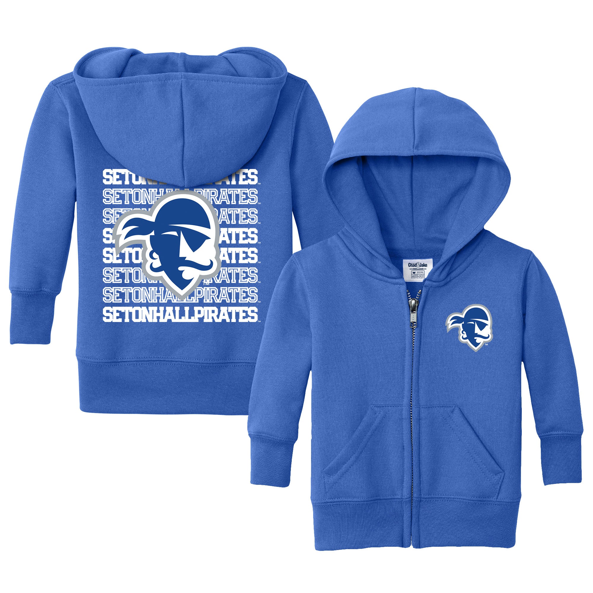 Gear up your little Pirate in style with our Seton Hall Pirates Infant Full-Zip Hooded Sweatshirt. Made from cozy and soft fabric, this sweatshirt features super unique graphics that showcase the pride of the Pirates. From game day excitement to everyday adventures, your little fan will stand out in this officially licensed apparel. The full-zip design ensures easy dressing, while the hood provides extra warmth and comfort. Available in various sizes to fit your little one perfectly. Get the Seton Hall Pirates Infant Full-Zip Hooded Sweatshirt today and let your baby show off their team spirit!