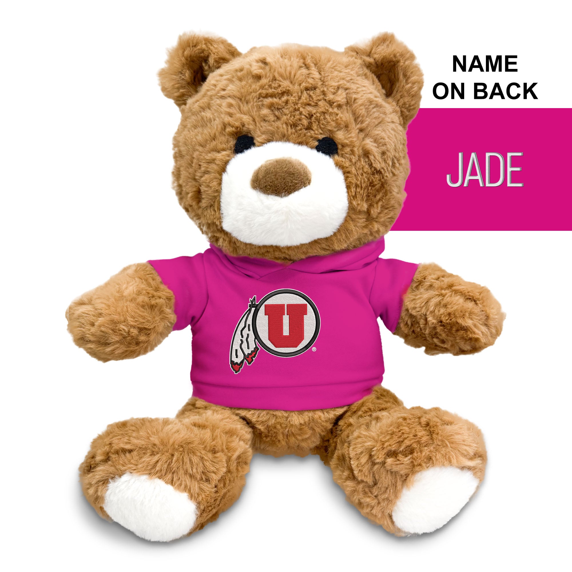 Say hello to the Personalized Utah Utes Plush Bear—your new game-day companion! This 10-inch bear, crafted from ultra-soft polyester, is perfect for cozying up, especially with its snug hoodie. Featuring an embroidered logo on the front, this bear also offers a personal touch with the option to add a name, initials, or nickname on the back. Whether you're cheering from the stands or lounging at home, this plush bear is ready to bring some extra team spirit to your day.