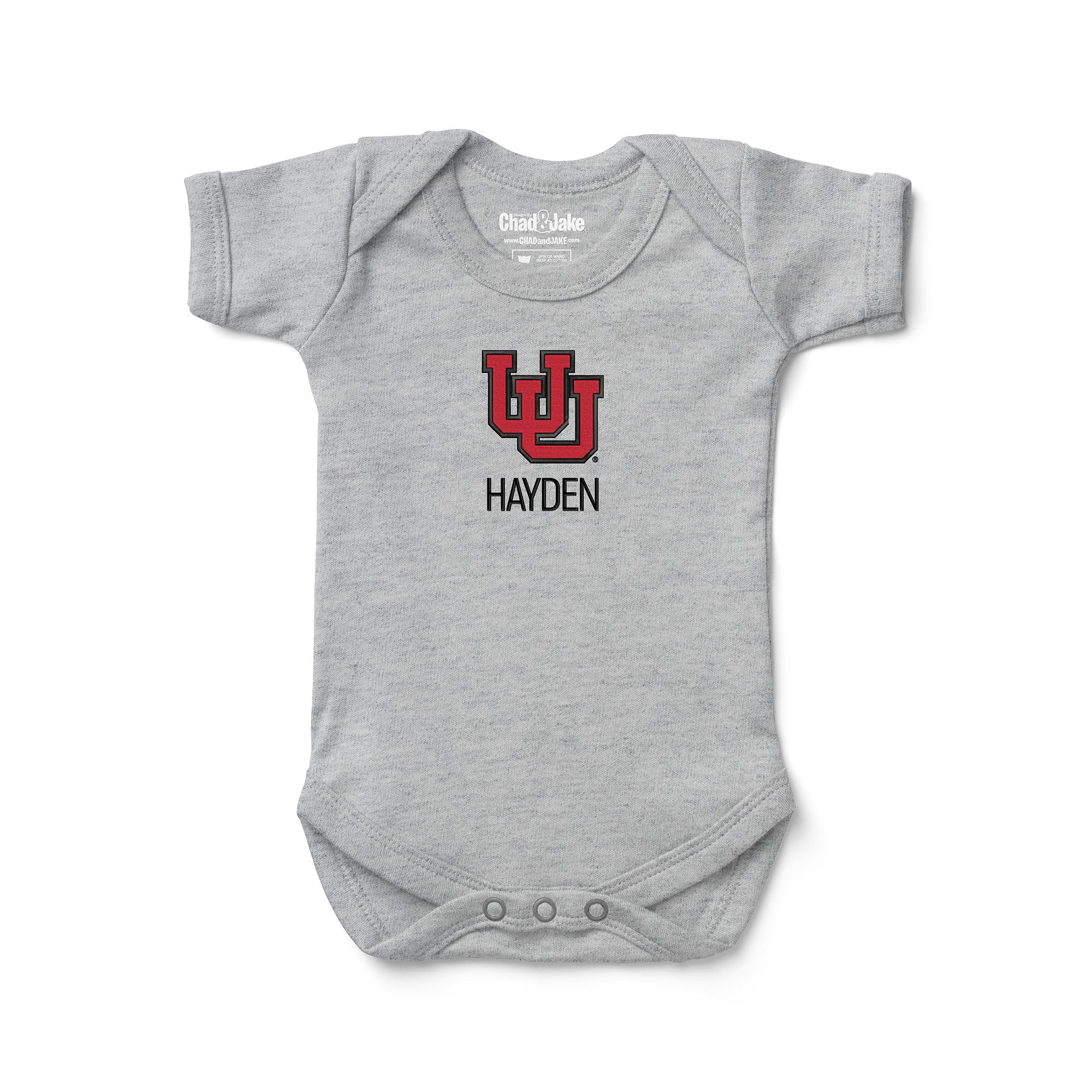 This bodysuit is embroidered with the Utah Utes logo on the front, and can be personalized with your little one's name, initials, or nickname under the logo. This personalized bodysuit will let everyone know where your allegiance lies.