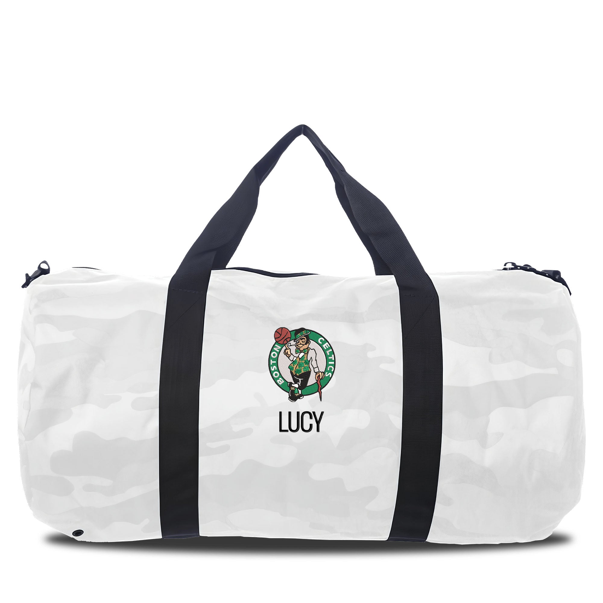The white camouflage design of this duffel bag is perfect for those who want to show their love for the Boston Celtics in a unique and eye-catching way. The neutral color palette and pattern make this bag a versatile choice for fans of all ages and styles.