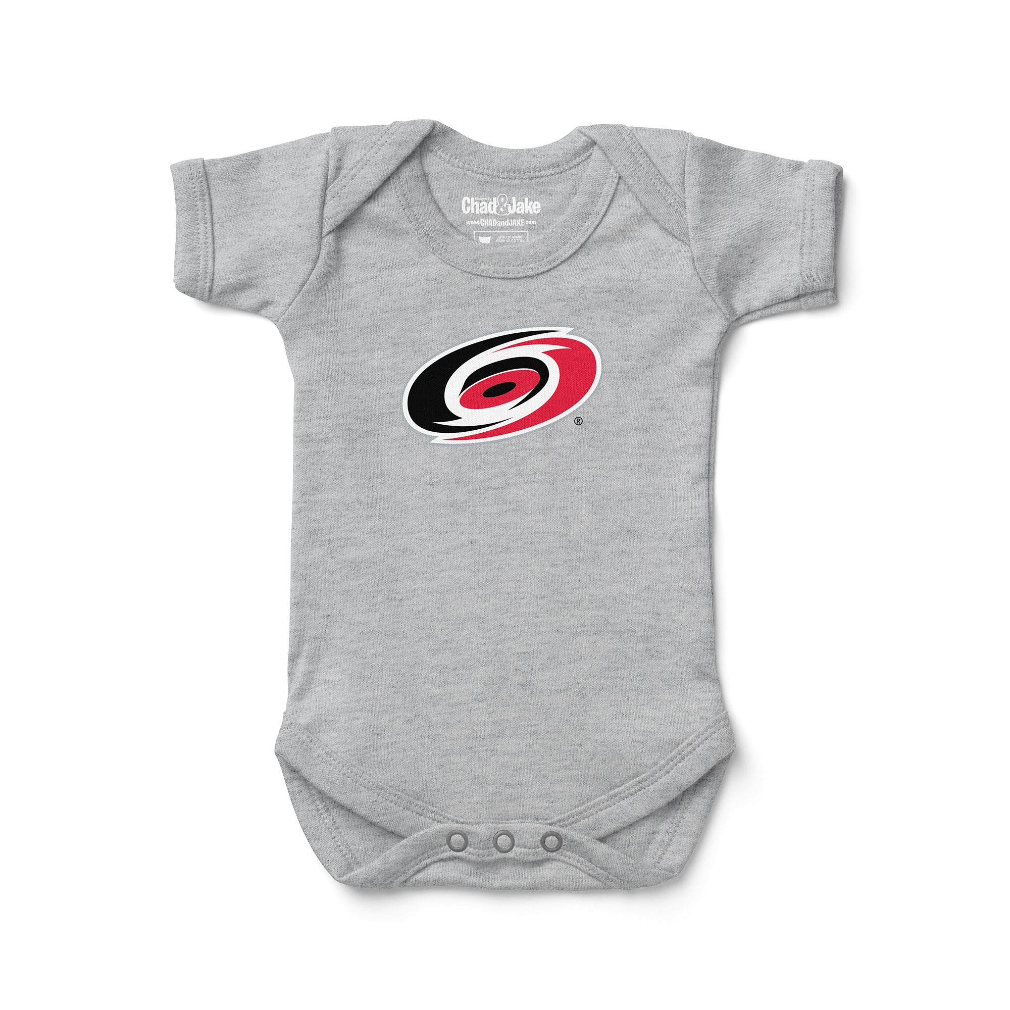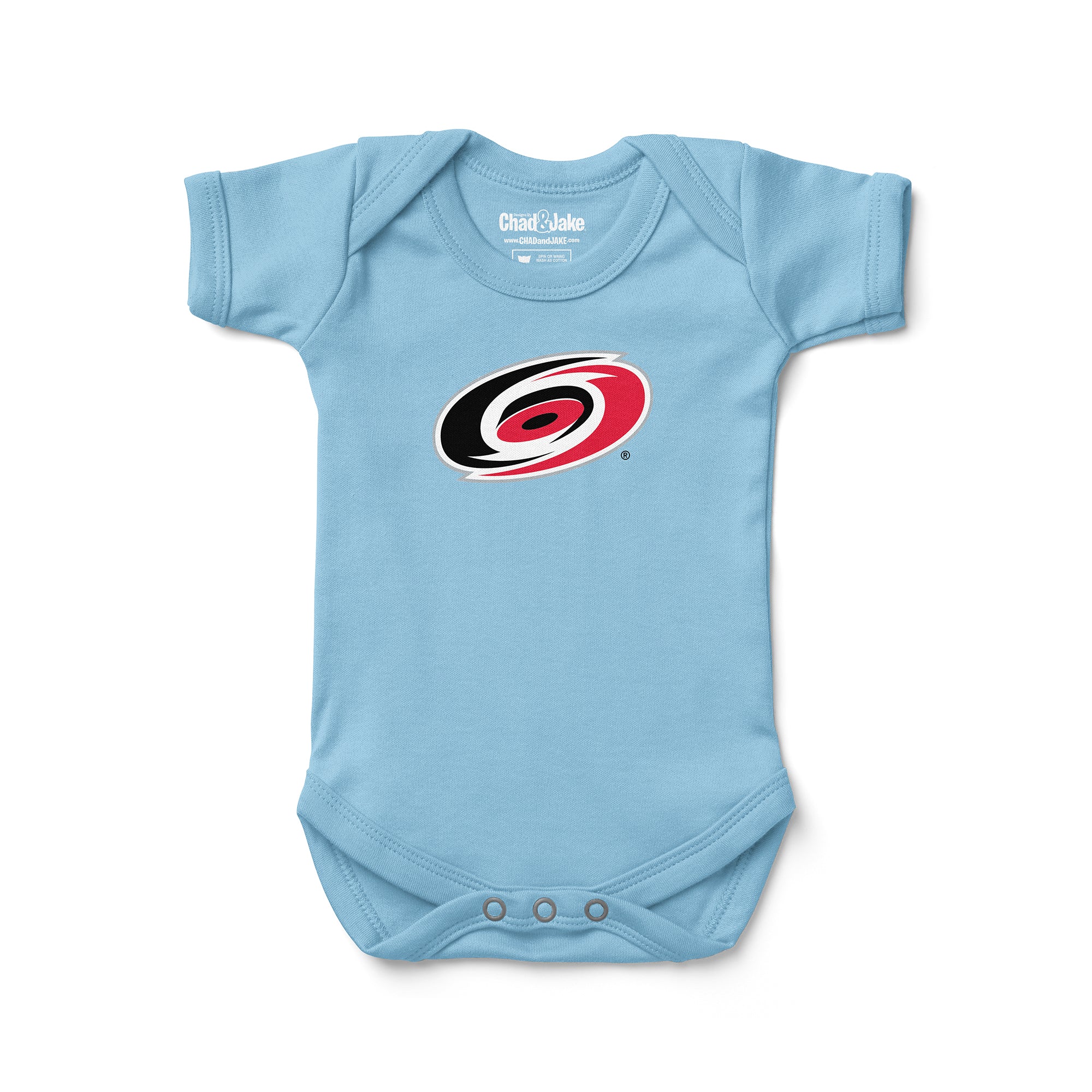 Let your little one ride the storm of Carolina Hurricanes pride with our 100% interlock cotton Baby Bodysuit, officially licensed by the NHL and incredibly soft to the touch. Offered in five sizes (0-3 MO, 3-6 MO, 6-12 MO, 12-18 MO, and 18-24 MO), this bodysuit is designed to have your baby cheering for the Hurricanes right from the start. Whether it's game day or just a casual outing, this officially licensed NHL apparel ensures your baby's comfort and style. Order now and let your little one proudly display their team spirit in the most comfortable way possible.