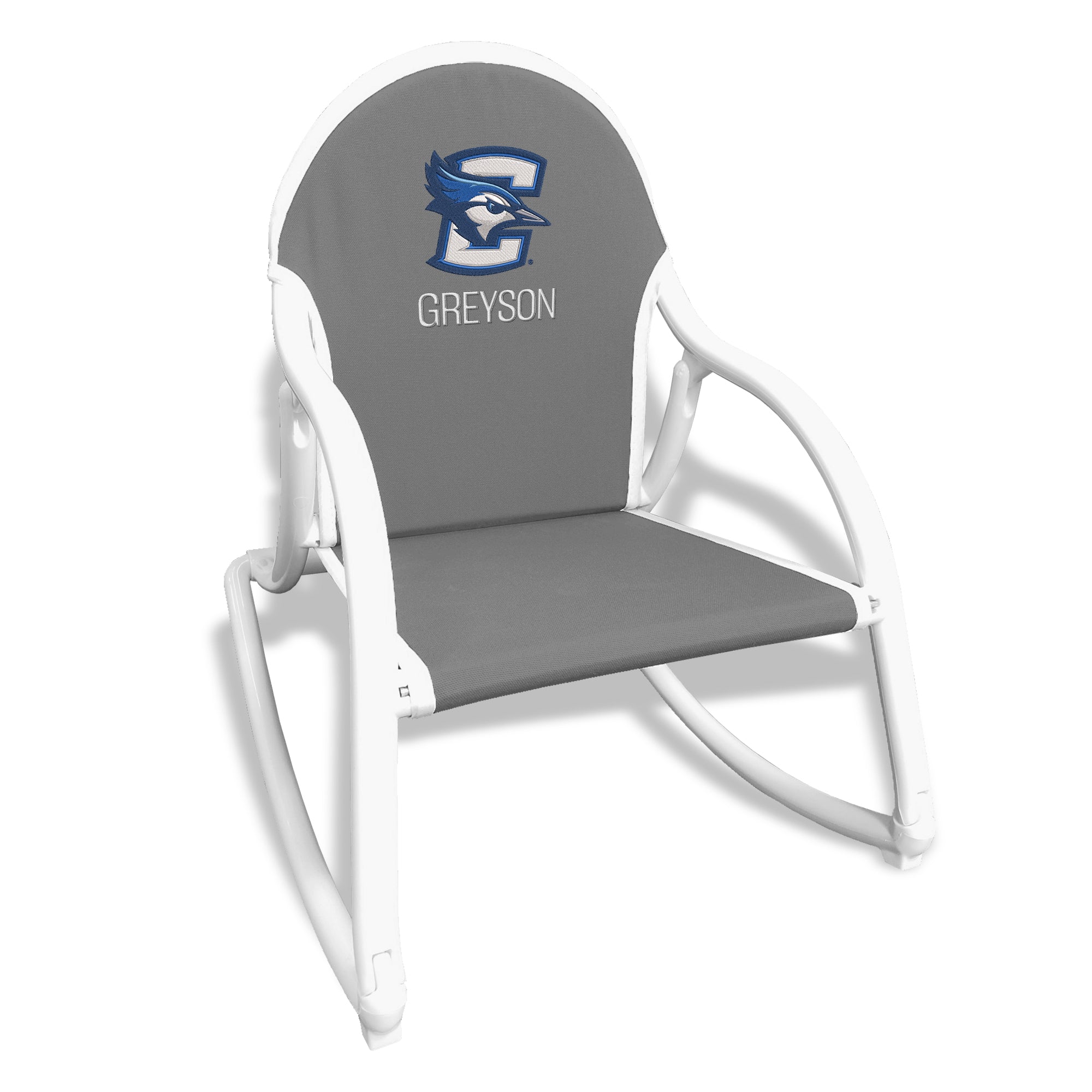 Our kid-sized Personalized Creighton Bluejays Rocking Chair will be the best seat in the house (and everywhere else!). This Bluejays chair is not only super comfortable, but also foldable and lightweight, making it easy to transport from room to room or put away for storage. The adult weight fabric and sturdy construction ensure that your little Bluejays fan will be both comfortable and safe. The rockers are 3 inches wider than the seat, so the Bluejays chair is extra stable, and foot pads under the fronts of the rockers hold the chair steady so toddlers can safely climb in to sit. This Bluejays rocker is also 100% water-safe, so it can be used outside in the yard, at the park, at a game or even at the beach!