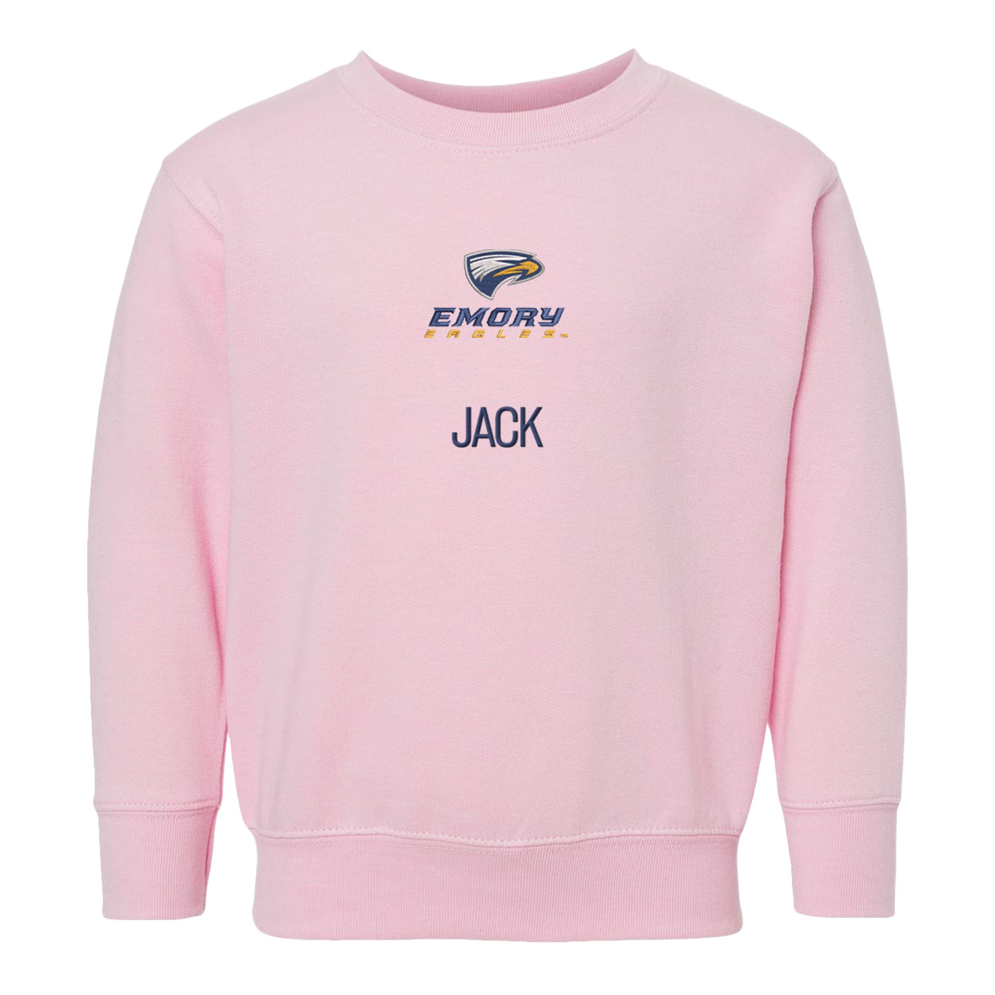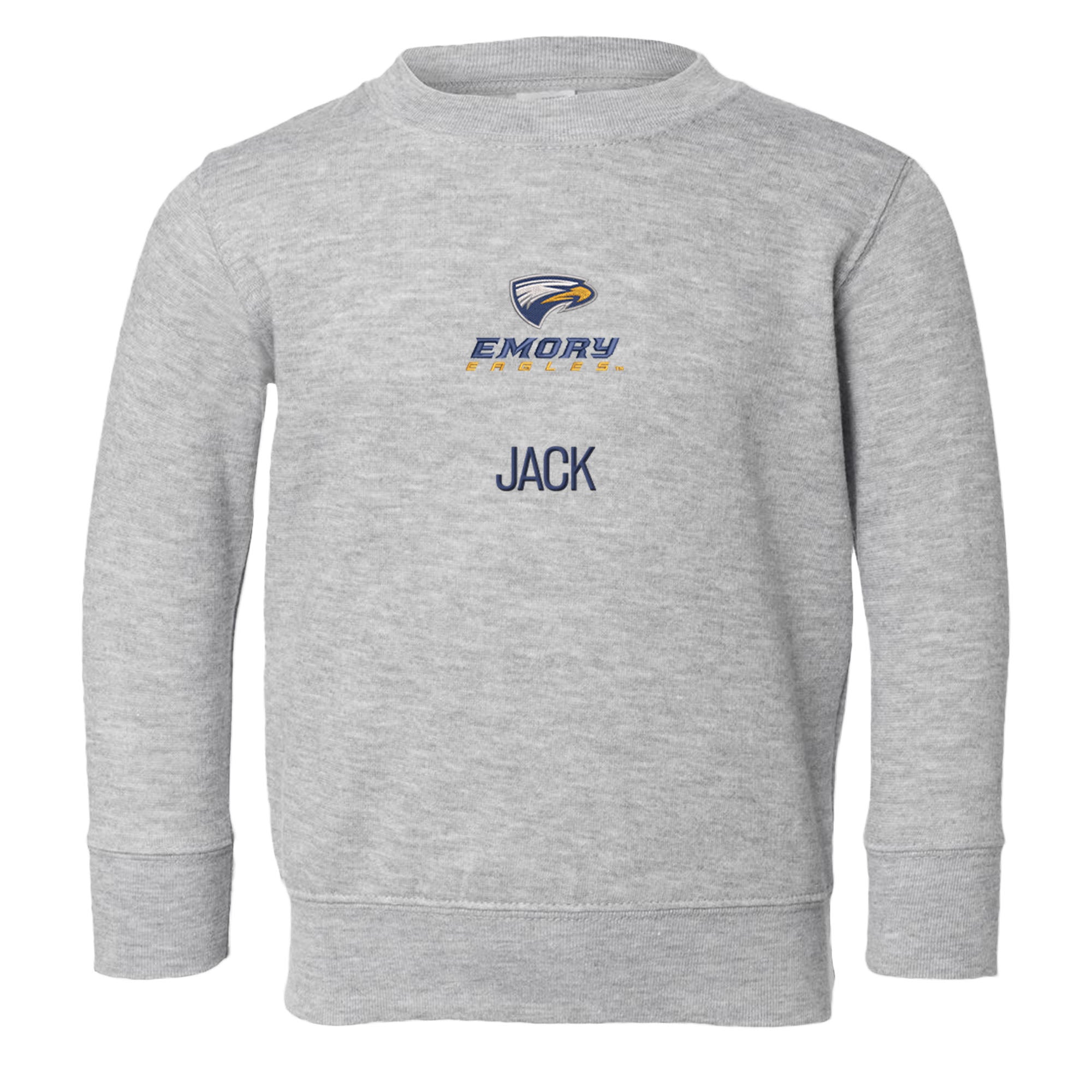 Gear up your little Volunteer in style with our Personalized Emory Eagles Toddler Crewneck Sweatshirt. Made from cozy and soft fabric, this sweatshirt features super unique embroidered graphics that showcase the pride of the Volunteers Nation. From game day excitement to everyday adventures, your little fan will stand out in this officially licensed apparel. Available in various sizes to fit your little one perfectly. Get the Personalized Emory Eagles Toddler Crewneck Sweatshirt today and let your baby show off their team