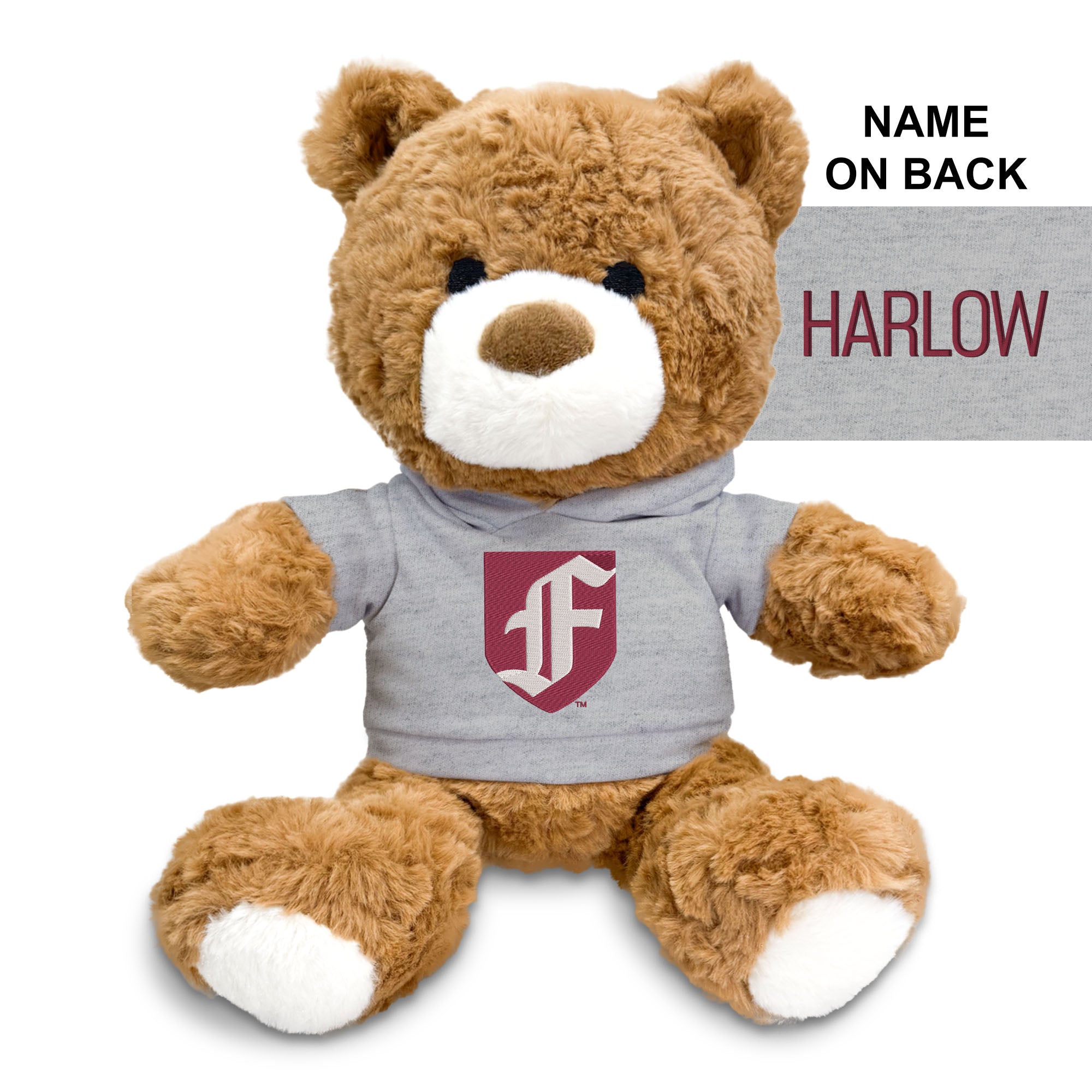 Say hello to the Personalized Fordham Rams Plush Bear—your new game-day companion! This 10-inch bear, crafted from ultra-soft polyester, is perfect for cozying up, especially with its snug hoodie. Featuring an embroidered logo on the front, this bear also offers a personal touch with the option to add a name, initials, or nickname on the back. Whether you're cheering from the stands or lounging at home, this plush bear is ready to bring some extra team spirit to your day.