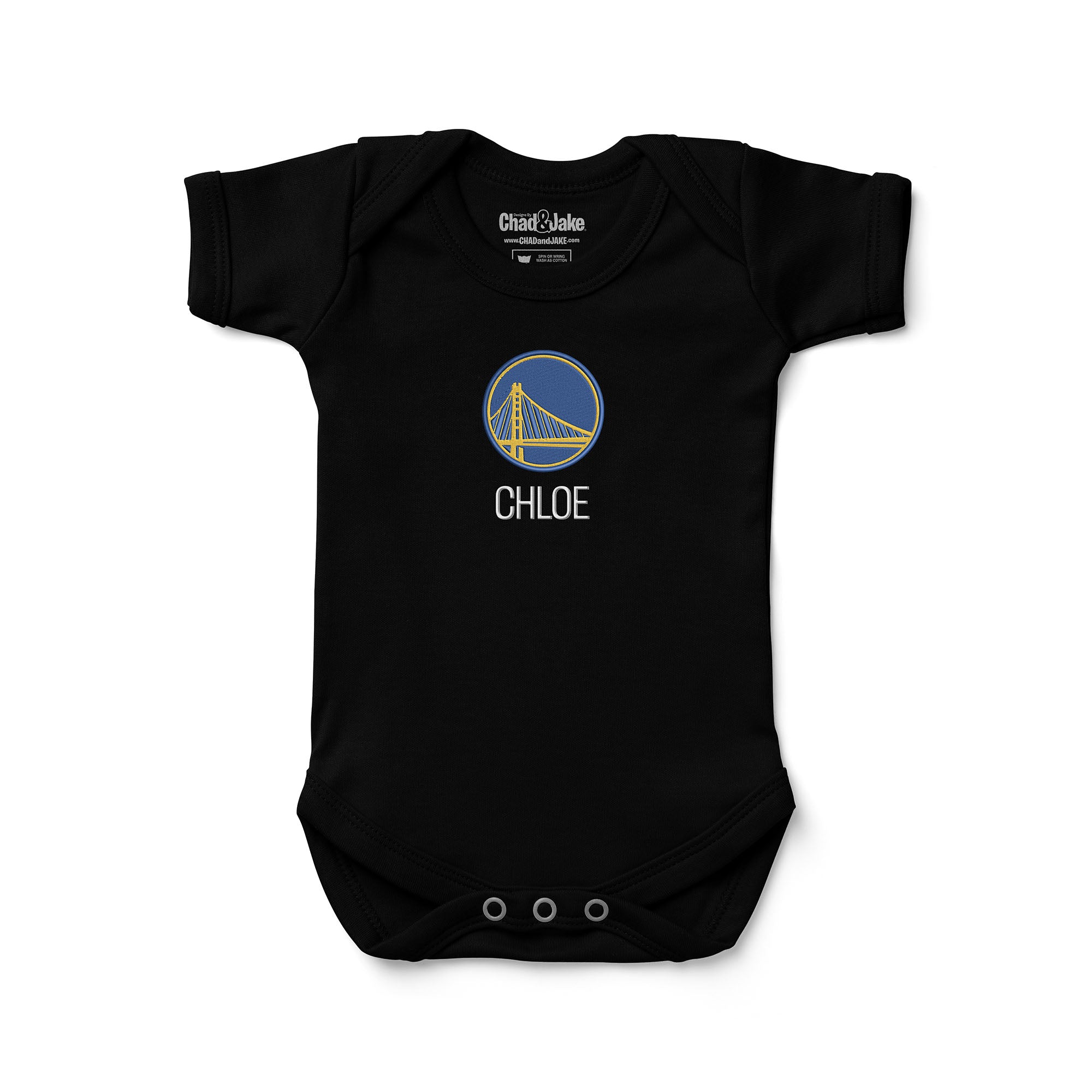 Represent your favorite NBA team with this Golden State Warriors bodysuit for baby and kids. Made from 100% super-soft interlock cotton, this bodysuit features an envelope neck for extra comfort and a three-snap closure for easy dressing and undressing. It is machine washable and tumble dryable, making it perfect for active little ones who love to show their team spirit. This bodysuit is embroidered with the Golden State Warriors logo on the front and personalized with your little one's name, initials, or nickname under the logo. Let everyone know who your little one roots for at Oracle Arena or on the road with the team's slogan, "Dub Nation." From their record six NBA championships to current and retired players like Stephen Curry, Klay Thompson, and Kevin Durant, your little one will be decked out in Golden State Warriors pride. Whether they're playing around at home or at the playground, this personalized bodysuit will let everyone know where their loyalty lies.
