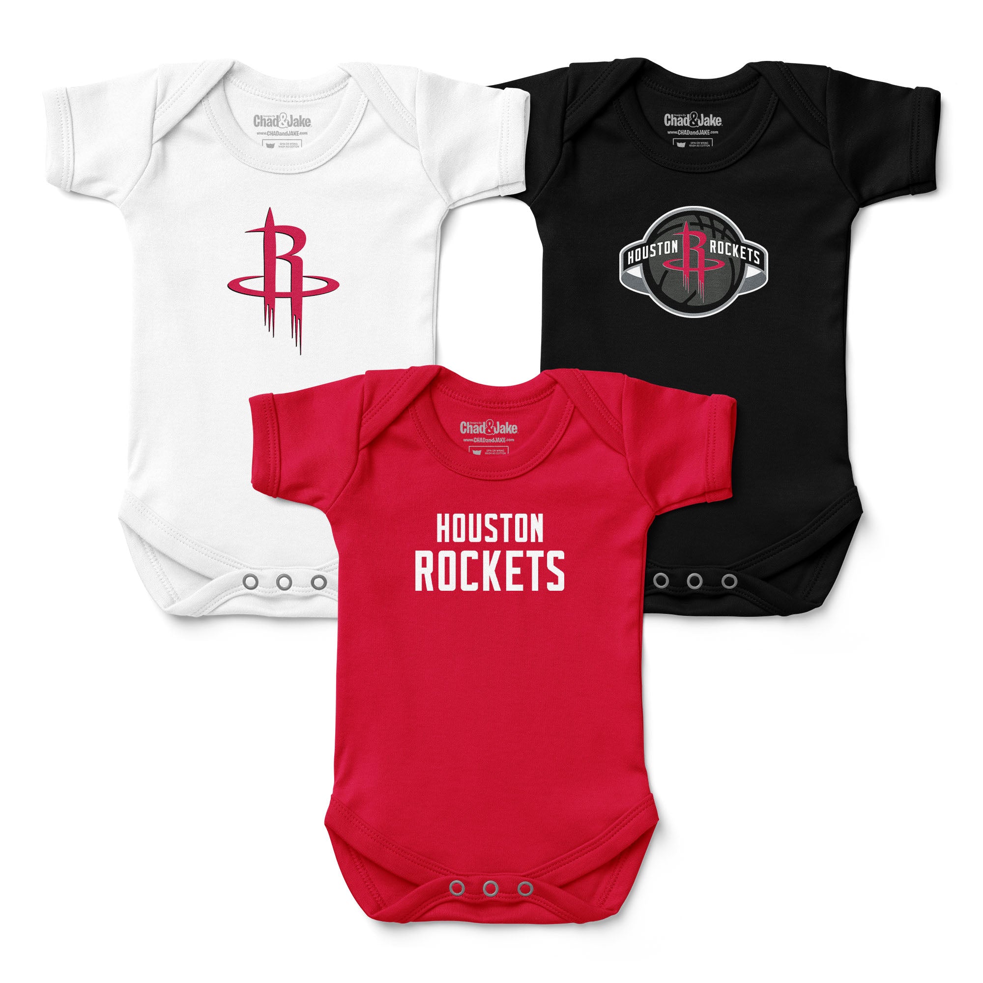 Introduce your little one to the world of hockey with our officially licensed Houston Rockets 3-Pack Bodysuits. Crafted from soft and breathable cotton, these bodysuits are perfect for keeping your baby comfortable throughout the day. Each pack includes three unique designs that proudly represent the Houston Rockets, ensuring your baby looks adorable while supporting the team. Available in five sizes: 0-3 Months, 3-6 Months, 6-12 Months, 12-18 Months, and 18-24 Months. Whether it's game day or everyday wear, your little one will be the cutest Rockets fan in town. Get your 3-pack today and show your Houston Rockets spirit!