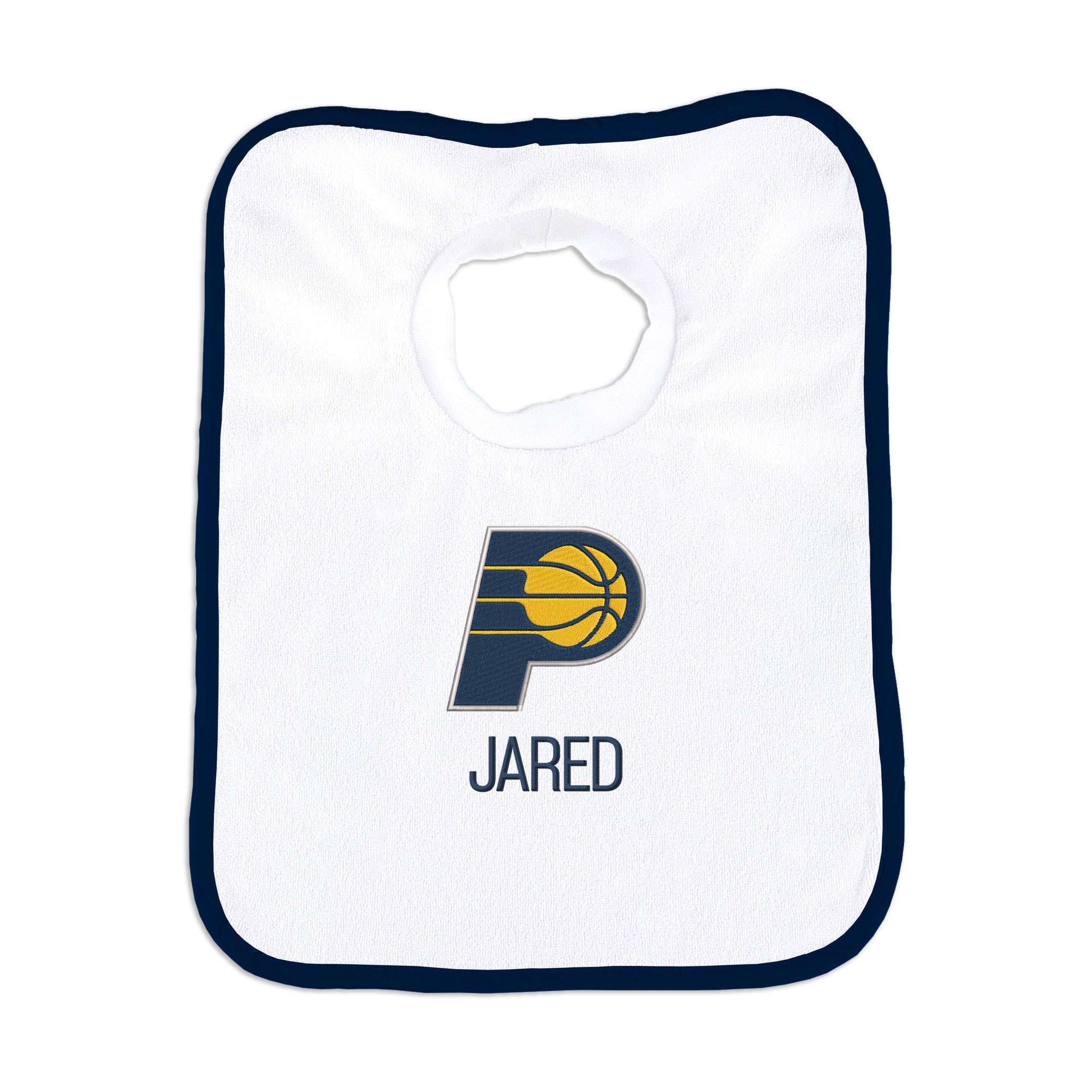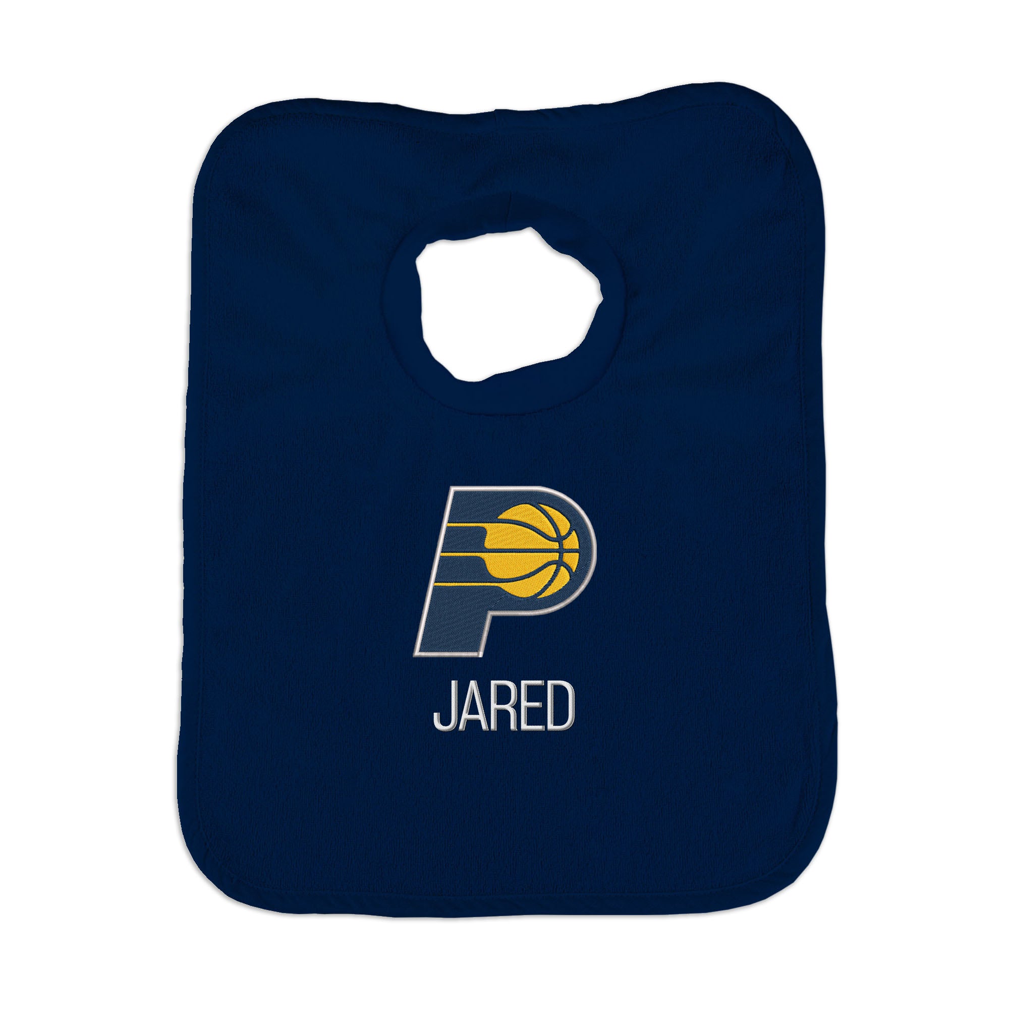 Our Personalized Indiana Pacers Bib is the perfect accessory for every baby Pacers fan. The Pacers bib slips on easily over baby’s head, with a neck hole that is specially designed for extra comfort with super soft, gently gathered stretch cotton. Each bib is embroidered with the Pacers logo and your little one’s name or nickname. Makes a wonderful gift for new Pacers babies and their families.