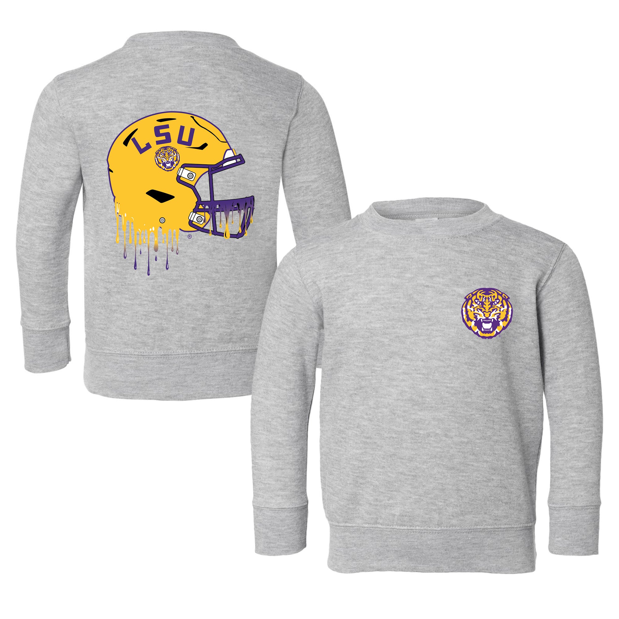 Gear up your little Tiger in style with our LSU Tigers Toddler Crewneck Sweatshirt. Made from cozy and soft fabric, this sweatshirt features super unique graphics that showcase the pride of the Tigers Nation. From game day excitement to everyday adventures, your little fan will stand out in this officially licensed apparel. Available in various sizes to fit your little one perfectly. Get the LSU Tigers Toddler Crewneck Sweatshirt today and let your baby show off their team