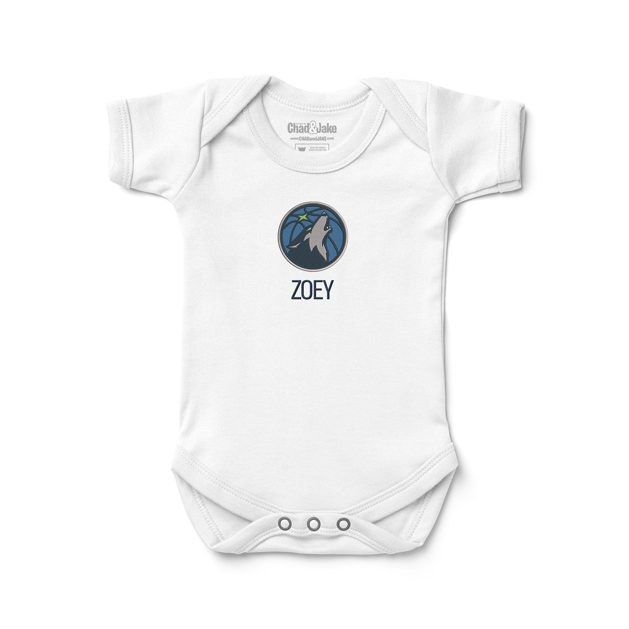 But the real standout feature of this bodysuit is the embroidered Minnesota Timberwolves logo on the front, personalized with your little one's name, initials, or nickname under the logo. Let everyone know where your loyalty lies with this personalized bodysuit. As the official slogan of the Timberwolves states, "Bring The Nice" and this bodysuit is the perfect way for your little one to show their support for the team.