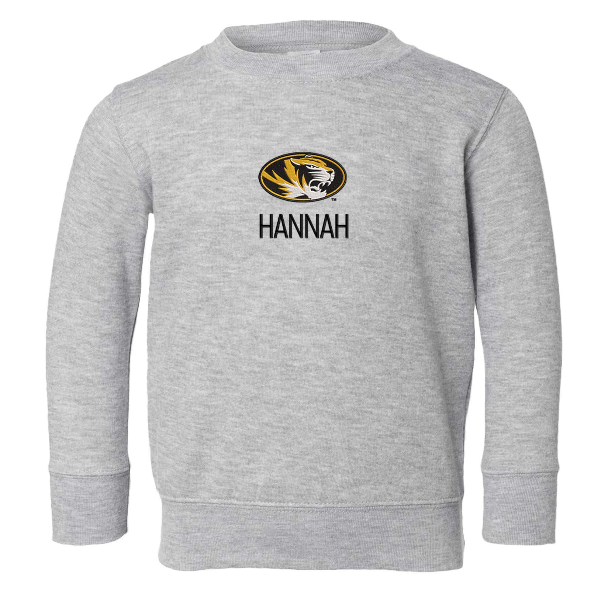 Gear up your little Volunteer in style with our Personalized Missouri Tigers Toddler Crewneck Sweatshirt. Made from cozy and soft fabric, this sweatshirt features super unique embroidered graphics that showcase the pride of the Volunteers Nation. From game day excitement to everyday adventures, your little fan will stand out in this officially licensed apparel. Available in various sizes to fit your little one perfectly. Get the Personalized Missouri Tigers Toddler Crewneck Sweatshirt today and let your baby show off their team
