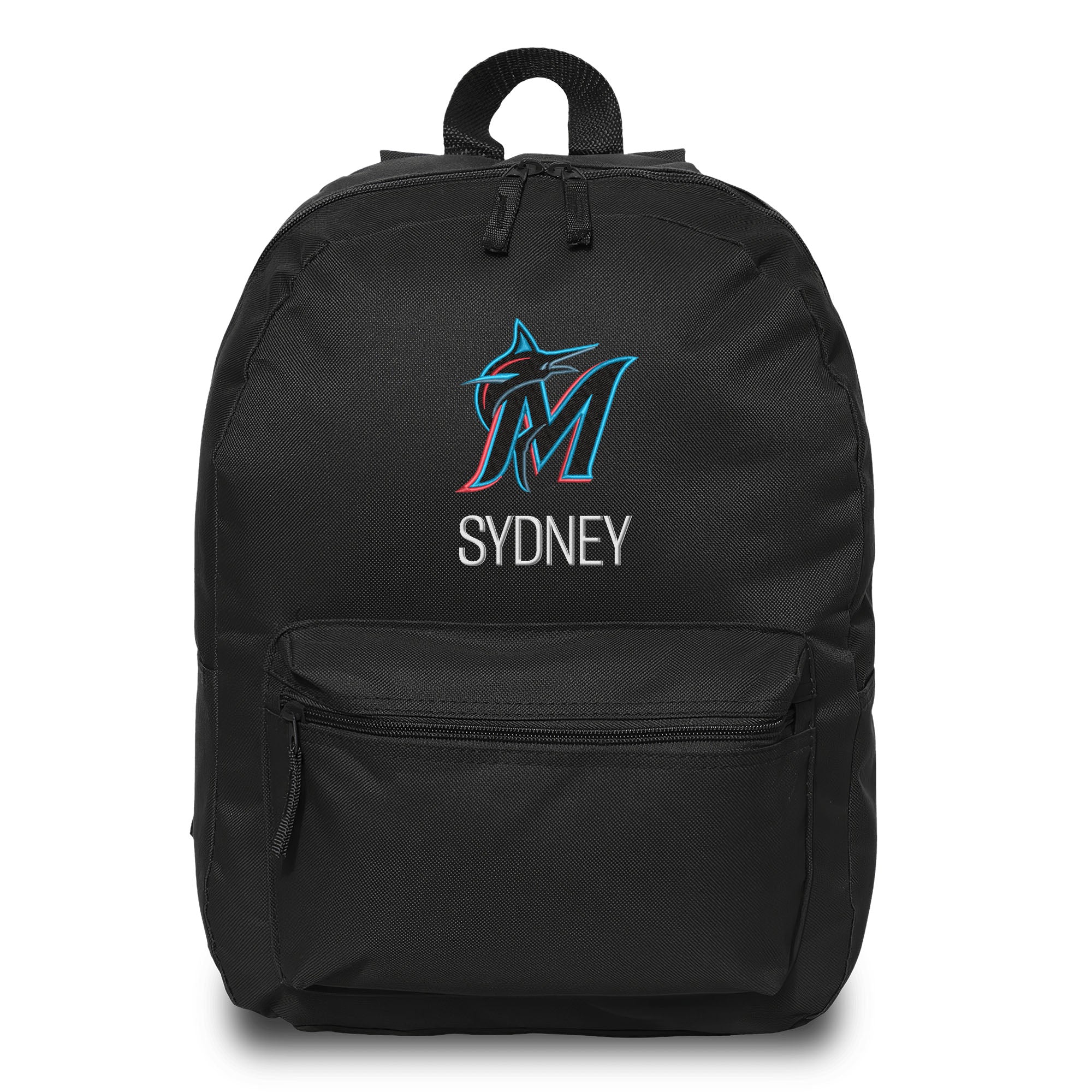 This Miami Marlins backpack is the perfect way for your child to show off their fandom wherever they go! With padded adjustable straps and an extra front zipper compartment, this backpack has everything your little one needs. This bag is embroidered with the Marlins logo and your little one’s name or nickname underneath! This backpack measures 16” tall.