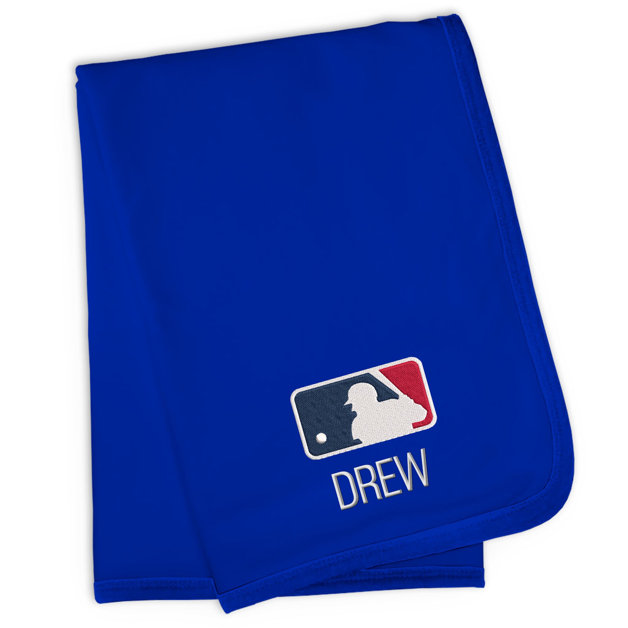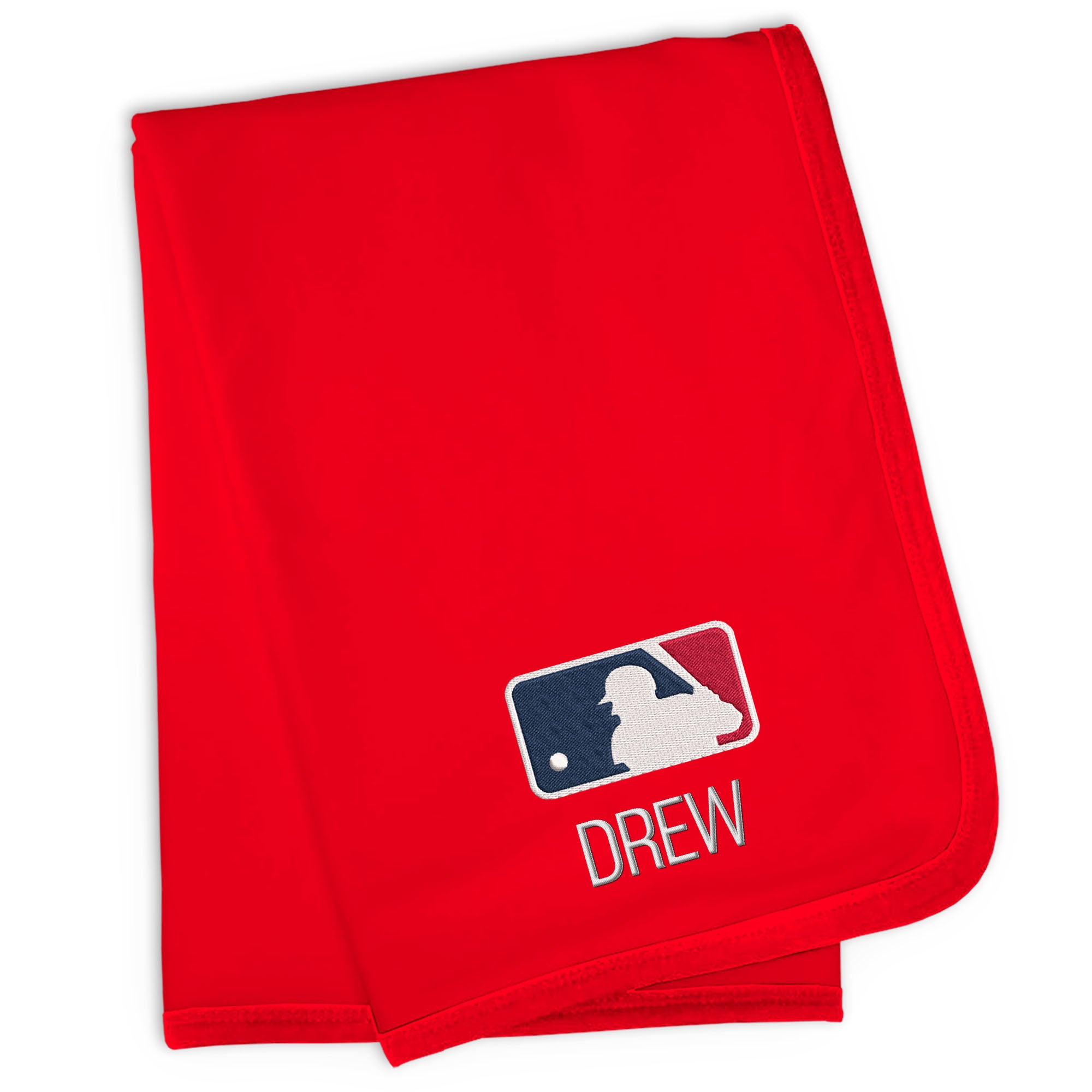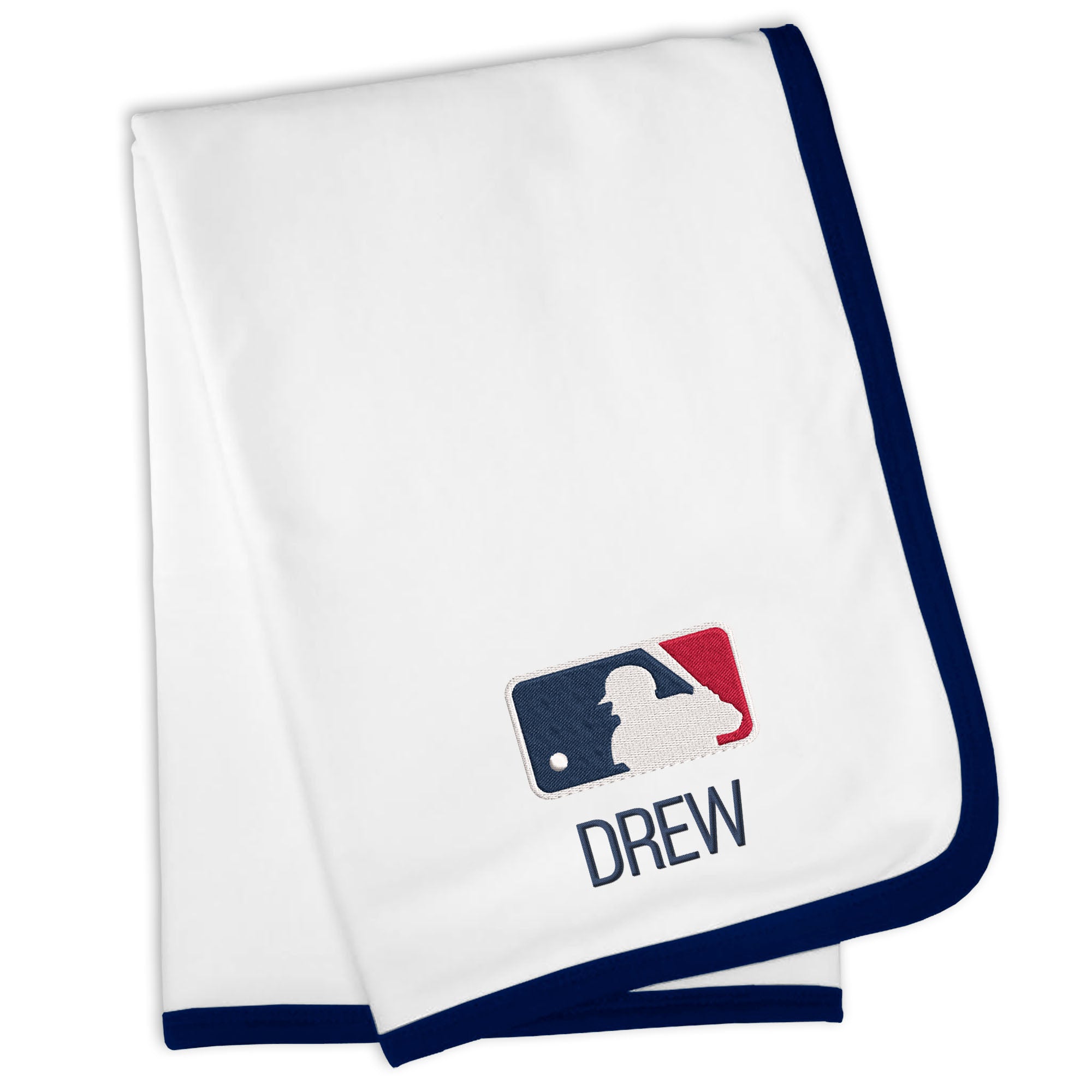 Our Personalized MLB Batter Blanket is sized just right for a baby baseball fan. Constructed from super soft 100% cotton jersey knit and trimmed in MLB Batter team colors, this blanket is perfect for walks in the stroller or swaddling at bedtime.  Each blanket is embroidered with the official MLB Batter logo and your little one’s name or nickname.