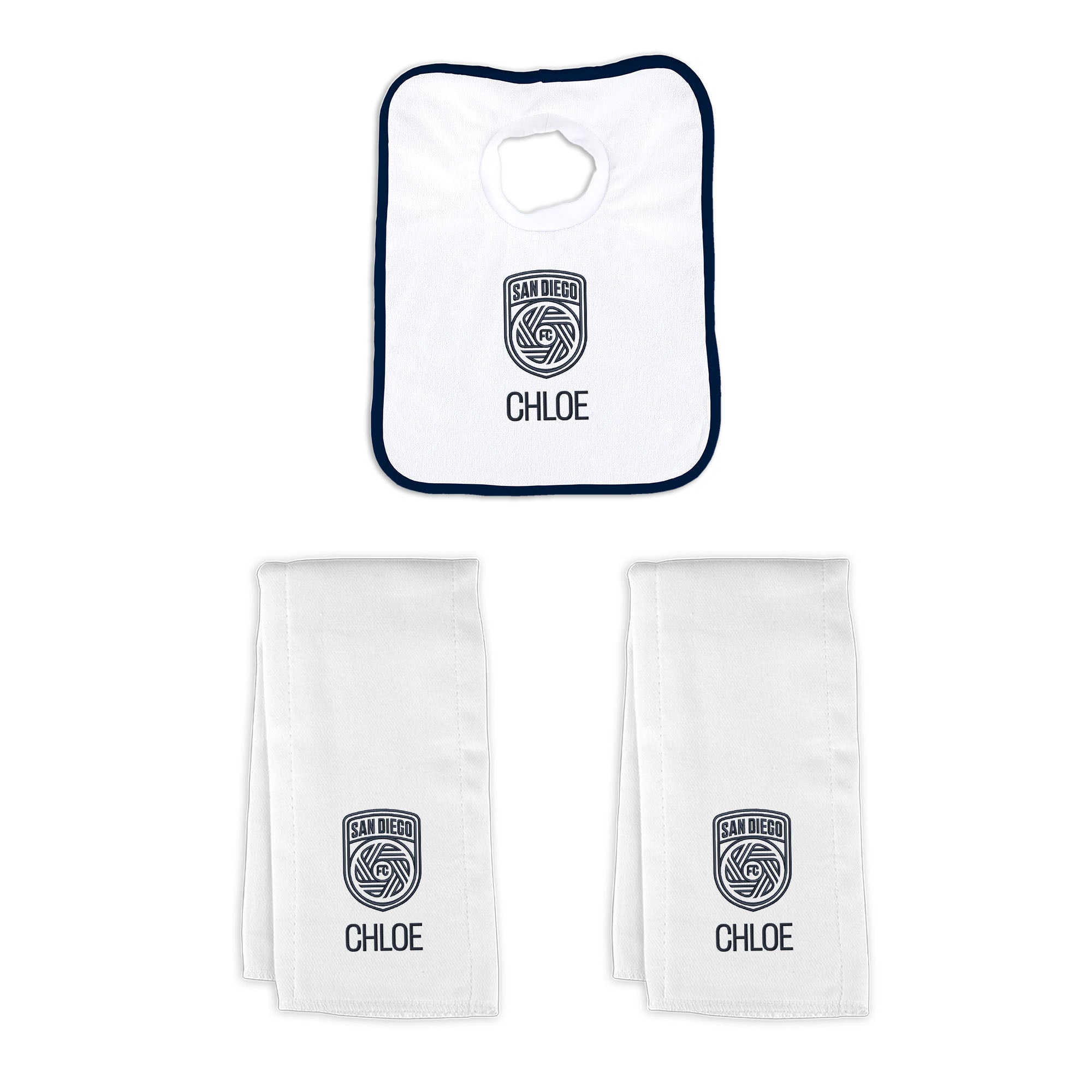 - Each piece features intricate embroidery of the iconic San Diego FC logo, along with your baby's personalized name or nickname