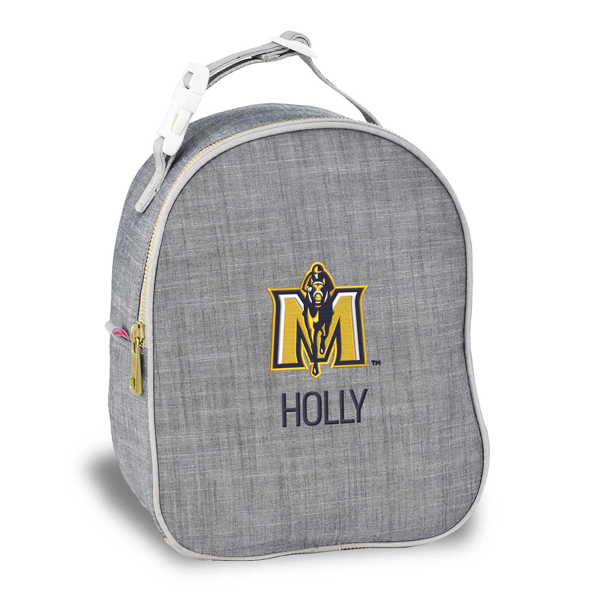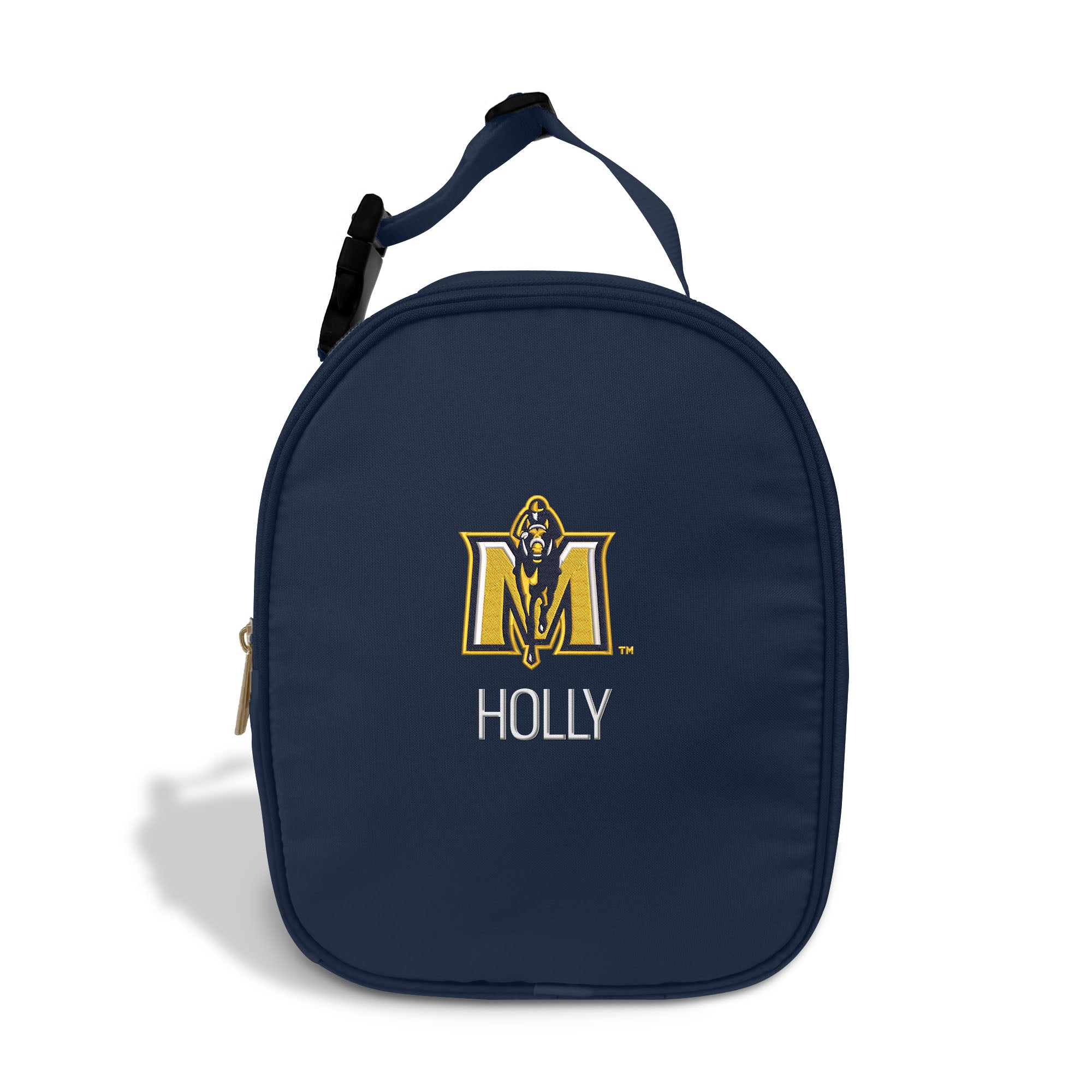 Showcase your passion for the Murray St. Racers with our officially licensed insulated lunch bag. Featuring the embroidered Racers logo, this lunch bag keeps your meals fresh with premium insulation. Measuring 10" x 4" x 8", it offers ample space for your meals and snacks while remaining compact for easy carrying. Made from durable materials, it ensures long-lasting use. Customize it with a name or phrase for a personal touch. Perfect for school, work, or game day events, this lunch bag boldly displays your team spirit and sparks conversations with fellow fans. Get your personalized Racers insulated lunch bag today and show off your dedication both on and off the field!