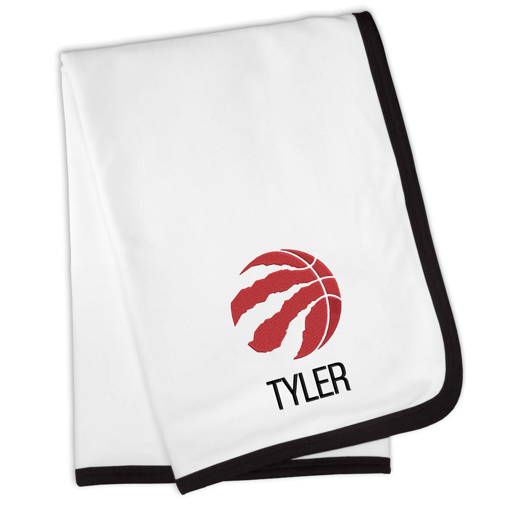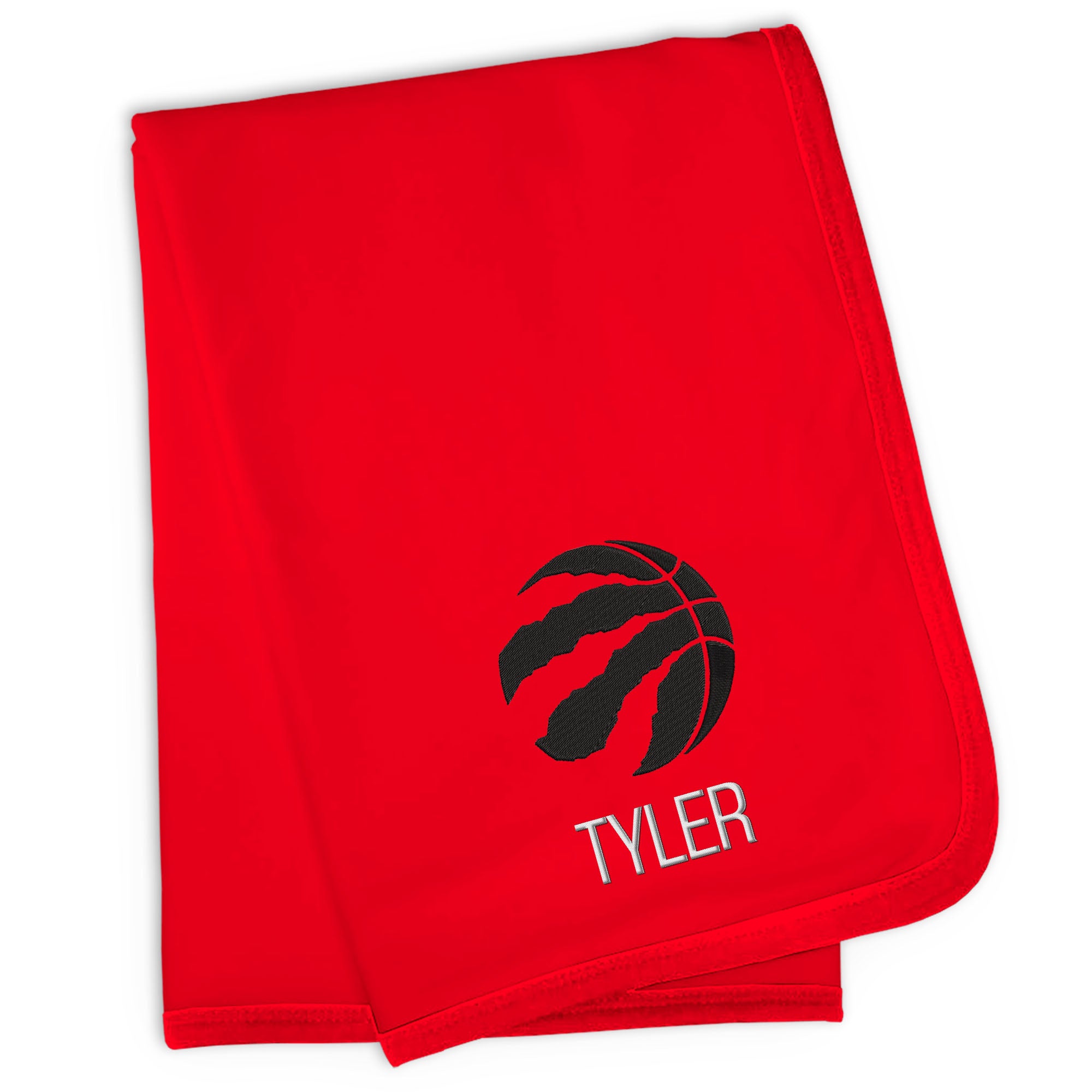 Our Personalized Toronto Raptors Blanket is sized just right for a baby basketball fan. Constructed from super soft 100% cotton jersey knit and trimmed in Raptors team colors, this blanket is perfect for walks in the stroller or swaddling at bedtime. Each blanket is embroidered with the official Raptors logo and your little one’s name or nickname.