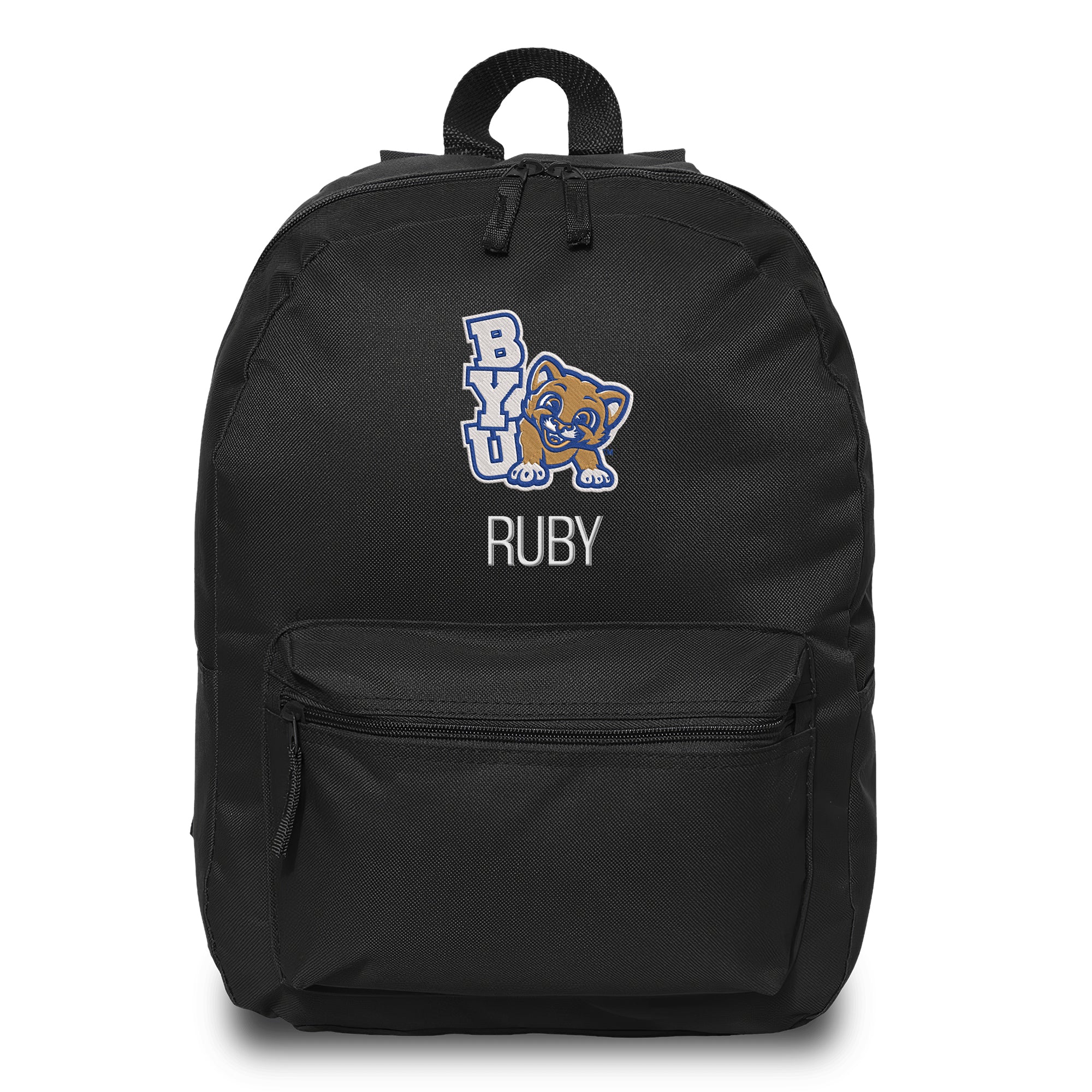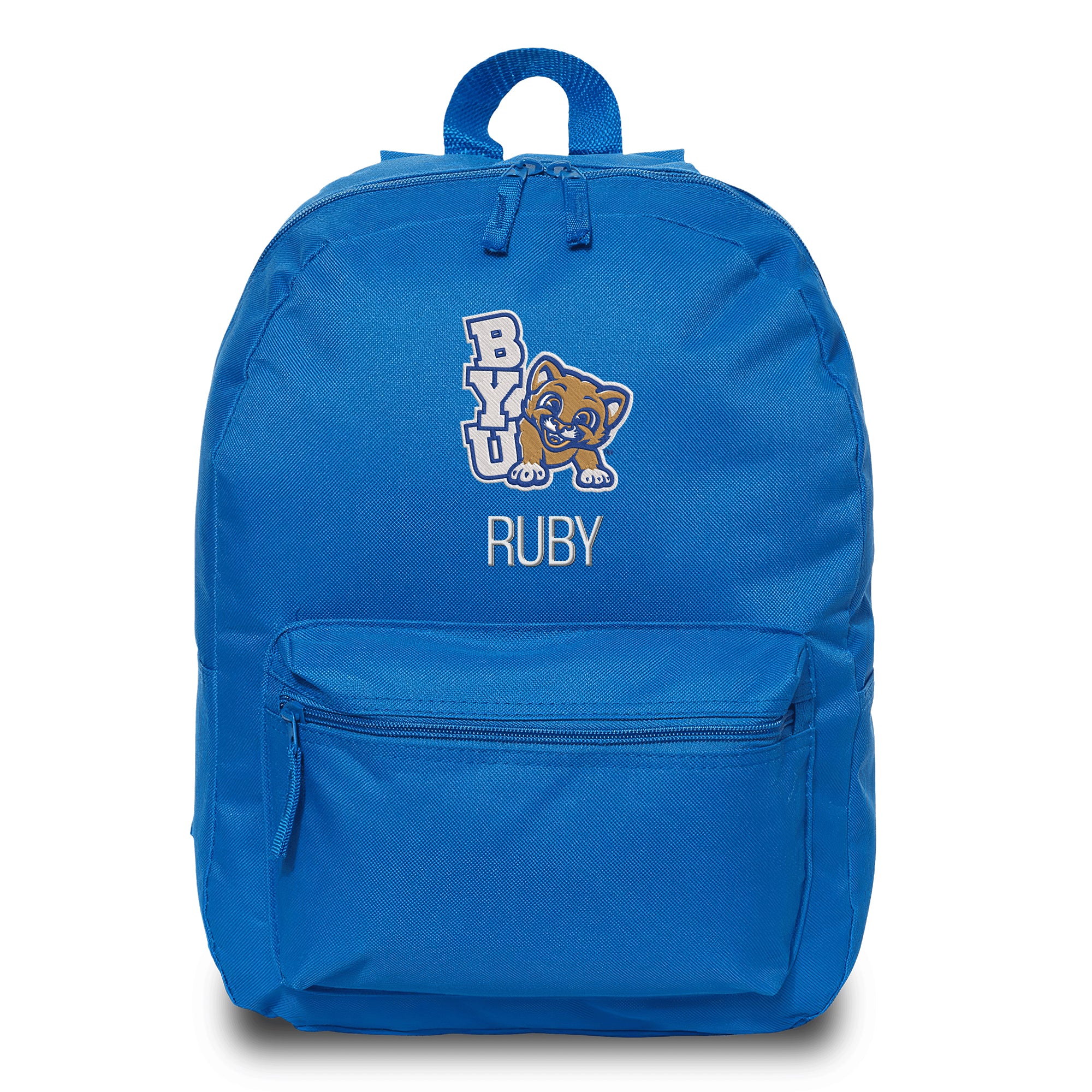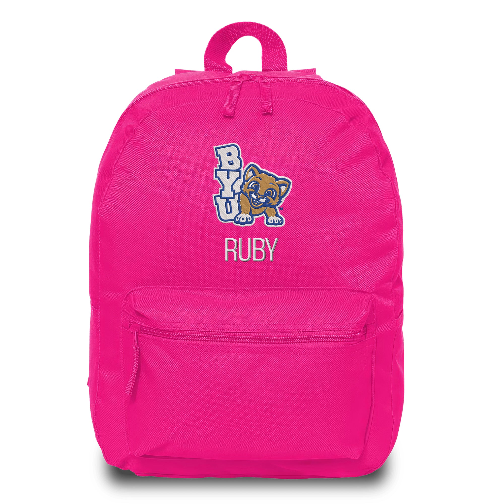 This Brigham Young Cougars backpack is the perfect way for your child to show off their fandom wherever they go! With padded adjustable straps and an extra front zipper compartment, this backpack has everything your little one needs. This bag is embroidered with the Brigham Young Cougars logo and your little one’s name or nickname underneath! This backpack measures 16” tall.