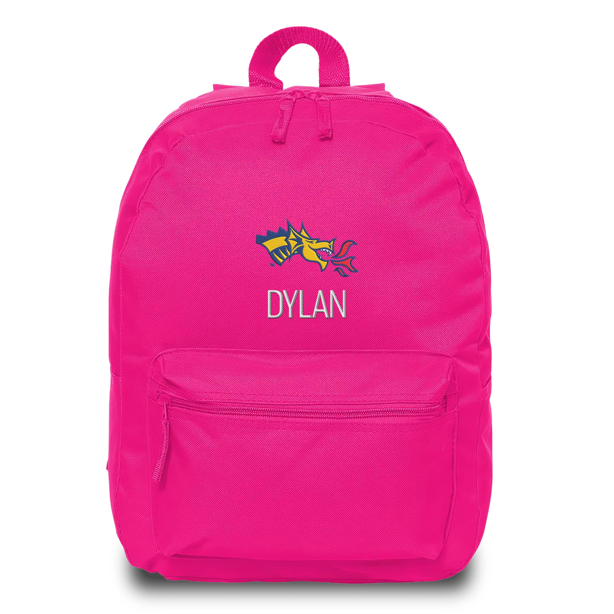 This Drexel Dragons backpack is the perfect way for your child to show off their fandom wherever they go! With padded adjustable straps and an extra front zipper compartment, this backpack has everything your little one needs. This bag is embroidered with the Drexel Dragons logo and your little one’s name or nickname underneath! This backpack measures 16” tall.