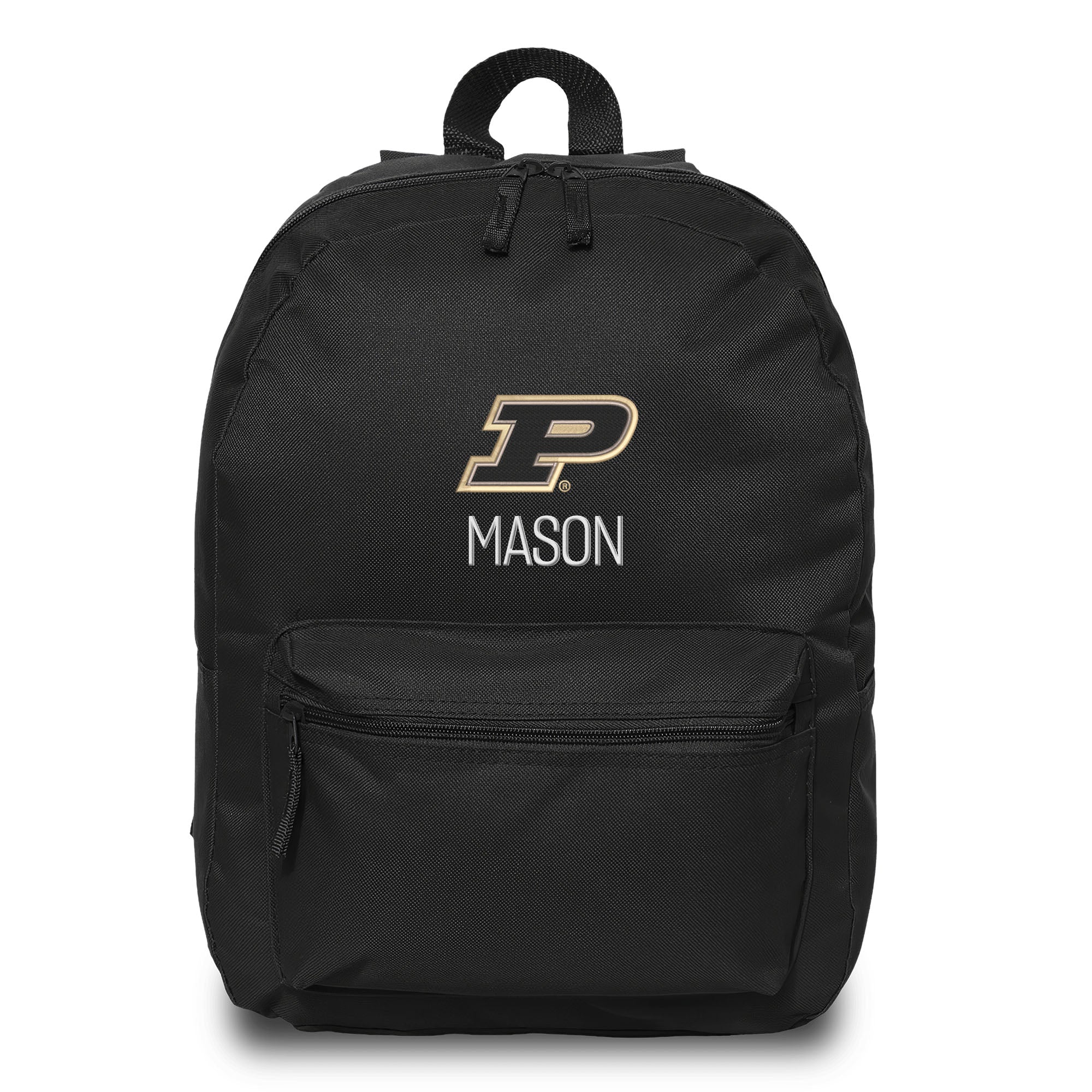 This Purdue Boilermakers backpack is the perfect way for your child to show off their fandom wherever they go! With padded adjustable straps and an extra front zipper compartment, this backpack has everything your little one needs. This bag is embroidered with the Purdue Boilermakers logo and your little one’s name or nickname underneath! This backpack measures 16” tall.
