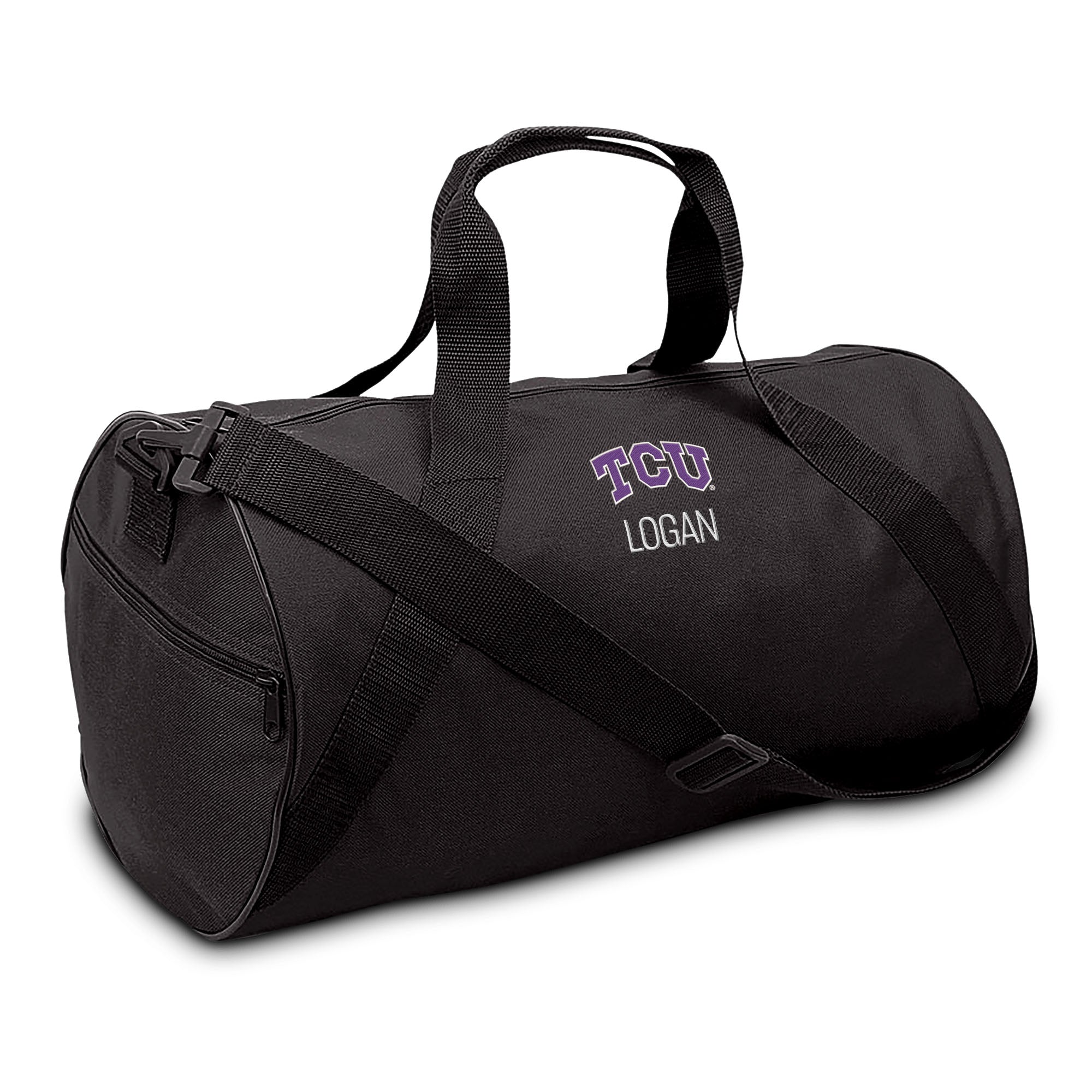 Carry your gear in style and be prepared for any outing with our Personalized TCU Horned Frogs Duffel Bag. Personalize your Officially Licensed Duffel Bag with any name, initial, or nickname. Transport your belongings in style to all of your activities: play dates, sleepovers, sports, vacations, the gym and more. The opportunities are endless!