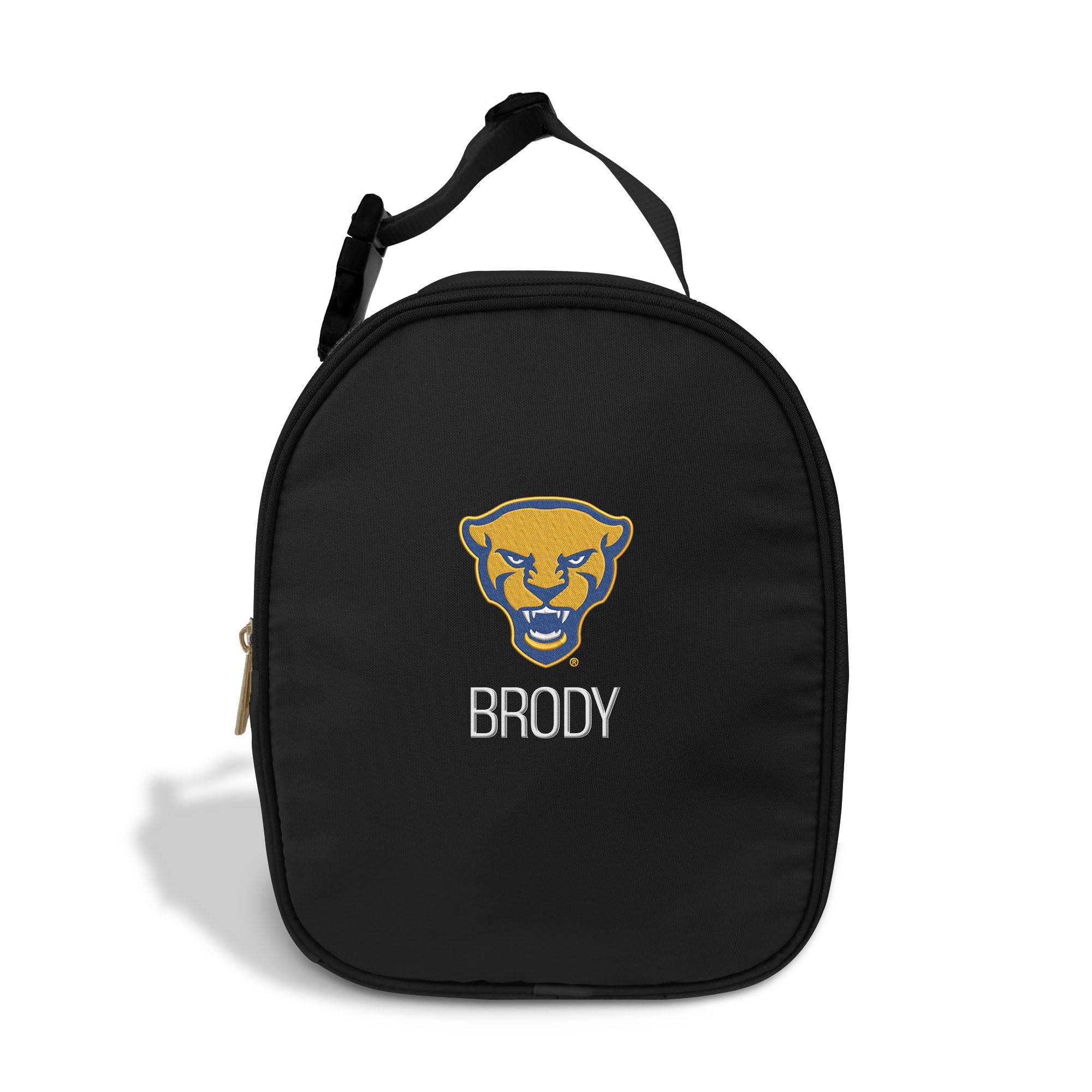 Showcase your passion for the Pitt Panthers with our officially licensed insulated lunch bag. Featuring the embroidered Panthers logo, this lunch bag keeps your meals fresh with premium insulation. Measuring 10" x 4" x 8", it offers ample space for your meals and snacks while remaining compact for easy carrying. Made from durable materials, it ensures long-lasting use. Customize it with a name or phrase for a personal touch. Perfect for school, work, or game day events, this lunch bag boldly displays your team spirit and sparks conversations with fellow fans. Get your personalized Panthers insulated lunch bag today and show off your dedication both on and off the field!