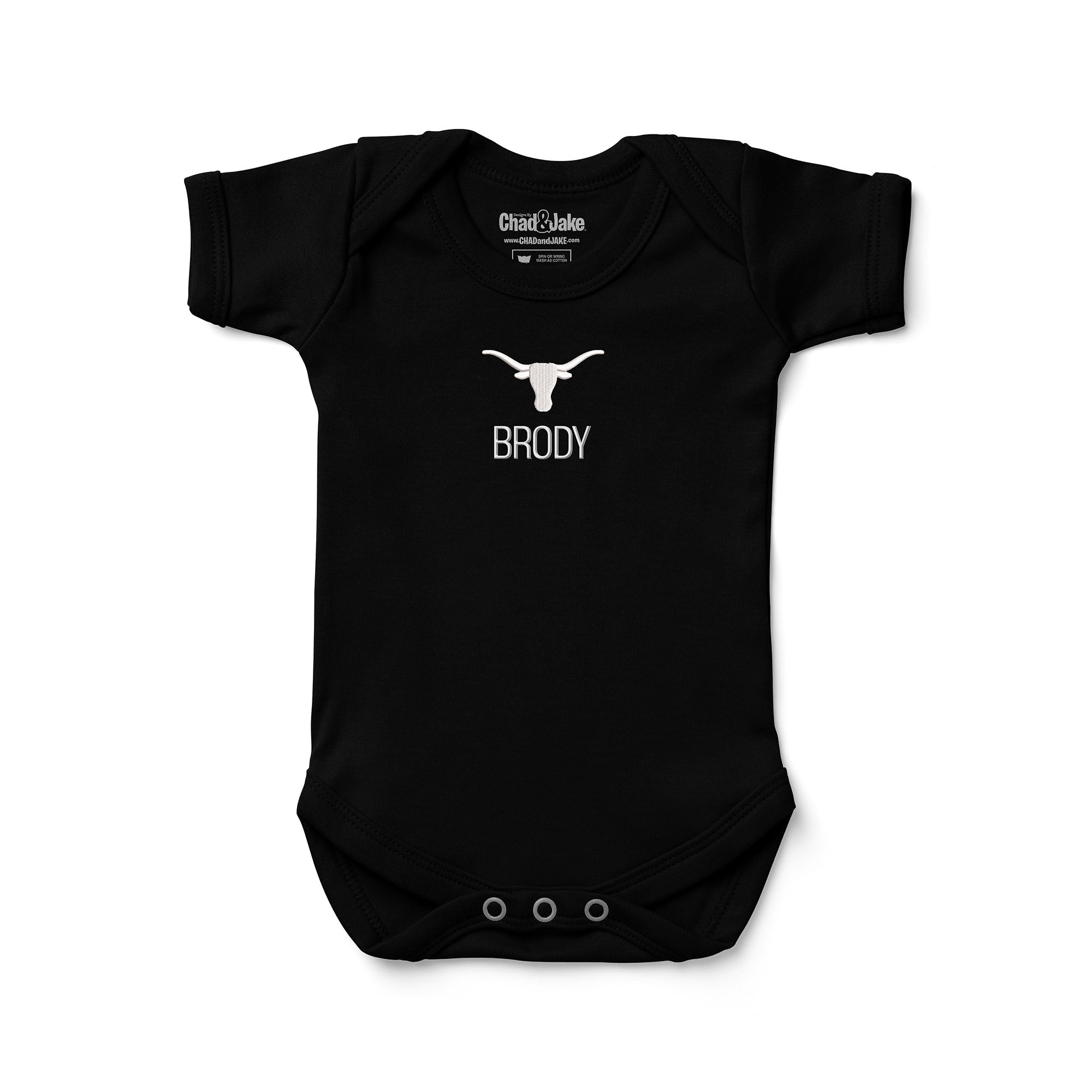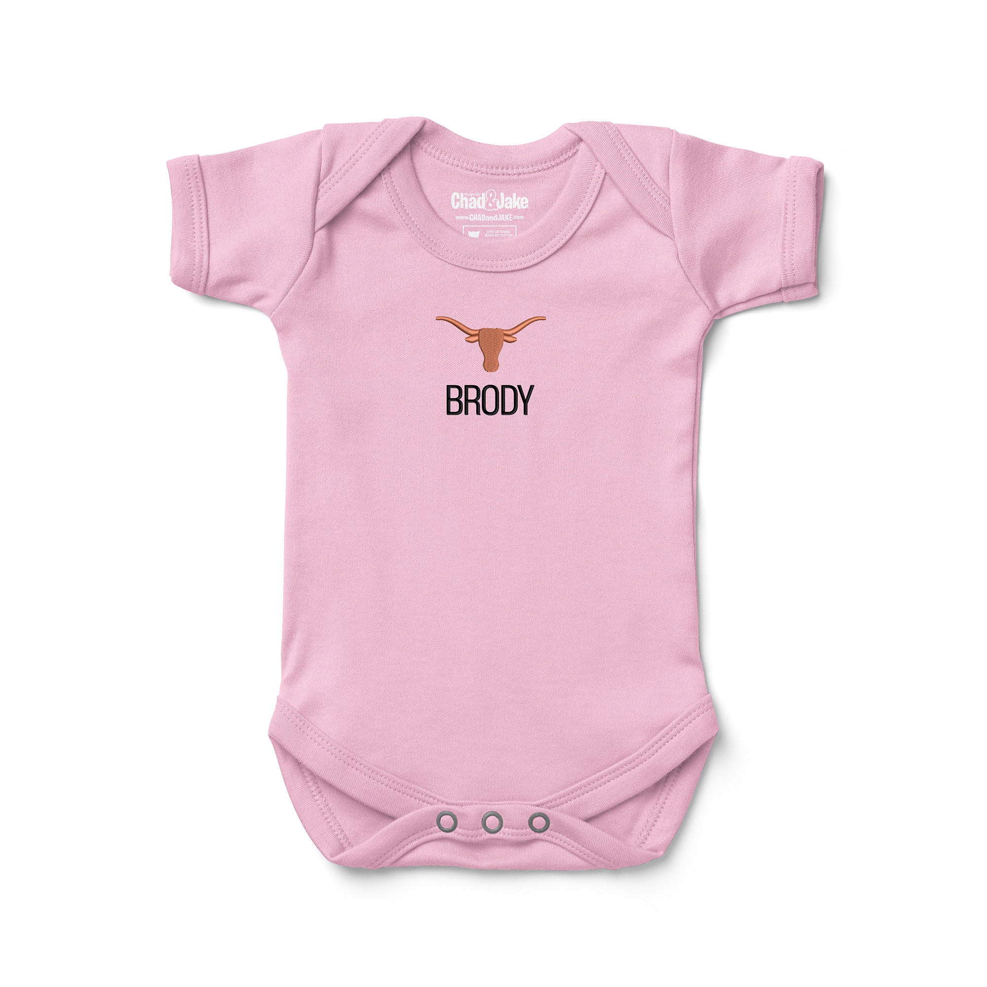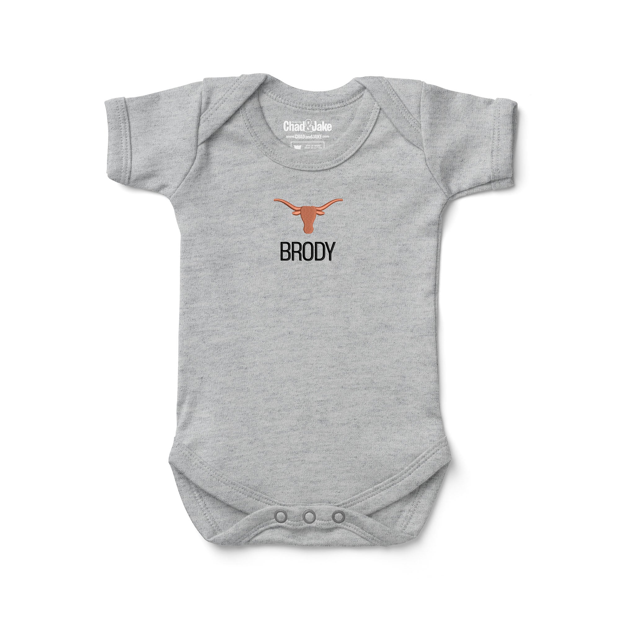 This bodysuit is embroidered with the Texas Longhorns logo on the front, and can be personalized with your little one's name, initials, or nickname under the logo. This personalized bodysuit will let everyone know where your allegiance lies.