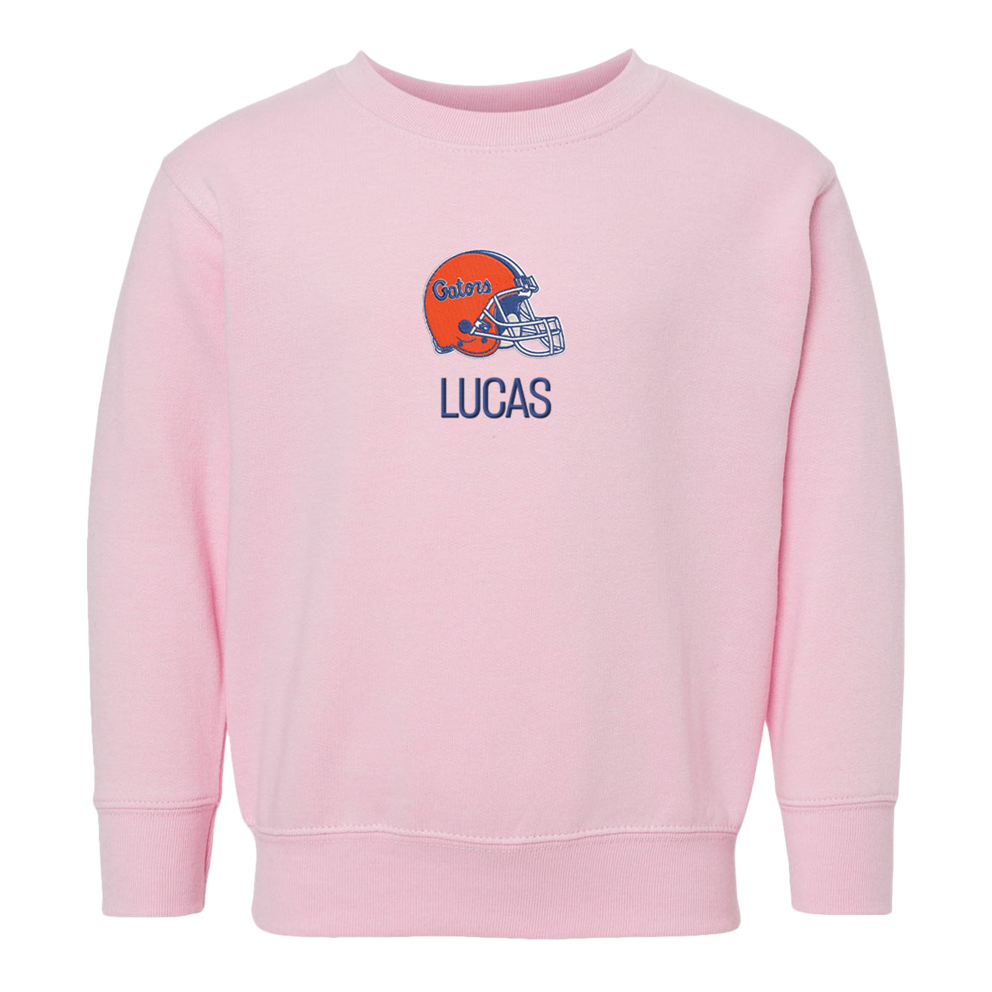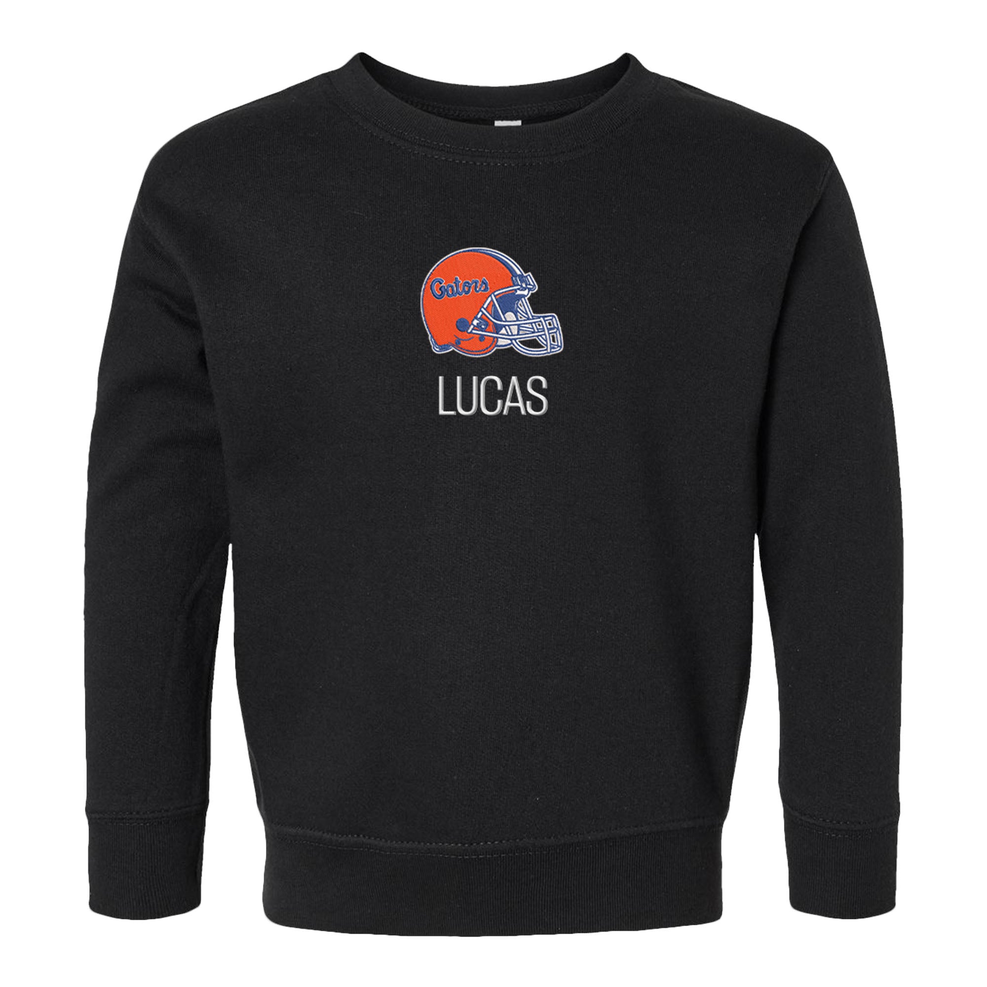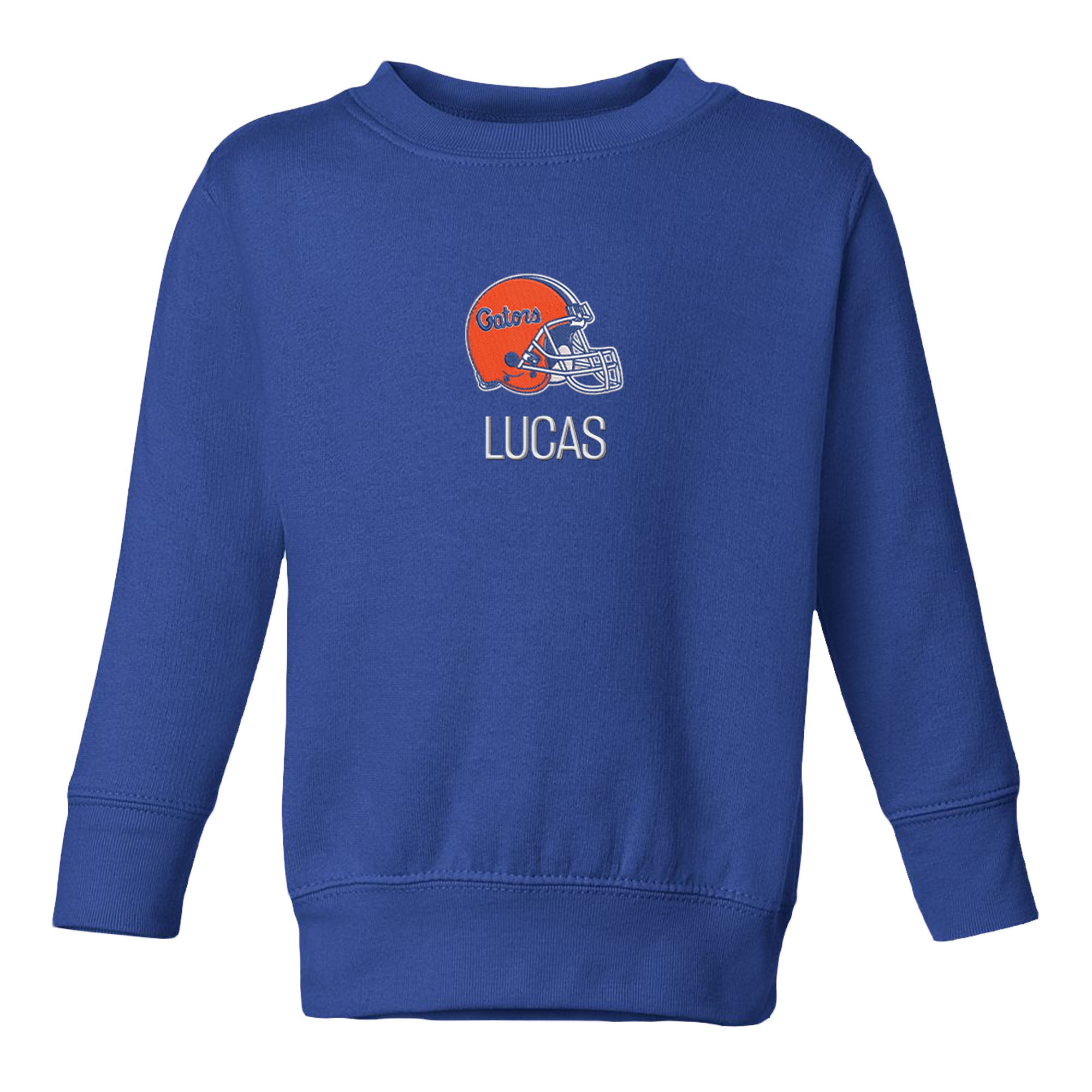 Gear up your little Gator in style with our Personalized Florida Gators Toddler Crewneck Sweatshirt. Made from cozy and soft fabric, this sweatshirt features super unique embroidered graphics that showcase the pride of the Gators Nation. From game day excitement to everyday adventures, your little fan will stand out in this officially licensed apparel. Available in various sizes to fit your little one perfectly. Get the Personalized Florida Gators Toddler Crewneck Sweatshirt today and let your baby show off their team!
