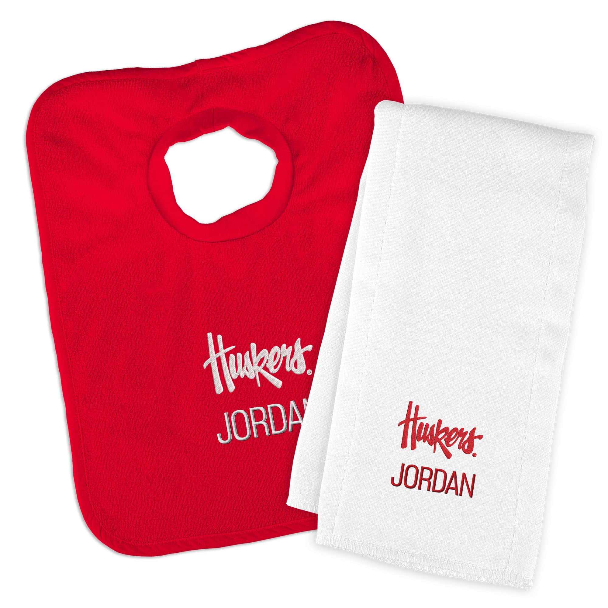 Personalized Nebraska Cornhuskers Script Huskers Bib and Burp Cloth Set