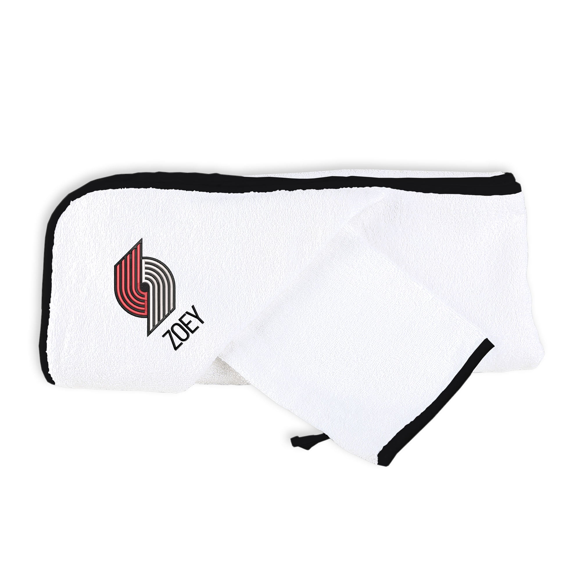 Pamper your youngest sports fan with our Officially Licensed Personalized Portland Trail Blazers Hooded Towel and Wash Mitt Set. Crafted from soft 100% cotton terry, the wash mitt fits over your hand for gentle sudsing and cleansing; then, wrap the baby up in the absorbent Trail Blazers logoed hooded towel. The hooded corner of the towel keeps baby’s head warm while the generously sized towel wraps your future Hawk in cozy comfort. Each towel is embroidered with the official Portland Trail Blazers logo and baby’s name or nickname.