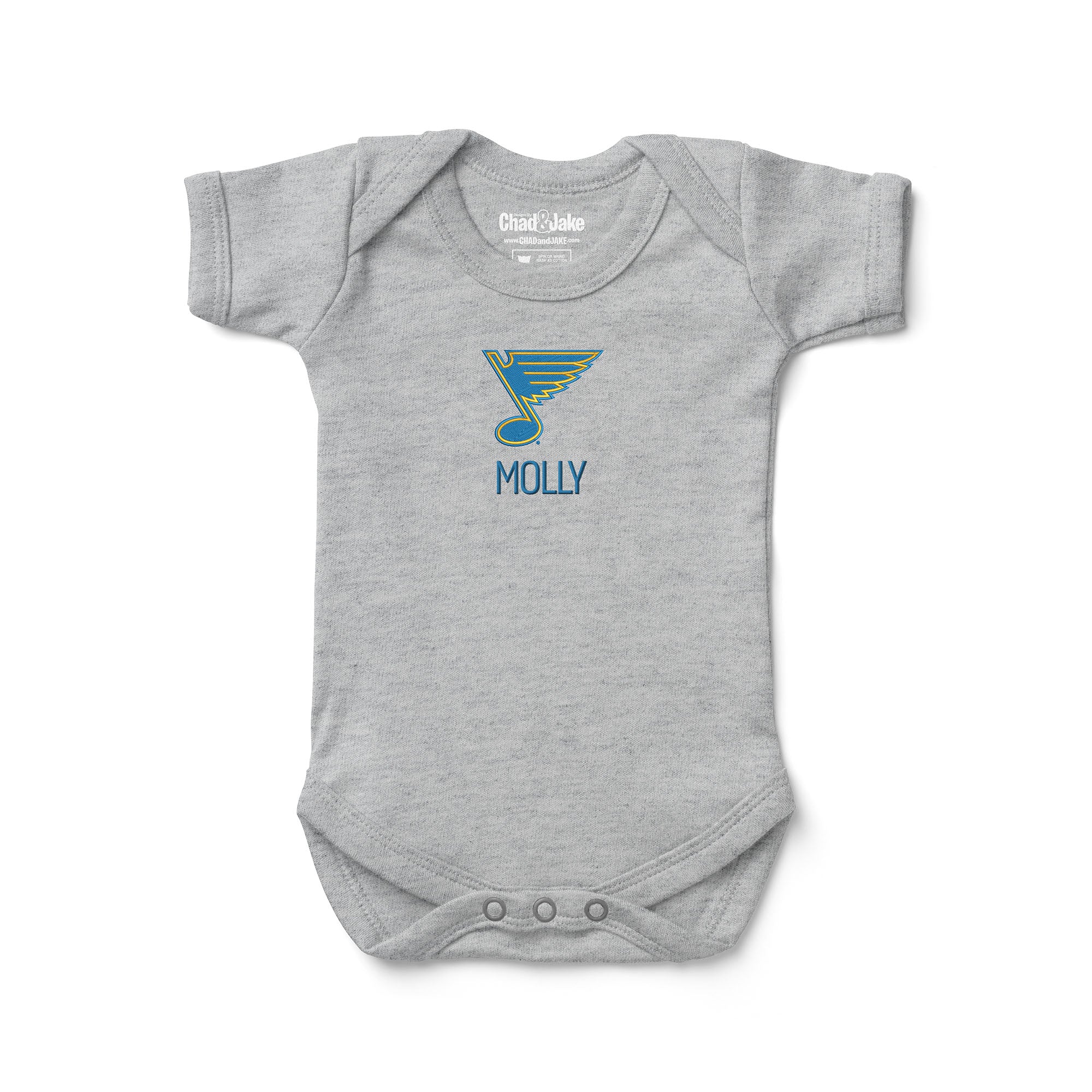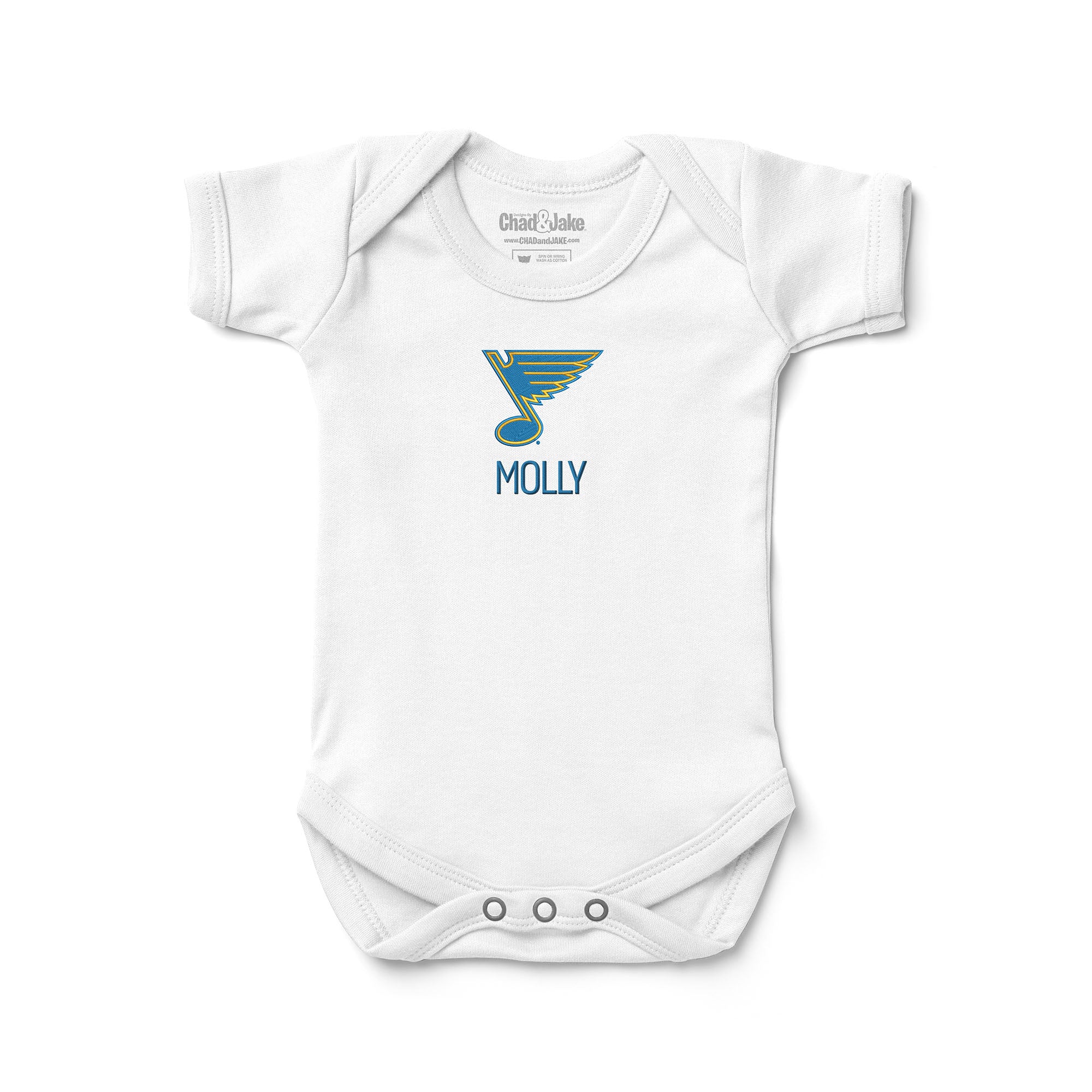 Each bodysuit is embroidered with the St. Louis Blues logo on the front, and can be personalized with your little one's name, initials, or nickname under the logo. This personalized bodysuit will let everyone know where you stand when it comes to supporting your team.