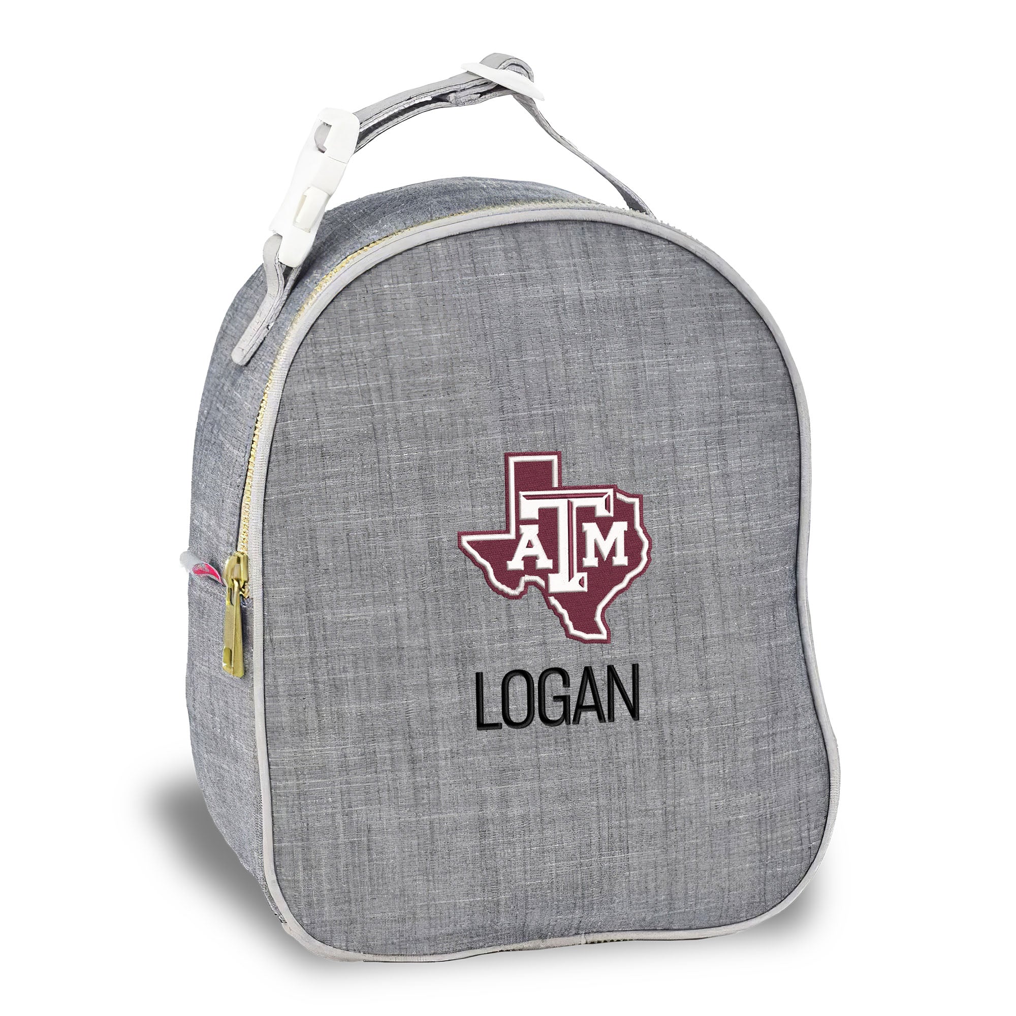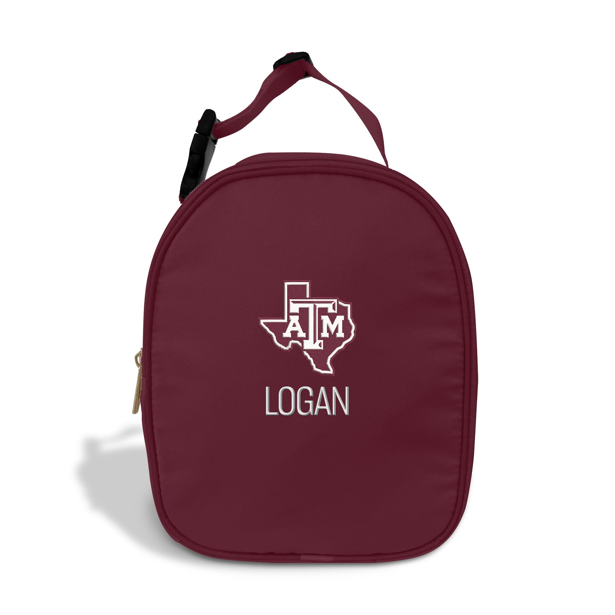 Showcase your passion for the Texas A&M Aggies with our officially licensed insulated lunch bag. Featuring the embroidered Aggies logo, this lunch bag keeps your meals fresh with premium insulation. Measuring 10" x 4" x 8", it offers ample space for your meals and snacks while remaining compact for easy carrying. Made from durable materials, it ensures long-lasting use. Customize it with a name or phrase for a personal touch. Perfect for school, work, or game day events, this lunch bag boldly displays your team spirit and sparks conversations with fellow fans. Get your personalized Aggies insulated lunch bag today and show off your dedication both on and off the field!