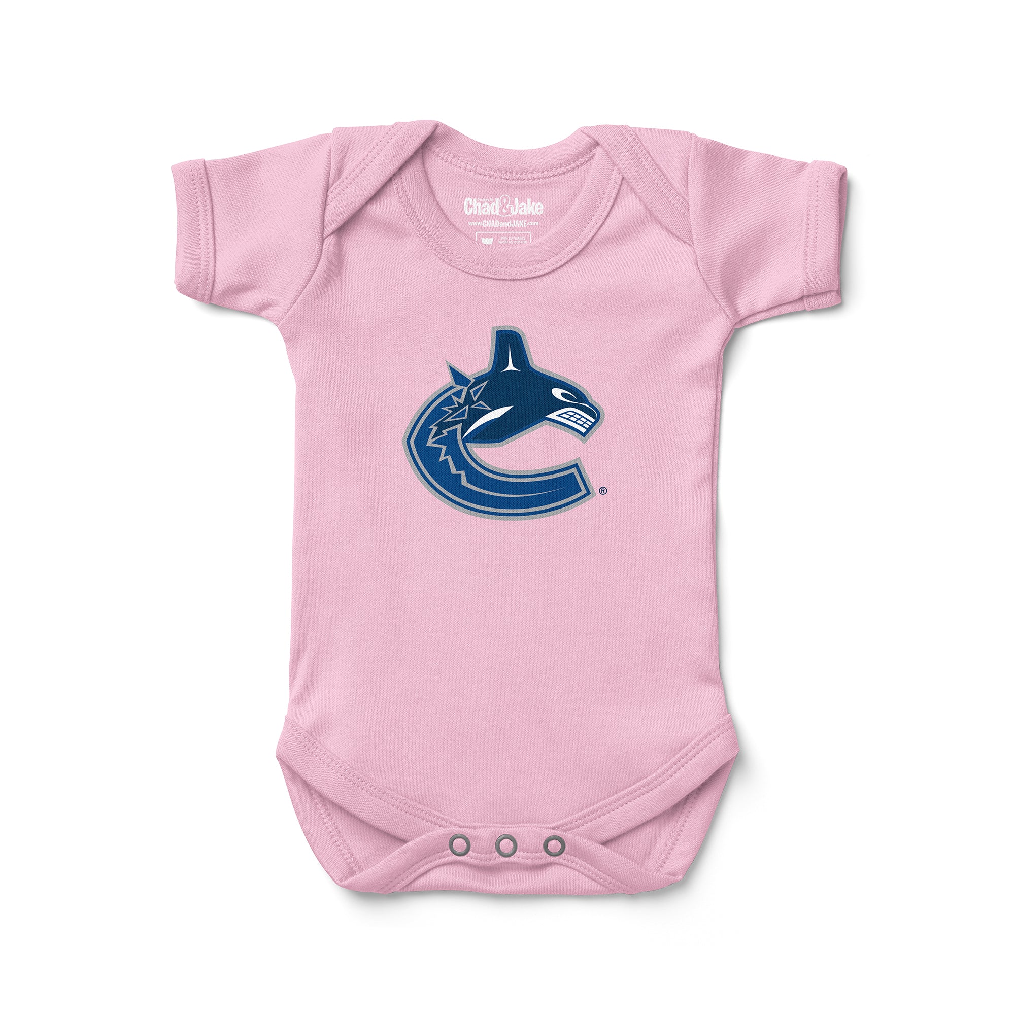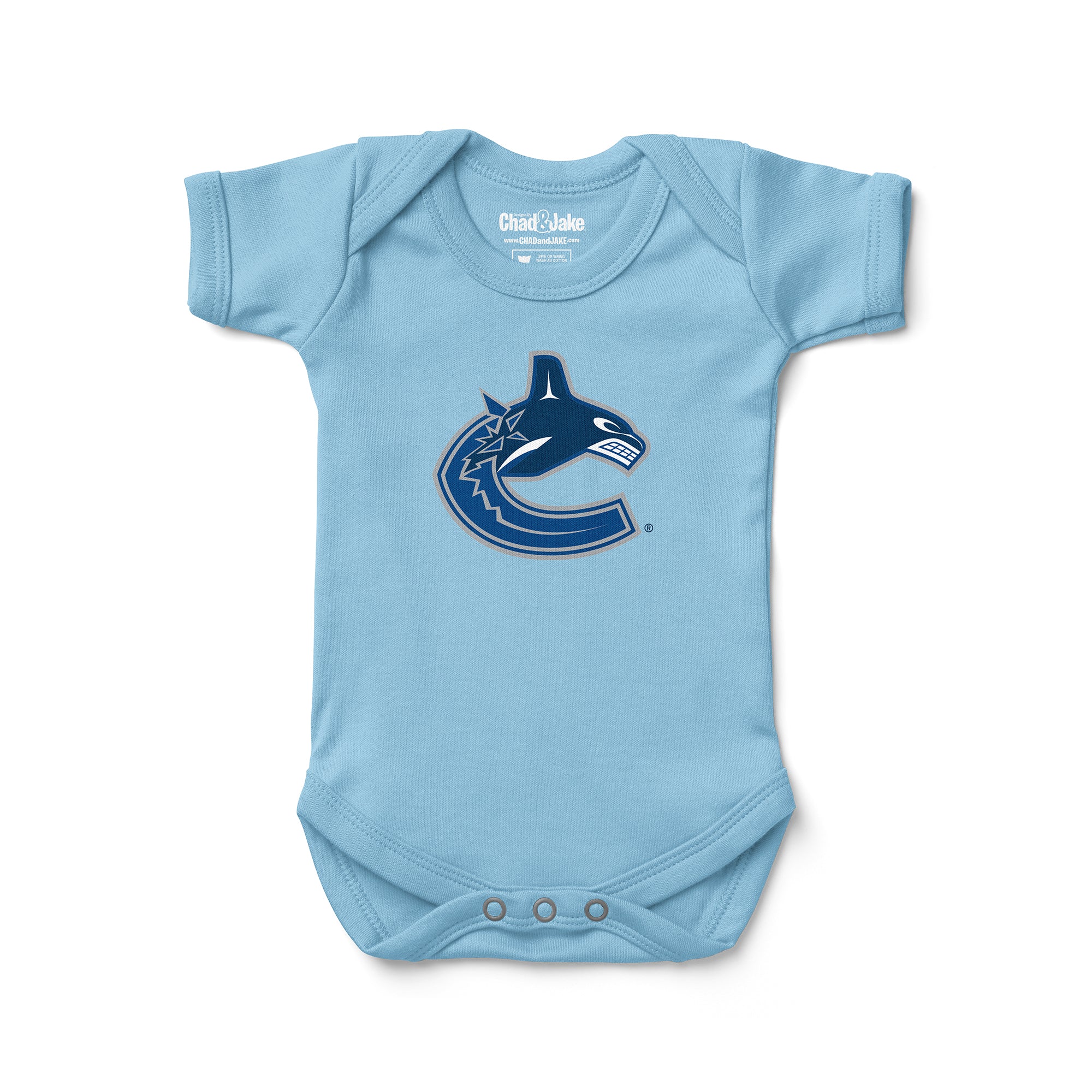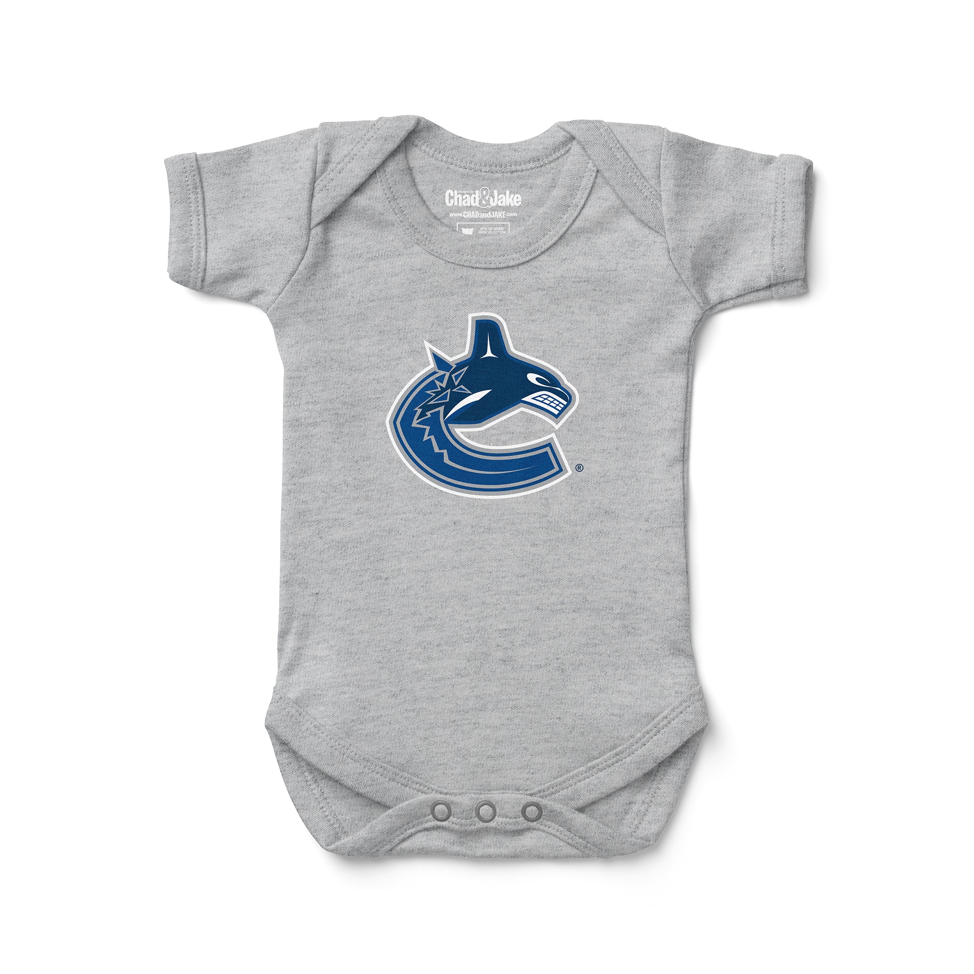 Dress your little one in the spirit of the Vancouver Canucks with our 100% interlock cotton Baby Bodysuit, officially licensed by the NHL and incredibly soft to the touch. Available in five sizes (0-3 MO, 3-6 MO, 6-12 MO, 12-18 MO, and 18-24 MO), this bodysuit is designed to have your baby cheering for the Canucks right from the start. Whether it's game day or a casual outing, this officially licensed NHL apparel ensures your baby's comfort and style. Order now and let your little one proudly display their team spirit in the coziest and most stylish way imaginable.