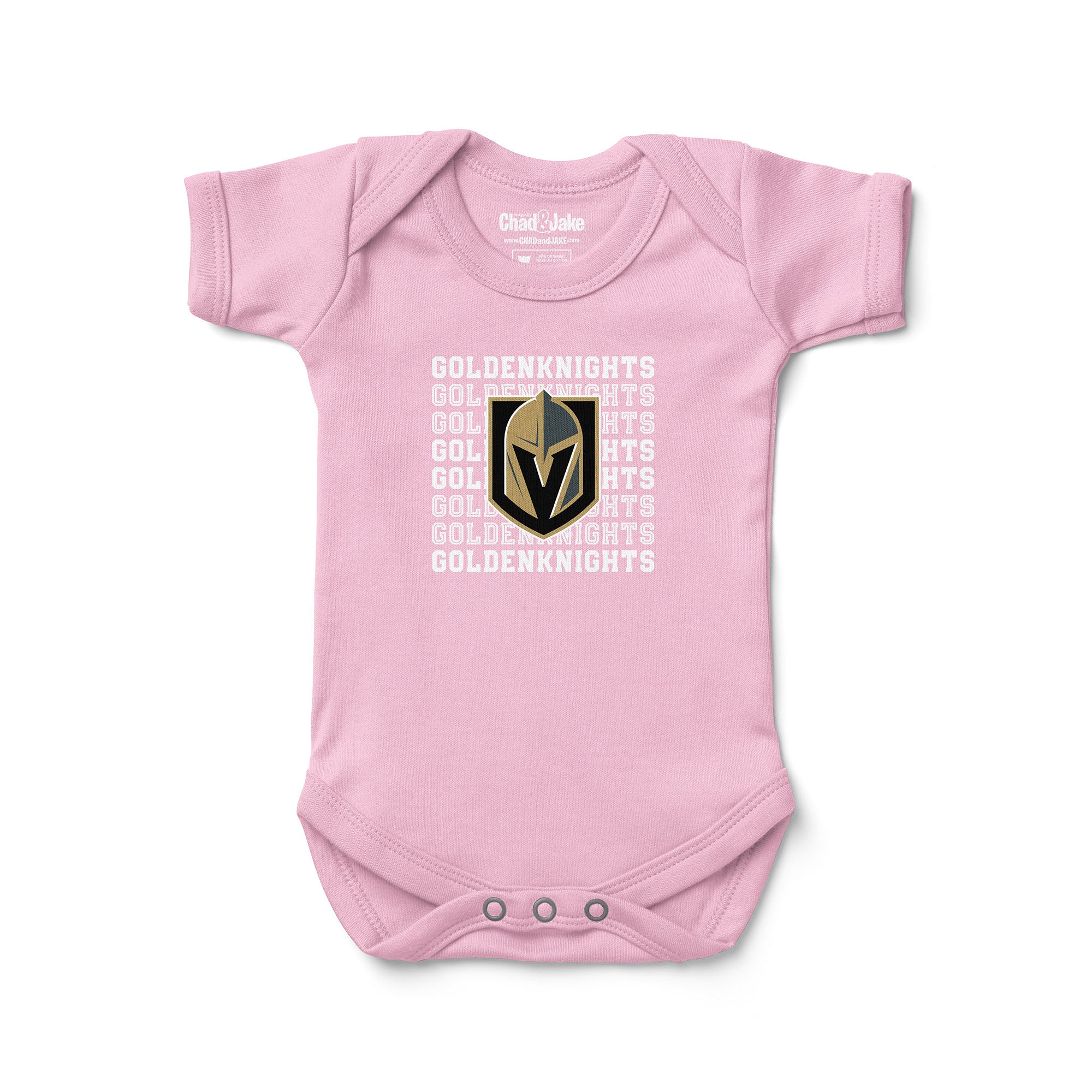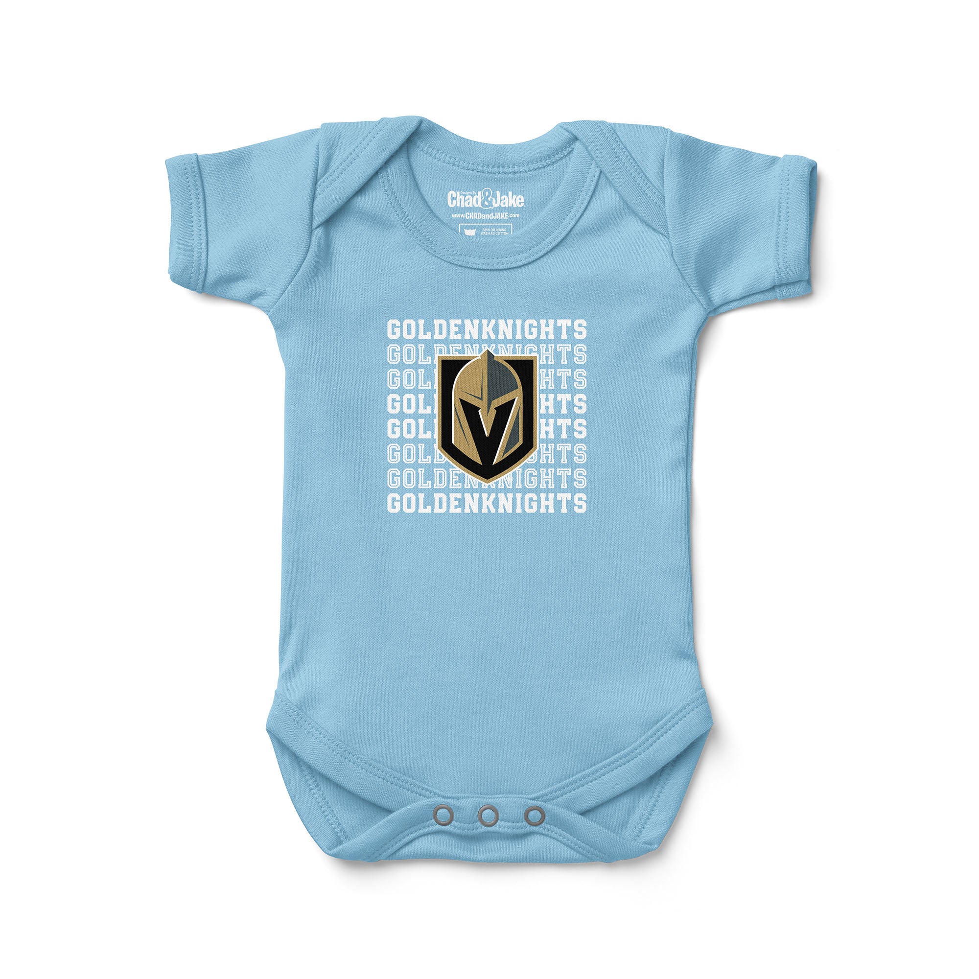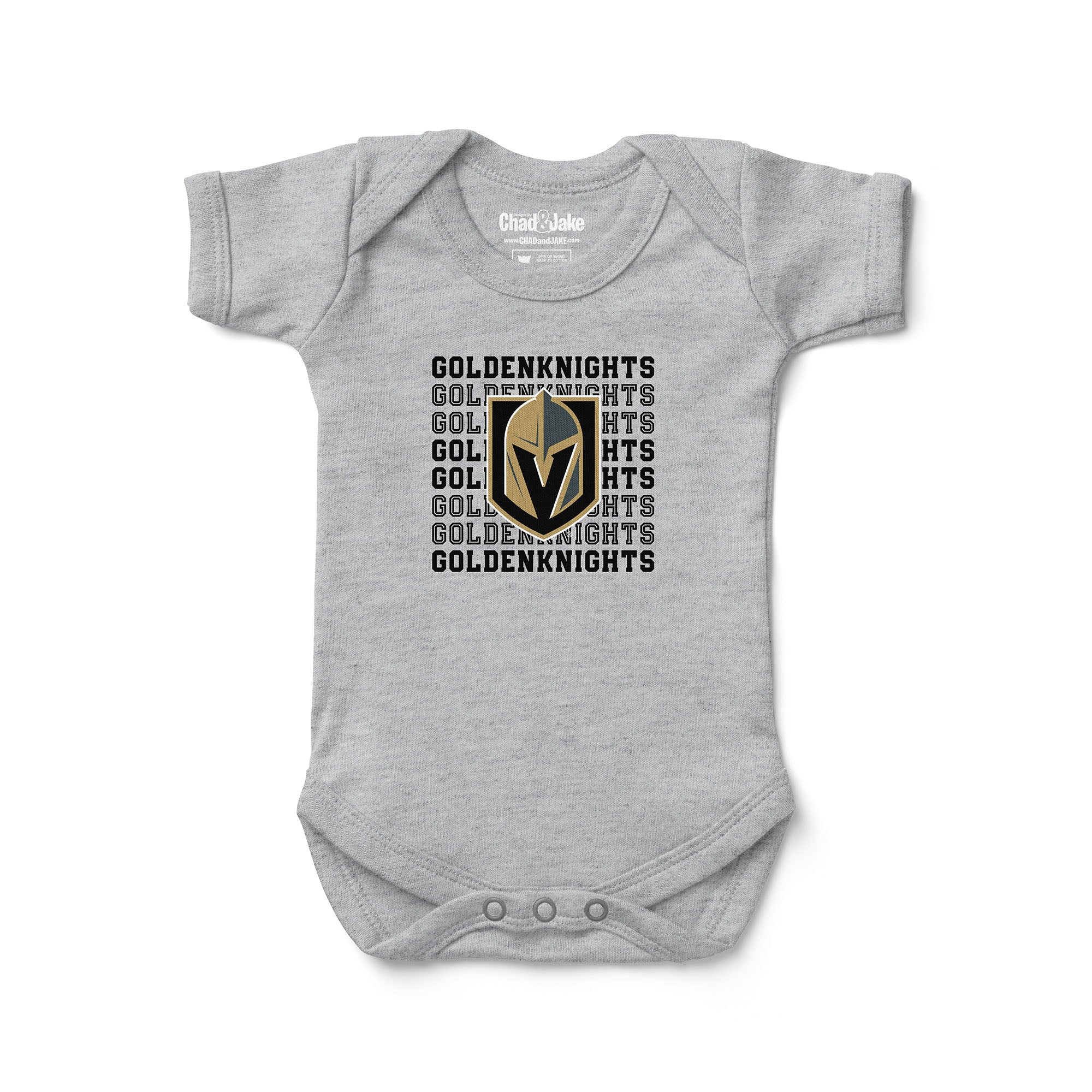 Wrap your little one in the ultimate fan gear with our officially licensed Vegas Golden Knights Baby Bodysuit. Made from 100% interlock cotton, this bodysuit is incredibly soft to the touch, ensuring your baby's comfort all day long. Featuring the official NBA logo and a retro-inspired design, it's the perfect way to start your baby's journey as a loyal Golden Knights fan from day one. This bodysuit is available in five sizes: 0-3 Months, 3-6 Months, 6-12 Months, 12-18 Months, and 18-24 Months. Get your little one geared up in style and show your Vegas Golden Knights pride with this adorable baby bodysuit. Order yours today!