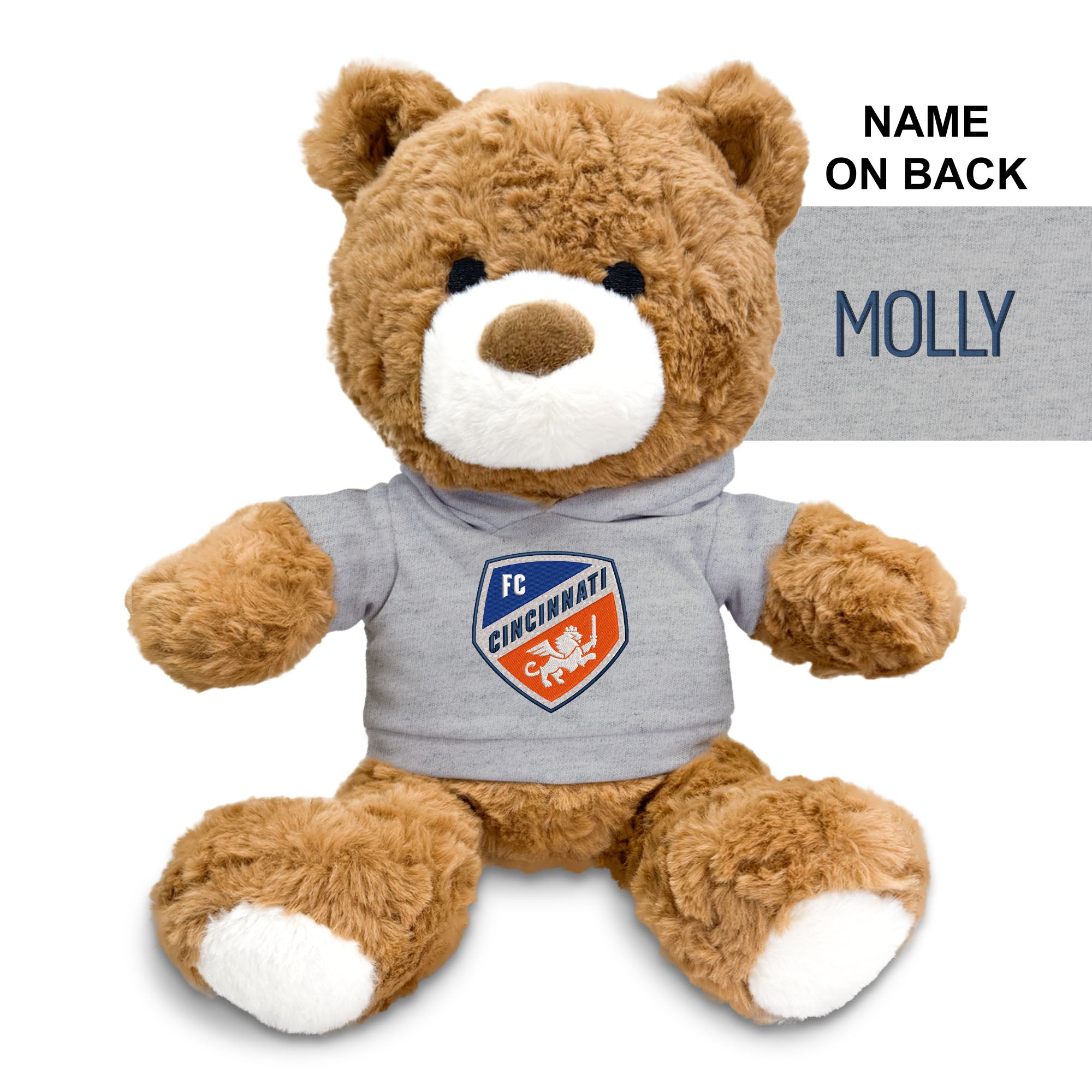 Each plush bear is adorned with the FC Cincinnati logo, elegantly embroidered on the front. What makes this plush bear even more special is the personal touch you can add - your child's name, initials, or nickname beautifully embroidered on the back. Create a unique keepsake that combines their love for FC Cincinnati with a cherished companion.