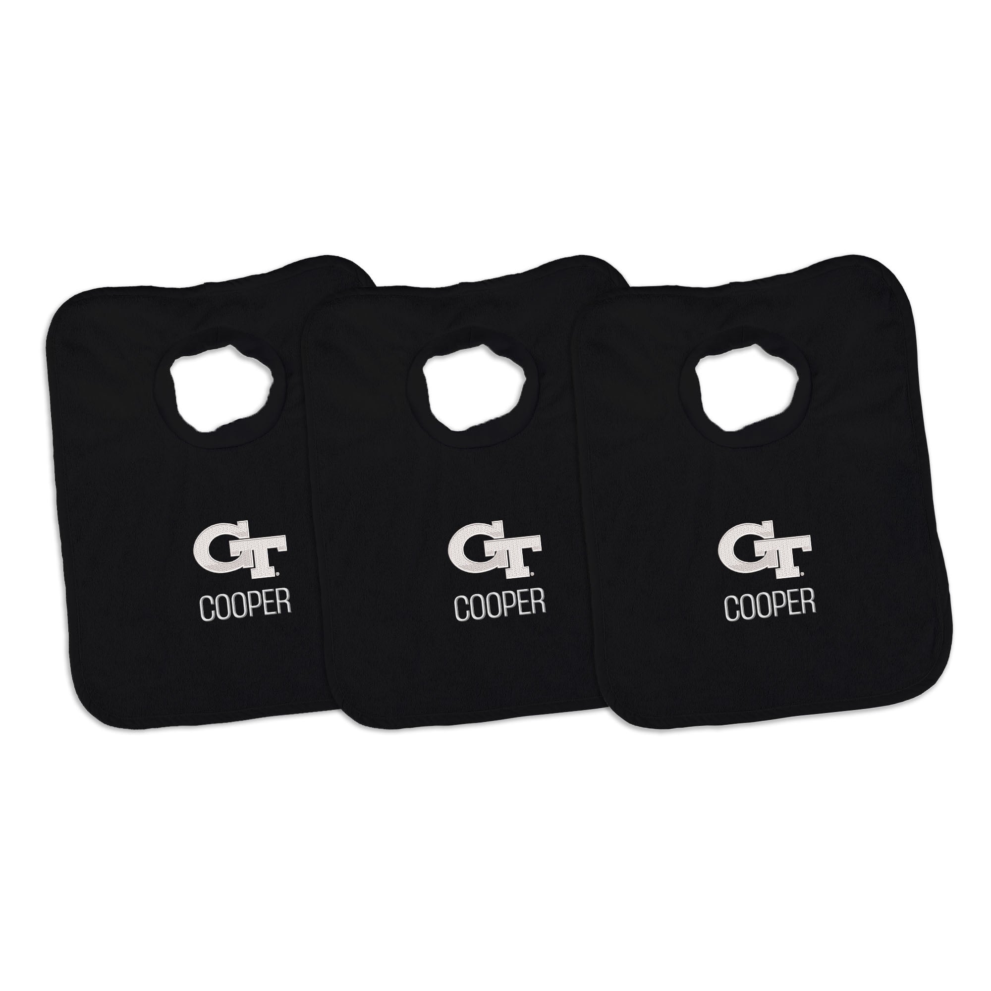 Our Personalized Georgia Tech Yellow Jackets Bibs are the perfect accessory for every baby Yellow Jackets fan. The Yellow Jackets bibs slip on easily over baby’s head, with a neck hole that is specially designed for extra comfort with super soft, gently gathered stretch cotton. Each bib is embroidered with the Yellow Jackets logo and your little one’s name or nickname. Makes a wonderful gift for new Yellow Jackets babies and their families.