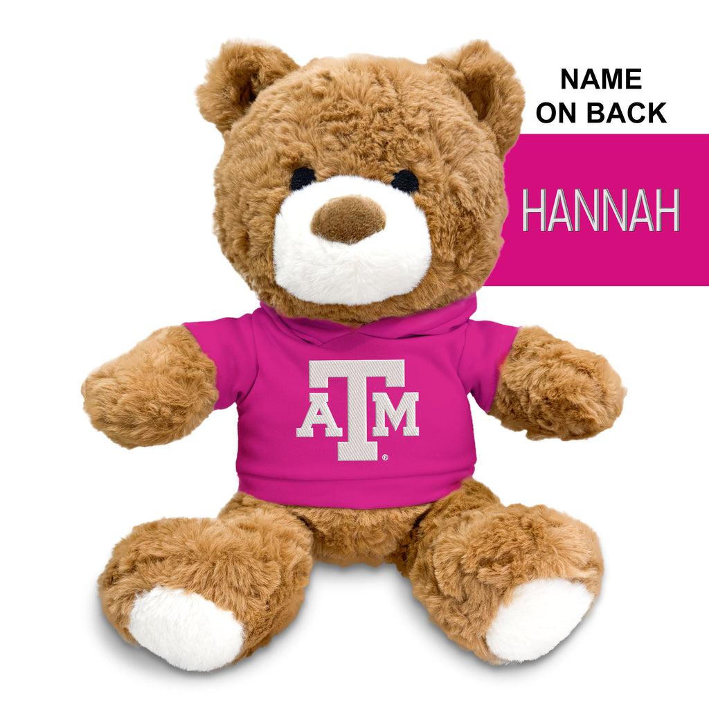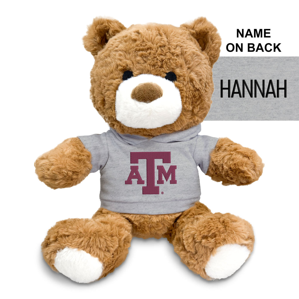 Texas A&M Aggies Plush Bear—your new game-day companion! This 10-inch bear, crafted from ultra-soft polyester, is perfect for cozying up, especially with its snug hoodie. Featuring an embroidered logo on the front, this bear also offers a personal touch with the option to add a name, initials, or nickname on the back. Whether you're cheering from the stands or lounging at home, this plush bear is ready to bring some extra team spirit to your day.