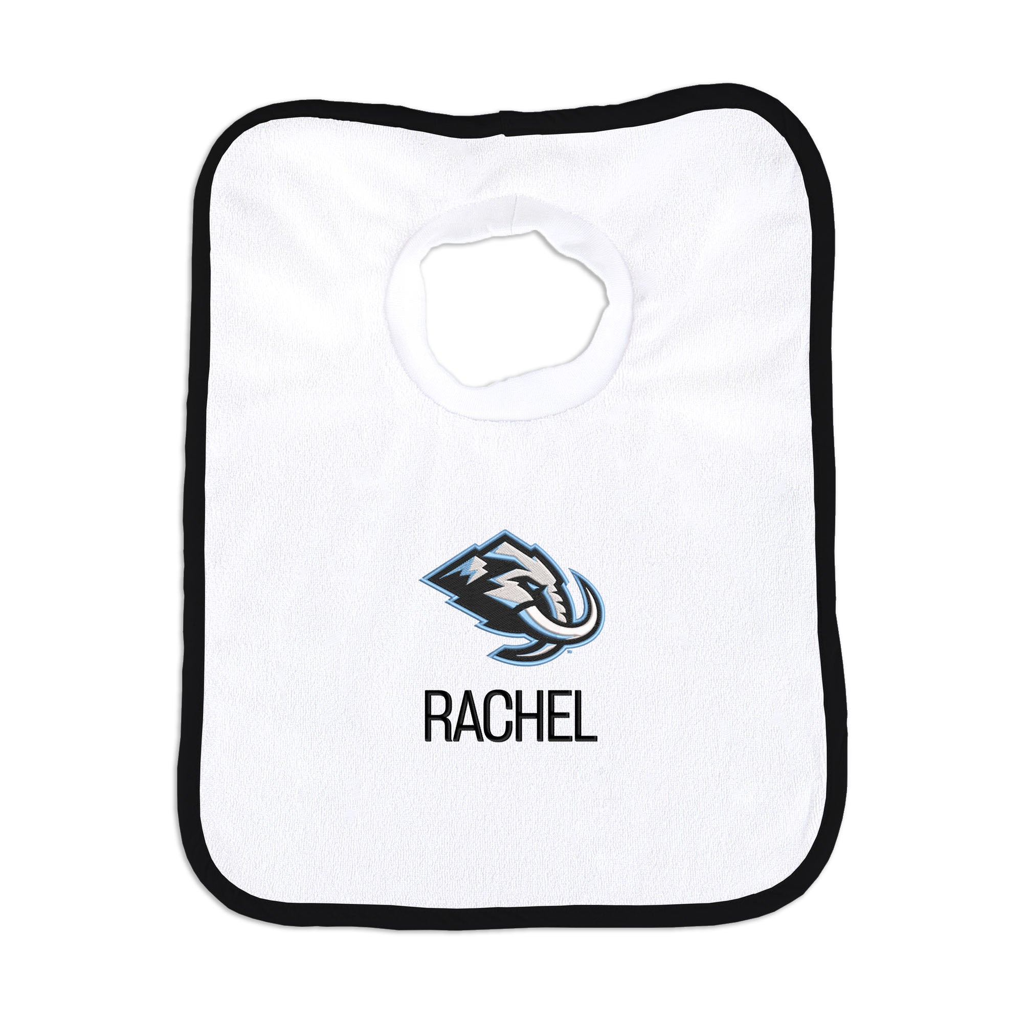 Our Personalized Utah Mammoth Bib is the perfect accessory for every baby Utah Mammoth fan. The bib slips on easily over baby’s head, with a neck hole that is specially designed for extra comfort with super soft, gently gathered stretch cotton. Each bib is embroidered with the Utah Mammoth logo and your little one’s name or nickname. Makes a wonderful gift for new hockey babies and their families.
