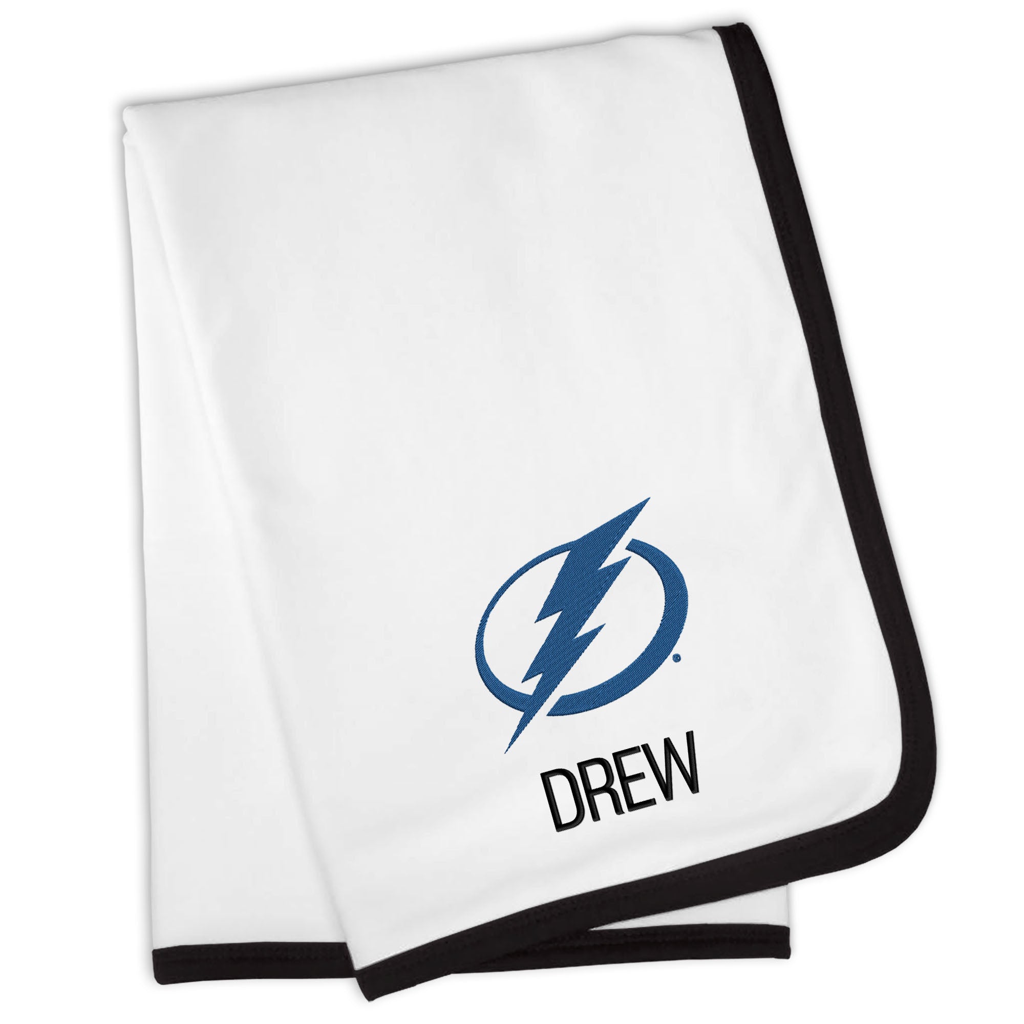The littlest fan in your life will love snuggling up to watch some hockey with their very own personalized blanket. Each Lightning blanket measures 30" x 36" and is customized with a name or phrase of your choice making it the perfect size for little ones to snuggle with. This blanket is also great to have on hand in the car or anywhere your little one wants to have something to wrap up in while they show their team spirit! The blanket is 100% cotton and is machine washable and dryer safe.