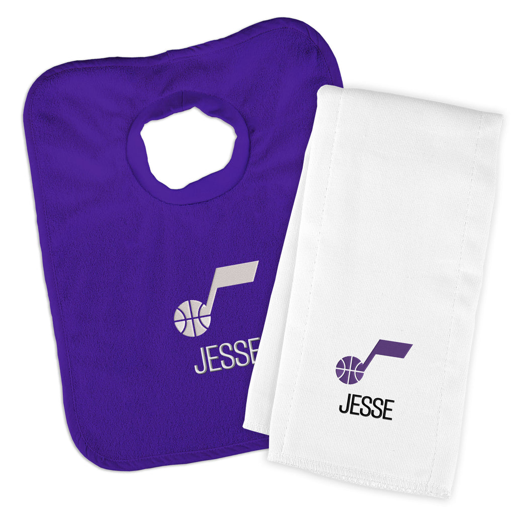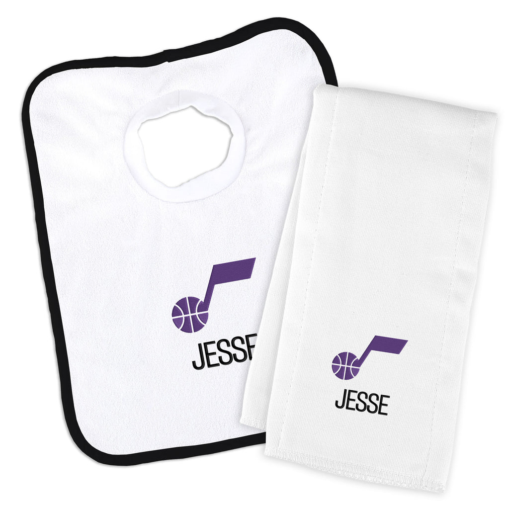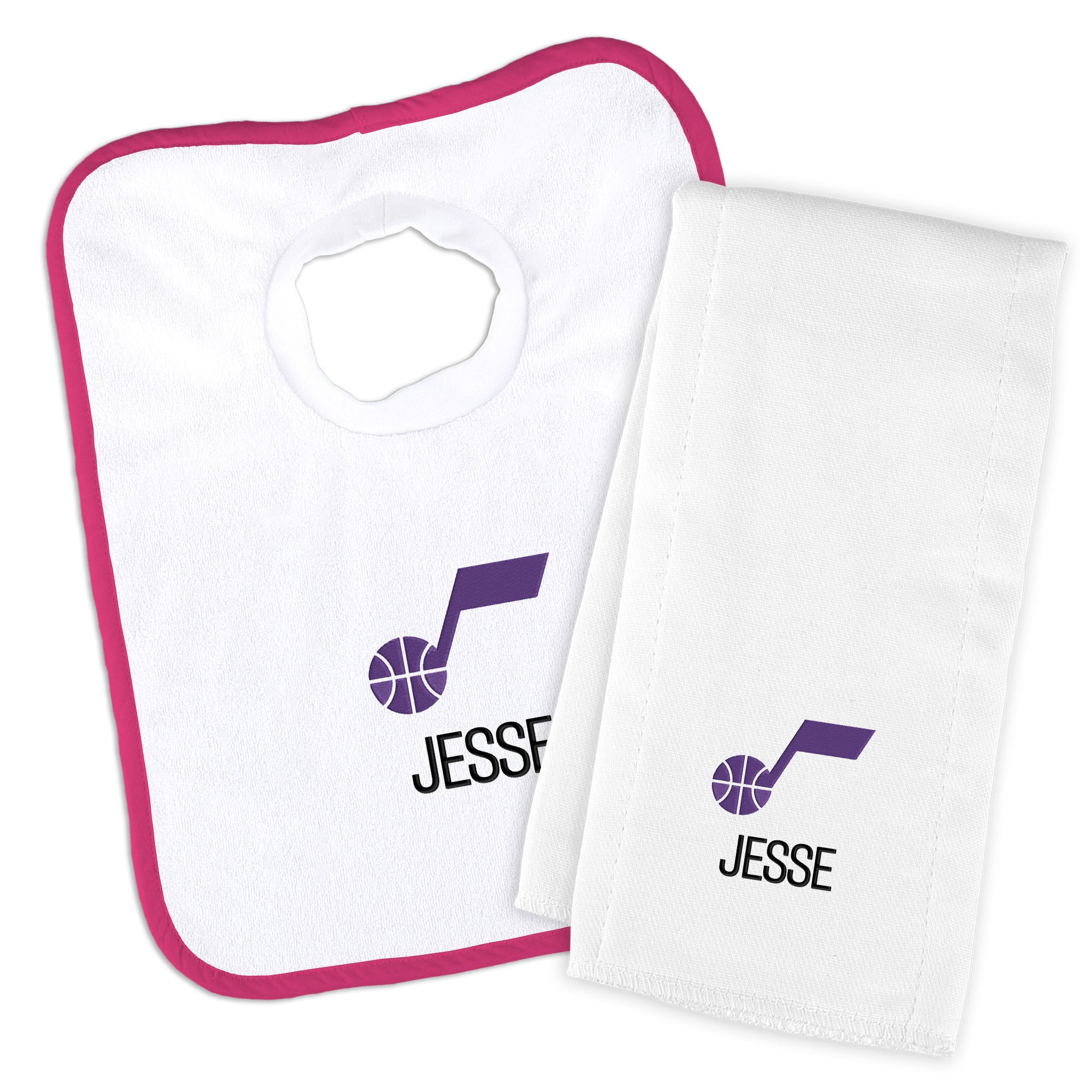 Our Personalized Utah Jazz Bib and Burp Cloth Set is a thoughtful and useful gift for every baby Jazz fan. The Jazz burp cloth is generously sized and made of soft, absorbent 100% cotton, and the Jazz bib has a soft, stretchable cotton neck hole for baby’s comfort. Parents, the bib slips easily over your baby's head and features a soft, gently gathered stretch cotton neck hole for maximum comfort; also, the burp cloth is a must-have asset.