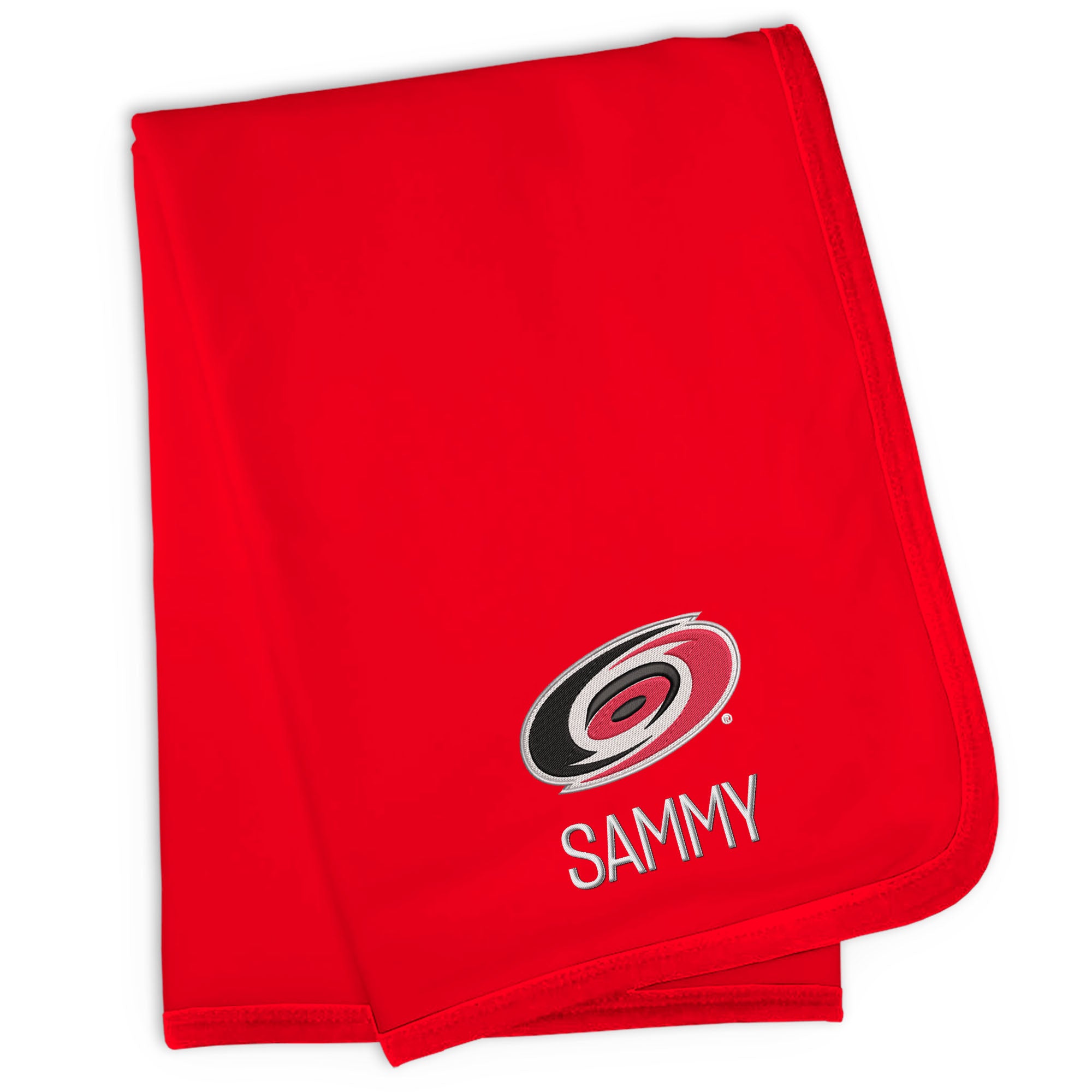 The littlest fan in your life will love snuggling up to watch some hockey with their very own personalized blanket. Each Hurricanes blanket measures 30" x 36" and is customized with a name or phrase of your choice making it the perfect size for little ones to snuggle with. This blanket is also great to have on hand in the car or anywhere your little one wants to have something to wrap up in while they show their team spirit! The blanket is 100% cotton and is machine washable and dryer safe.