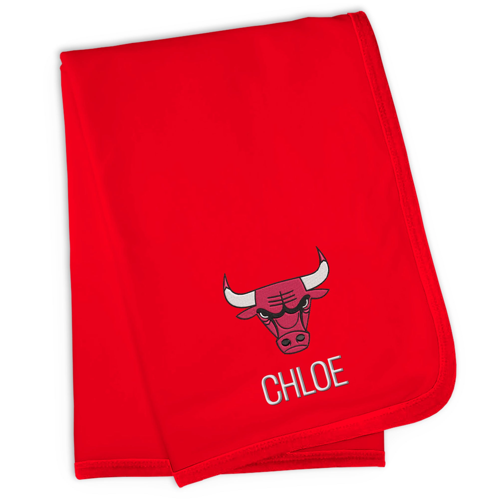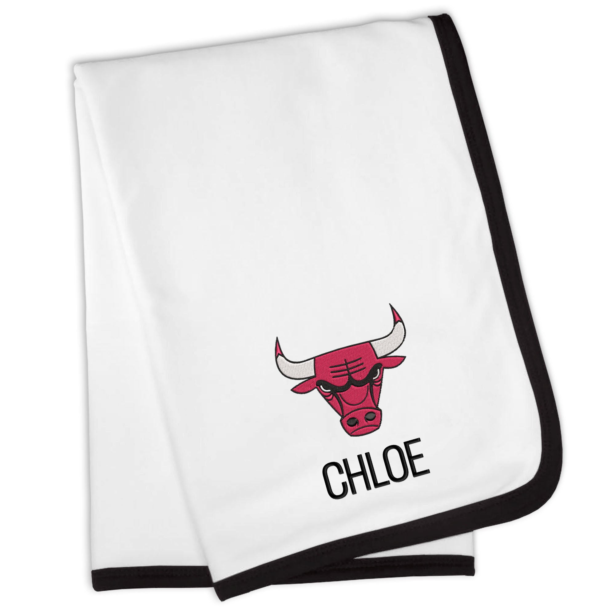 Our Personalized Chicago Bulls Blanket is sized just right for a baby basketball fan. Constructed from super soft 100% cotton jersey knit and trimmed in Bulls team colors, this blanket is perfect for walks in the stroller or swaddling at bedtime. Each blanket is embroidered with the official Bulls logo and your little one’s name or nickname.