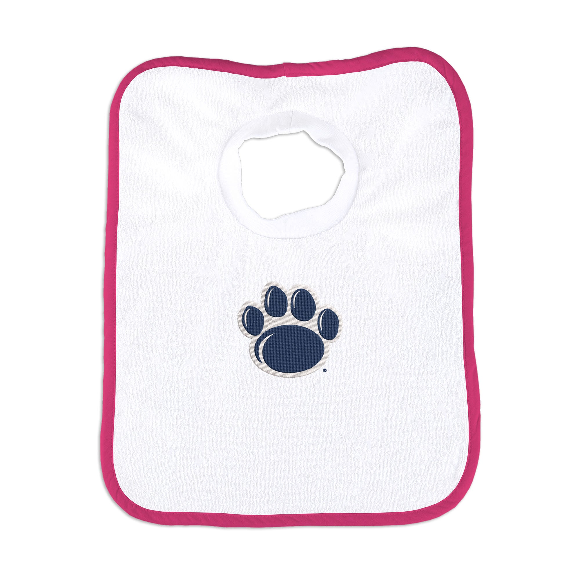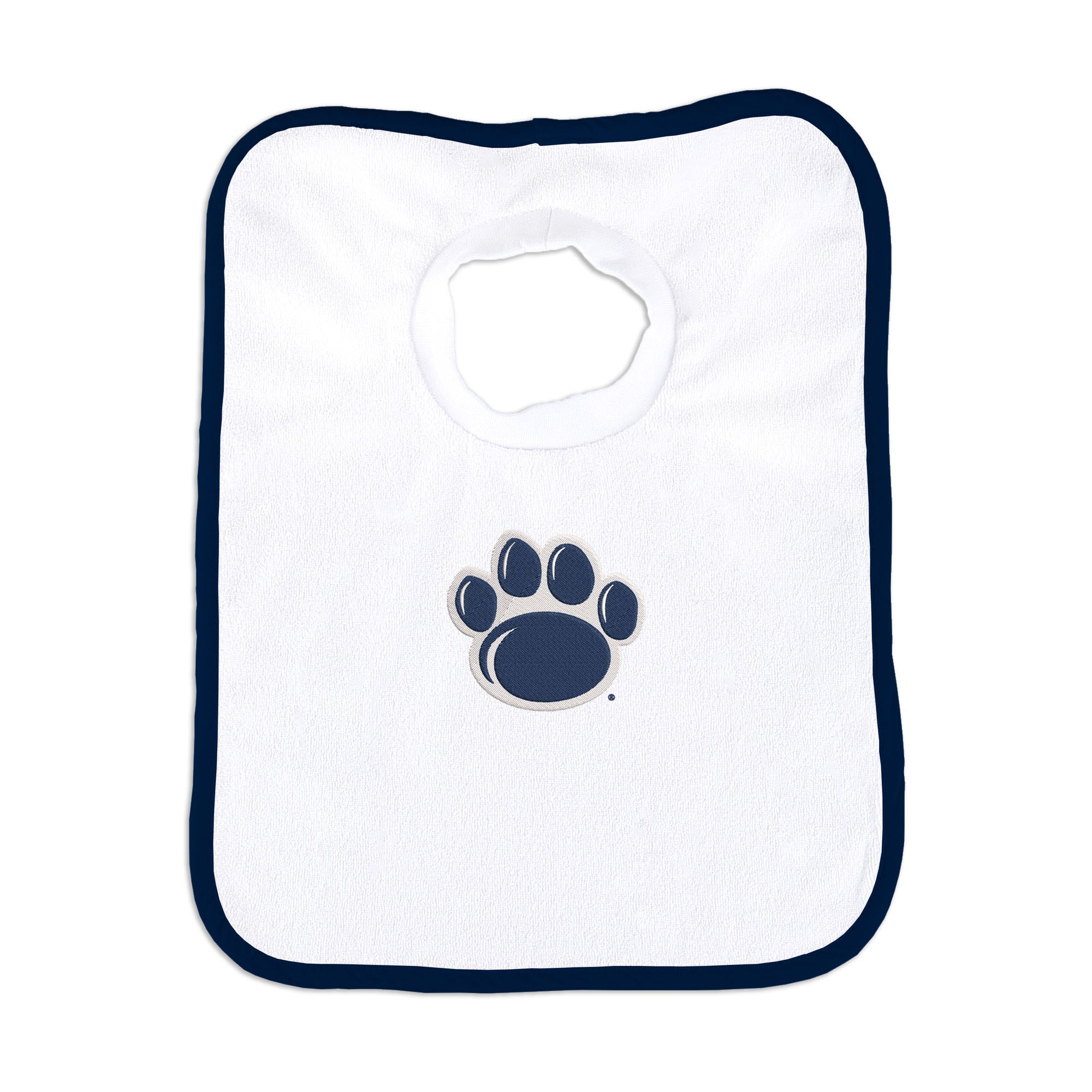 Dress your little Gator in style with our Penn State Nittany Lions Pullover Bib. This bib is a game day essential for your little fan! Crafted from stretch terry cloth, it offers a comfortable and snug fit with its stretchable neck hole. Featuring the iconic Nittany Lions logo, officially licensed by the university, this bib adds a touch of team spirit to every mealtime. Whether it's for catching dribbles or spills, this pullover bib combines functionality with team pride seamlessly. Order the Penn State Nittany Lions Pullover Bib today and let your little one showcase their team pride from mealtime to playtime!