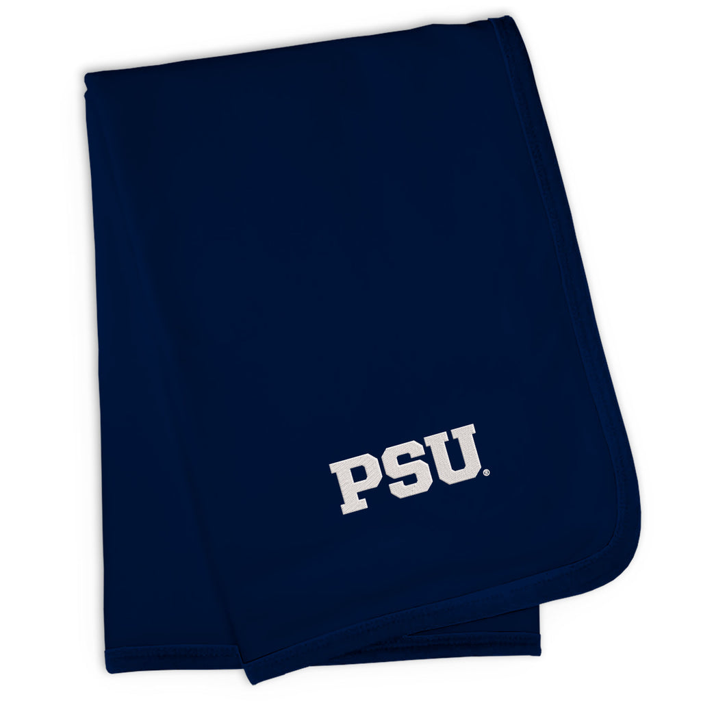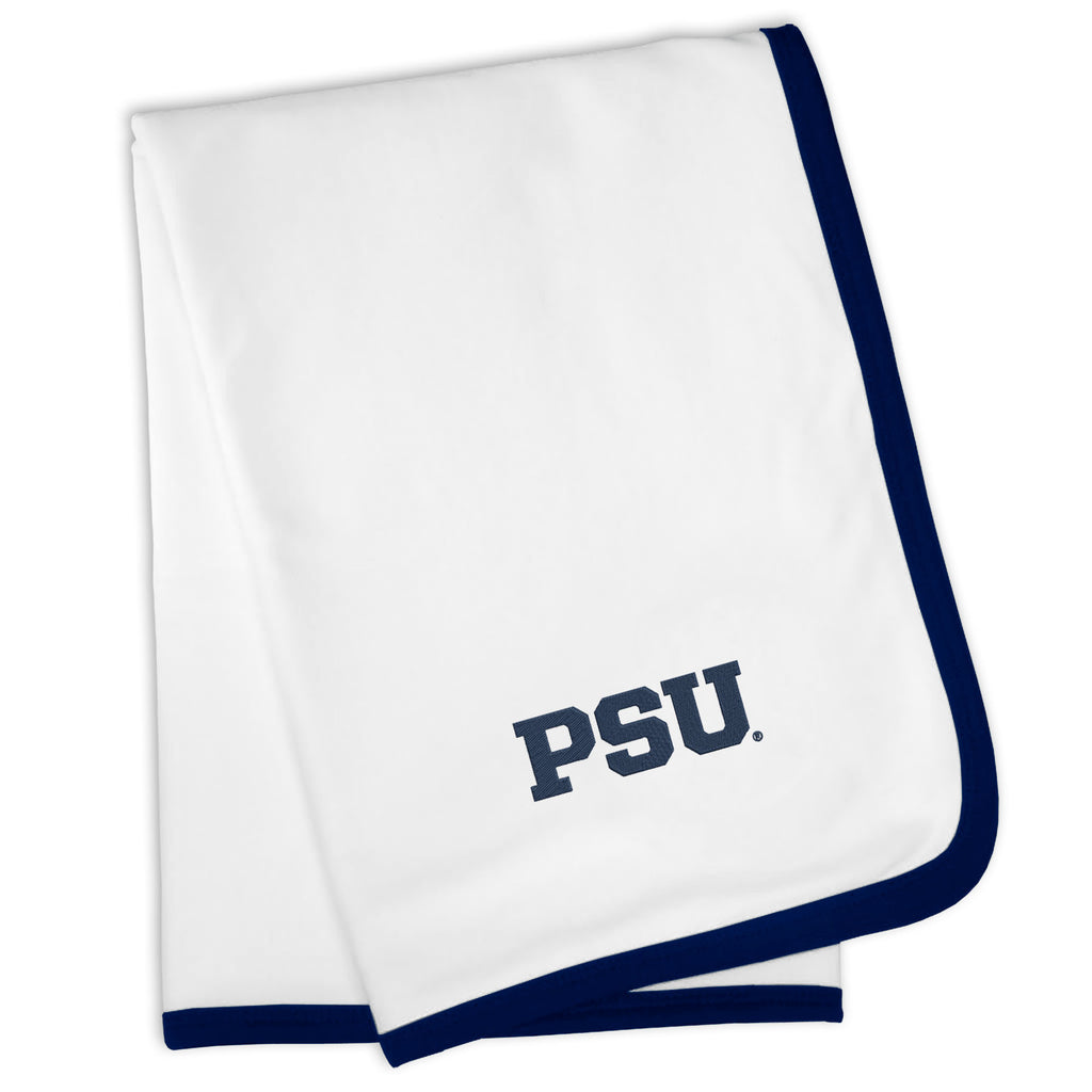 Our Penn State Nittany Lions Blanket is sized just right for a baby baseball fan. Constructed from super soft 100% cotton jersey knit and trimmed in Penn State Nittany Lions team colors, this blanket is perfect for walks in the stroller or swaddling at bedtime.  Each blanket is embroidered with the official Penn State Nittany Lions logo.