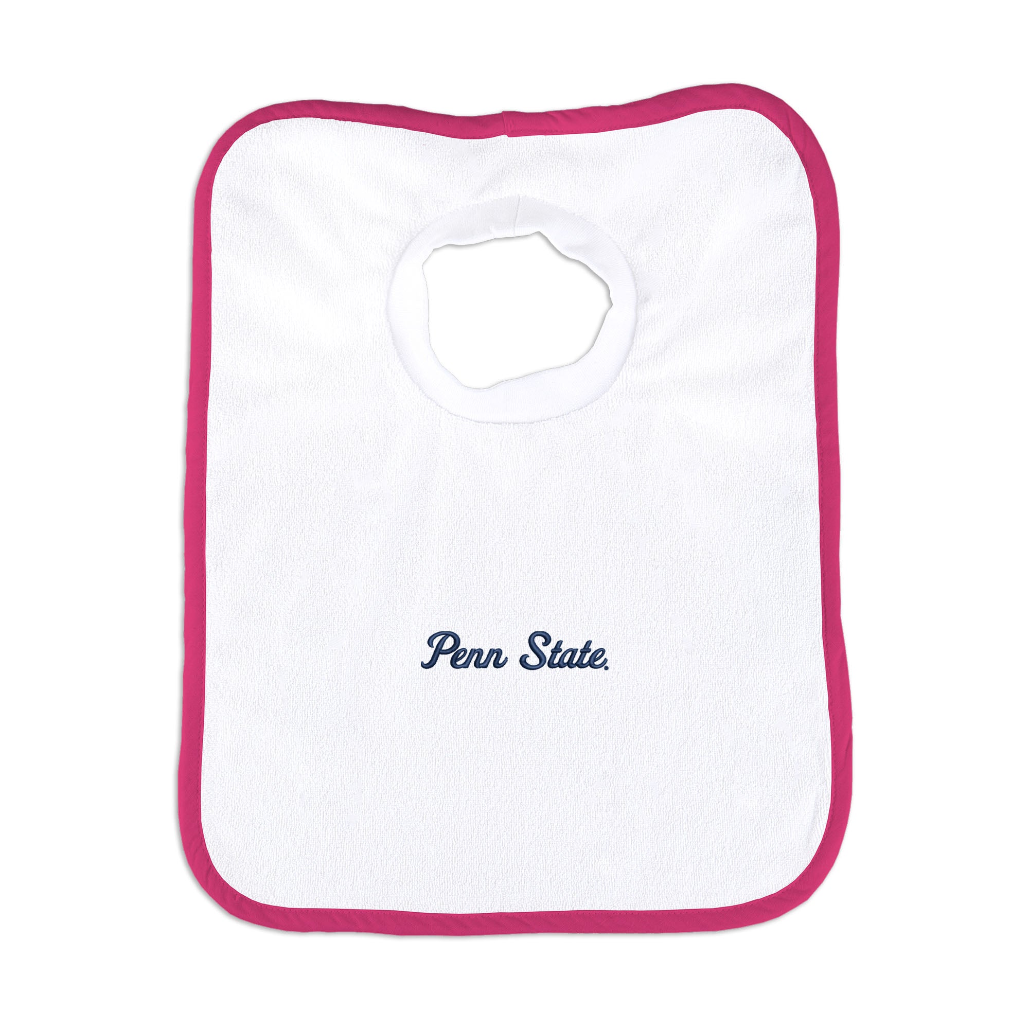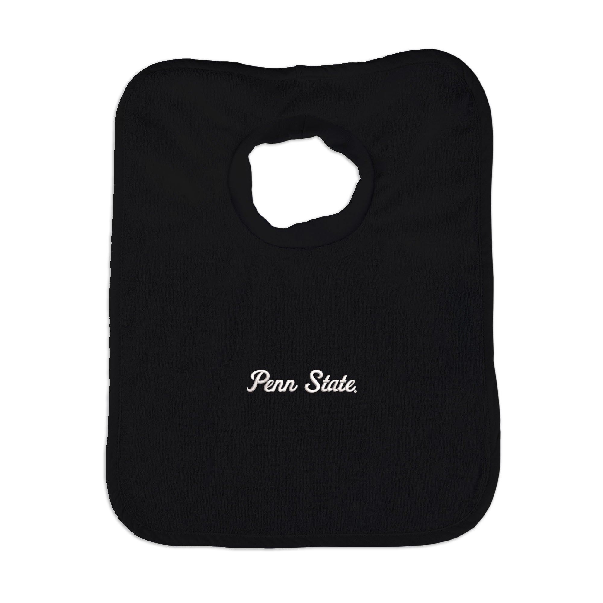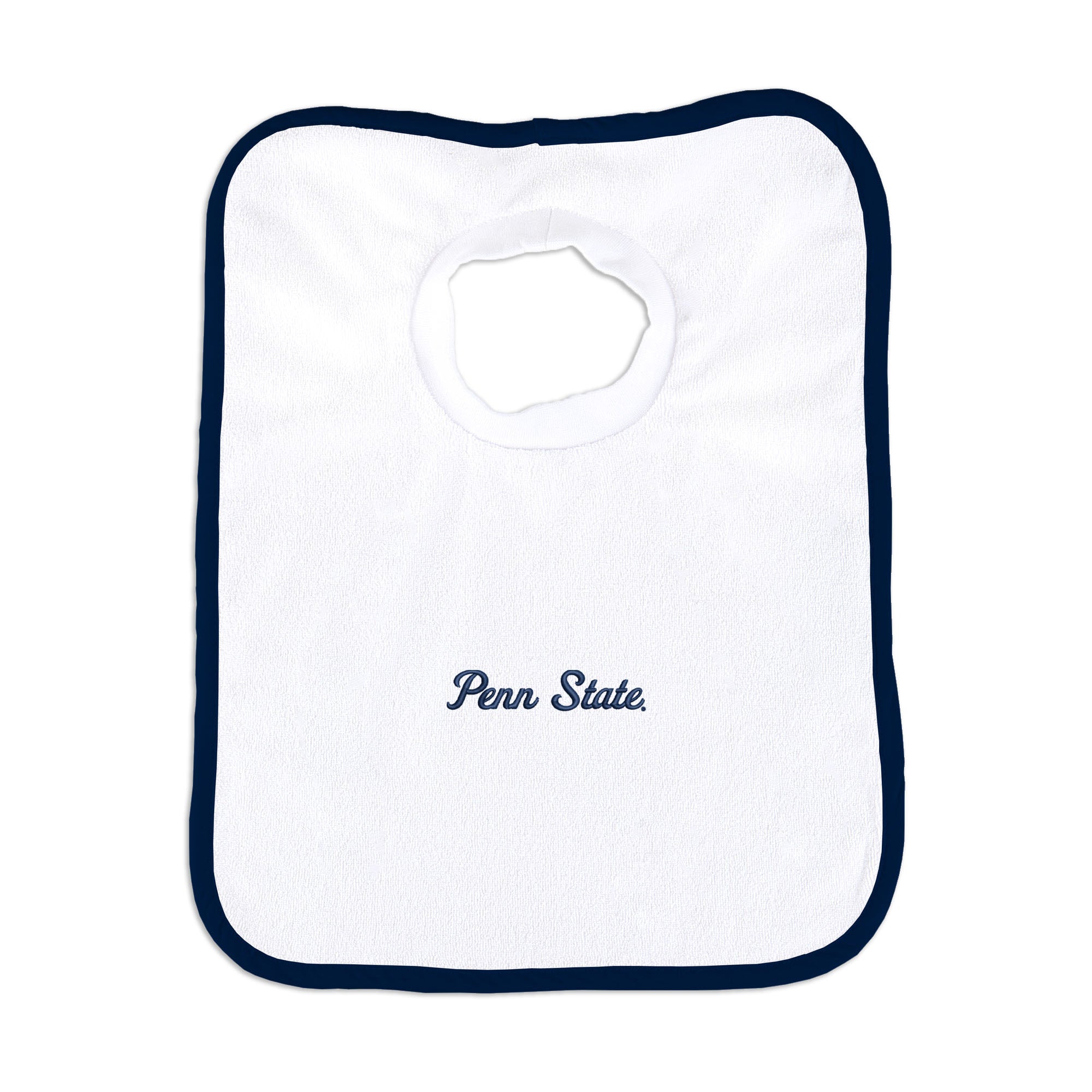 Dress your little Gator in style with our Penn State Nittany Lions Pullover Bib. This bib is a game day essential for your little fan! Crafted from stretch terry cloth, it offers a comfortable and snug fit with its stretchable neck hole. Featuring the iconic Nittany Lions logo, officially licensed by the university, this bib adds a touch of team spirit to every mealtime. Whether it's for catching dribbles or spills, this pullover bib combines functionality with team pride seamlessly. Order the Penn State Nittany Lions Pullover Bib today and let your little one showcase their team pride from mealtime to playtime!