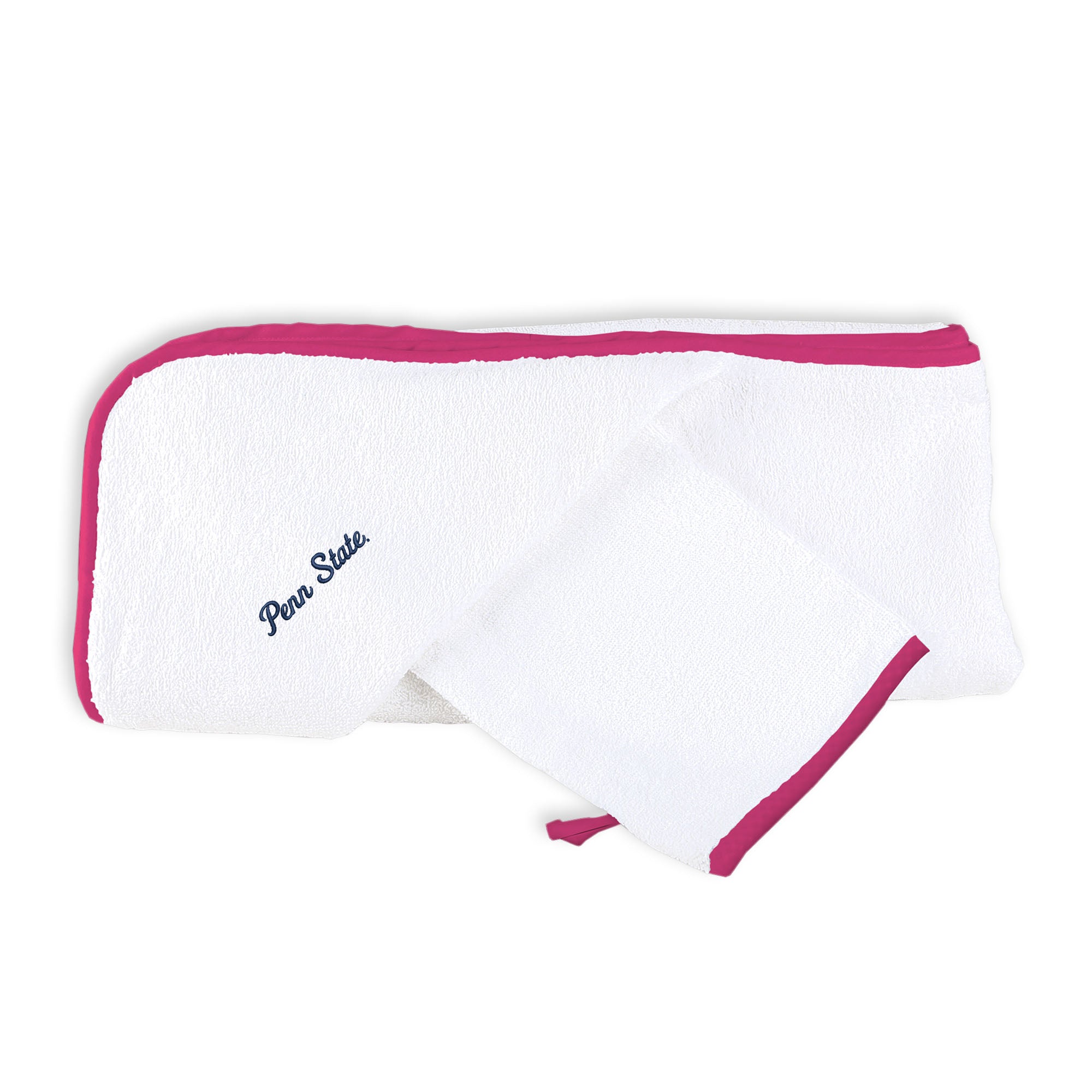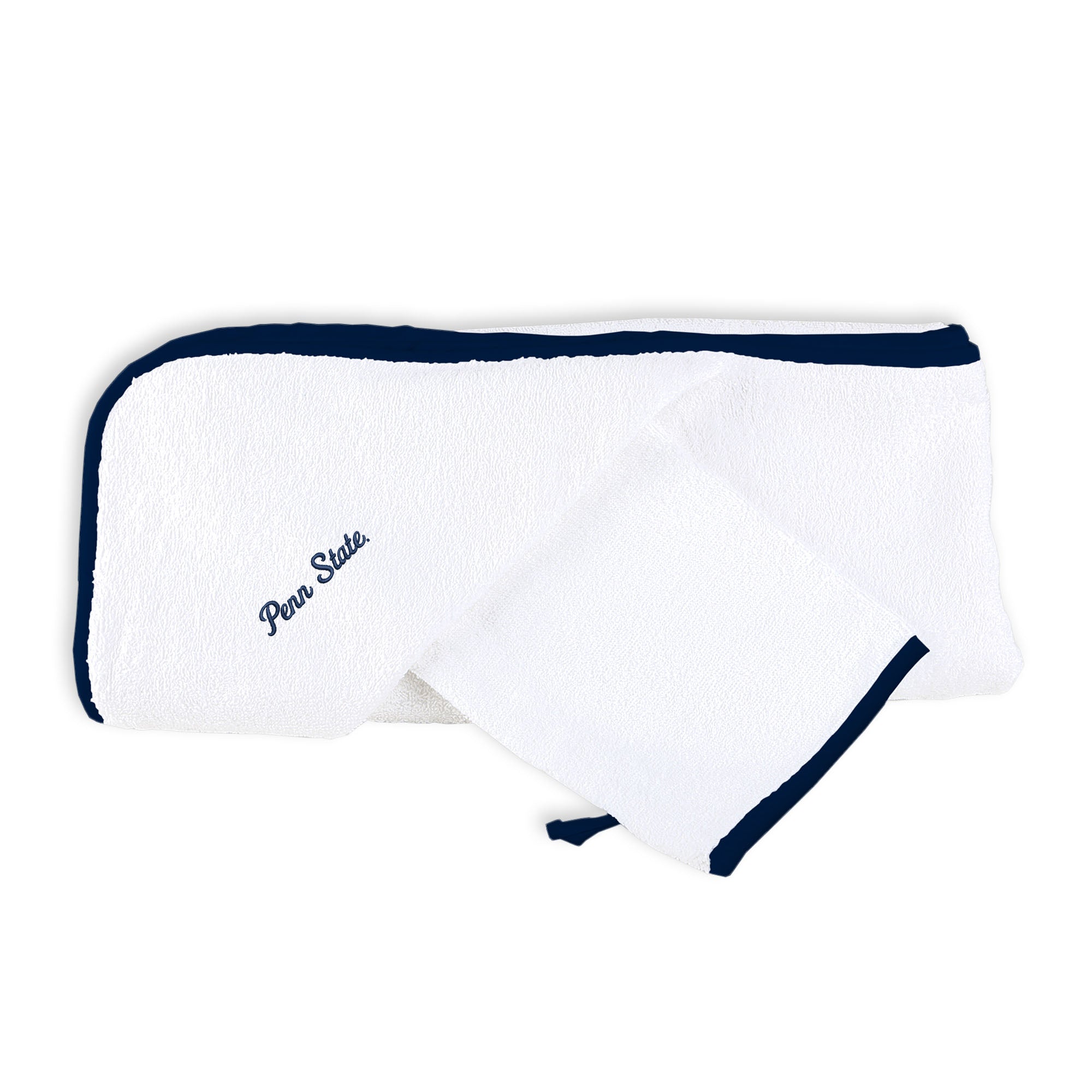 Pamper your youngest sports fan with our Officially Licensed Penn State Nittany Lions Hooded Towel and Wash Mitt Set. Crafted from soft 100% cotton terry, the wash mitt fits over your hand for gentle sudsing and cleansing; then, wrap the baby up in the absorbent Nittany Lions logoed hooded towel. The hooded corner of the towel keeps baby’s head warm while the generously sized towel wraps your future Gator in cozy comfort.