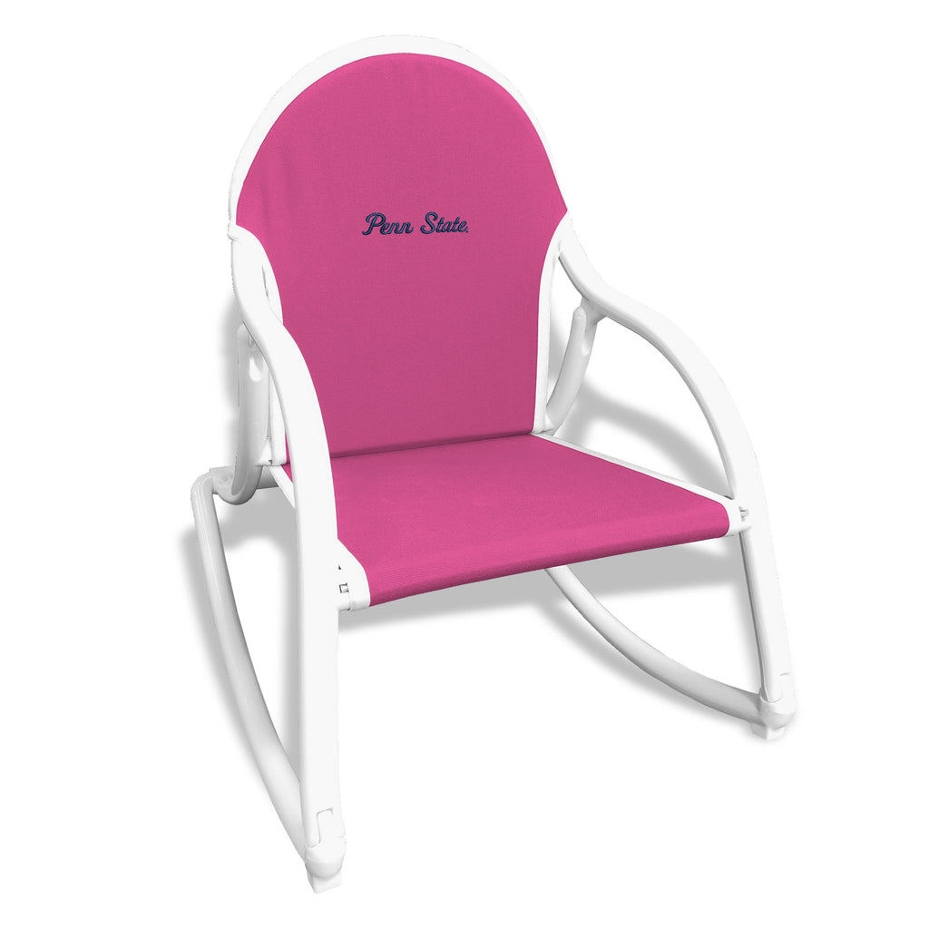 Our kid-sized Penn State Nittany Lions Rocking Chair will be the best seat in the house (and everywhere else!). This Nittany Lions chair is not only super comfortable, but also foldable and lightweight, making it easy to transport from room to room or put away for storage. The adult weight fabric and sturdy construction ensure that your little Nittany Lions fan will be both comfortable and safe. The rockers are 3 inches wider than the seat, so the Nittany Lions chair is extra stable, and foot pads under the fronts of the rockers hold the chair steady so toddlers can safely climb in to sit. This Penn State Nittany Lions rocker is also 100% water-safe, so it can be used outside in the yard, at the park, at a game or even at the beach!