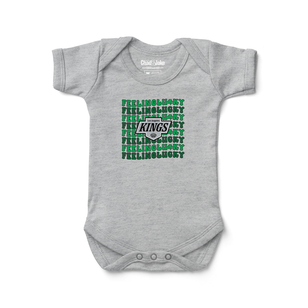 Get your little one ready to celebrate St. Patrick's Day in style with our Los Angeles Kings St. Patrick's Day Baby Bodysuit. Made from soft and cozy cotton, this bodysuit is perfect for showing off your baby's Kings pride while getting into the festive spirit. Featuring a charming St. Patrick's Day design adorned with the iconic Kings logo, it's the ideal outfit for your little fan to cheer on the team with a touch of Irish luck. Available in various sizes to ensure a comfortable fit for your baby. Don't miss out on the fun – get the Los Angeles Kings St. Patrick's Day Baby Bodysuit today!