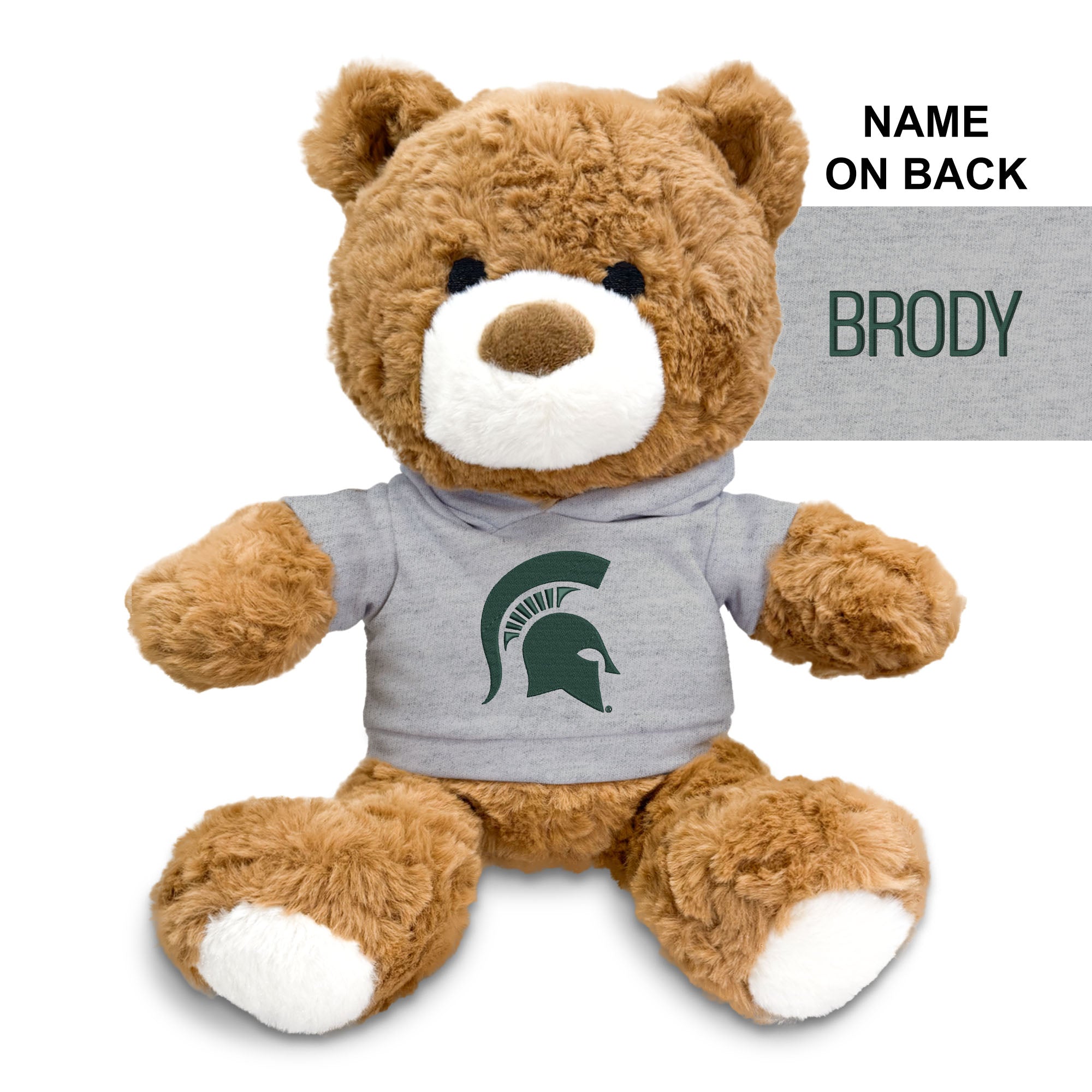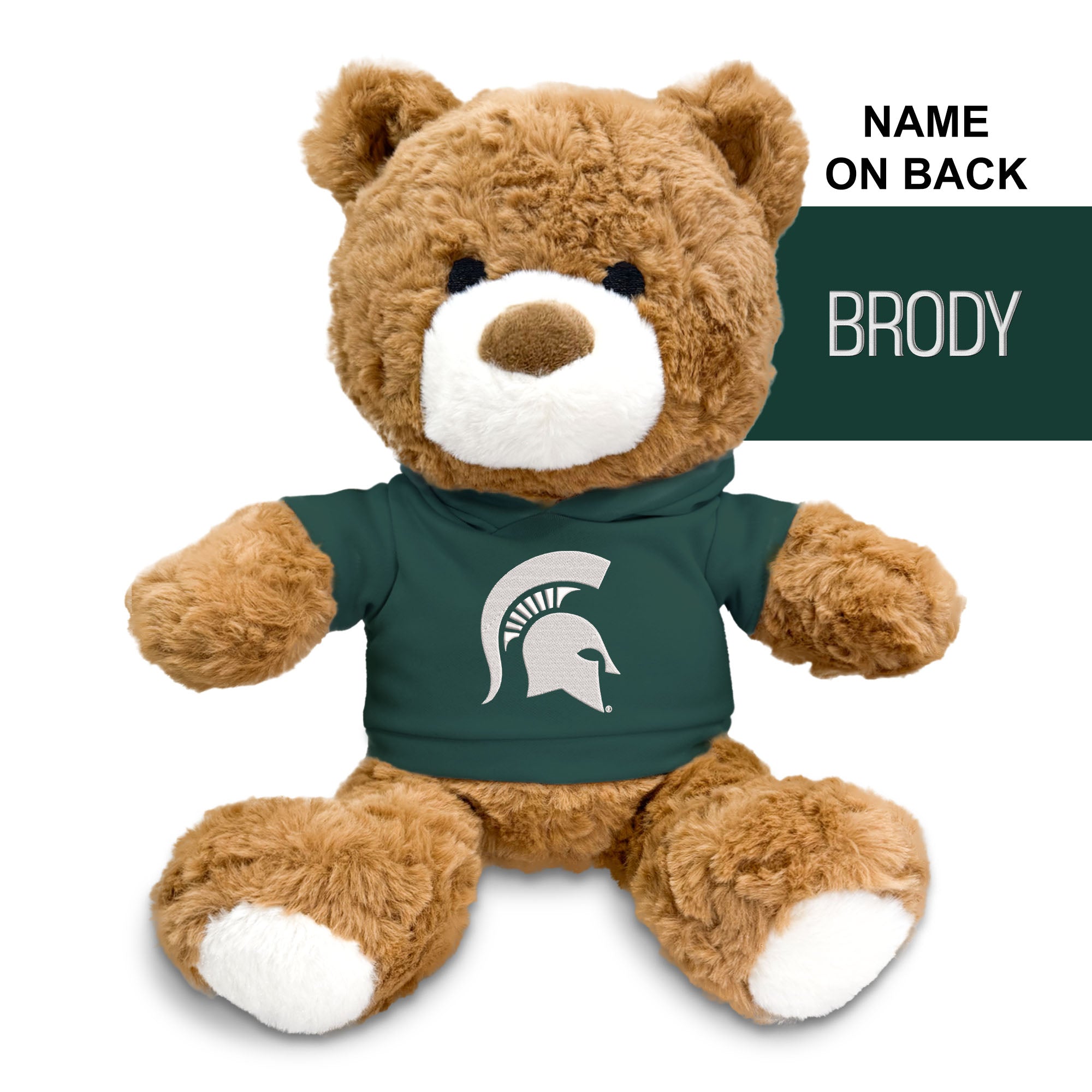 Say hello to the Michigan State Spartans Plush Bear—your new game-day companion! This 10-inch bear, crafted from ultra-soft polyester, is perfect for cozying up, especially with its snug hoodie. Featuring an embroidered logo on the front, this bear also offers a personal touch with the option to add a name, initials, or nickname on the back. Whether you're cheering from the stands or lounging at home, this plush bear is ready to bring some extra team spirit to your day.