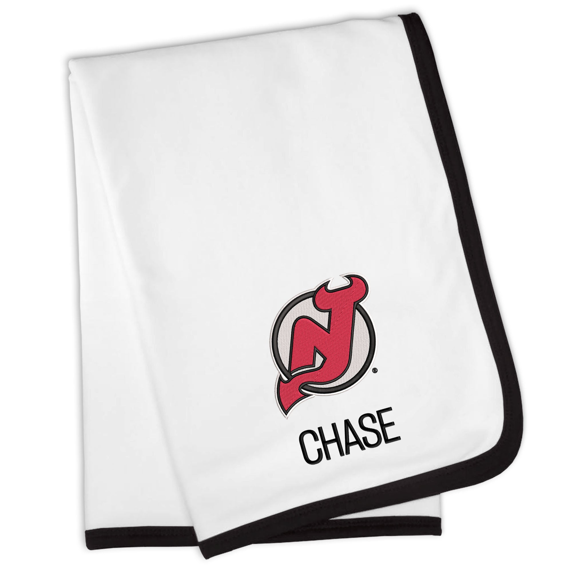 The littlest fan in your life will love snuggling up to watch some hockey with their very own personalized blanket. Each Devils blanket measures 30" x 36" and is customized with a name or phrase of your choice making it the perfect size for little ones to snuggle with. This blanket is also great to have on hand in the car or anywhere your little one wants to have something to wrap up in while they show their team spirit! The blanket is 100% cotton and is machine washable and dryer safe.